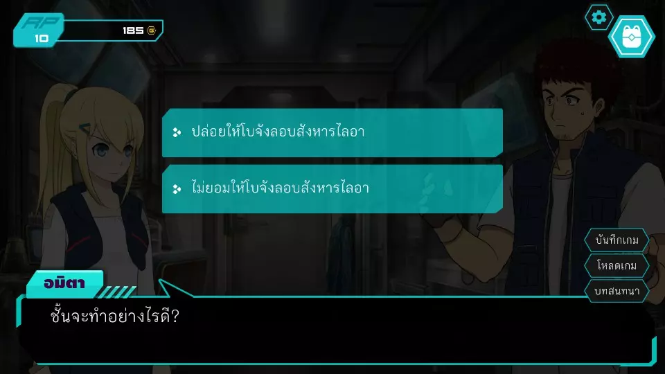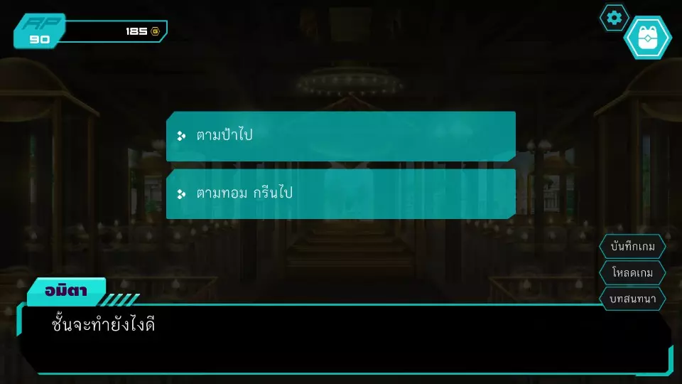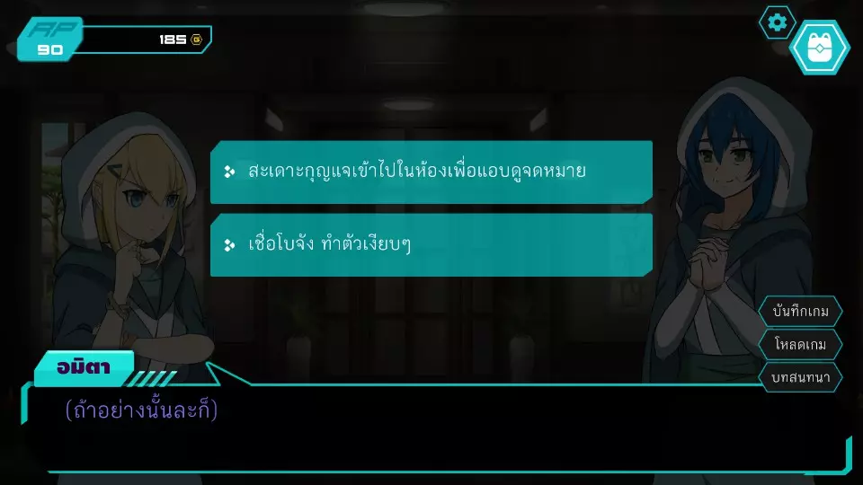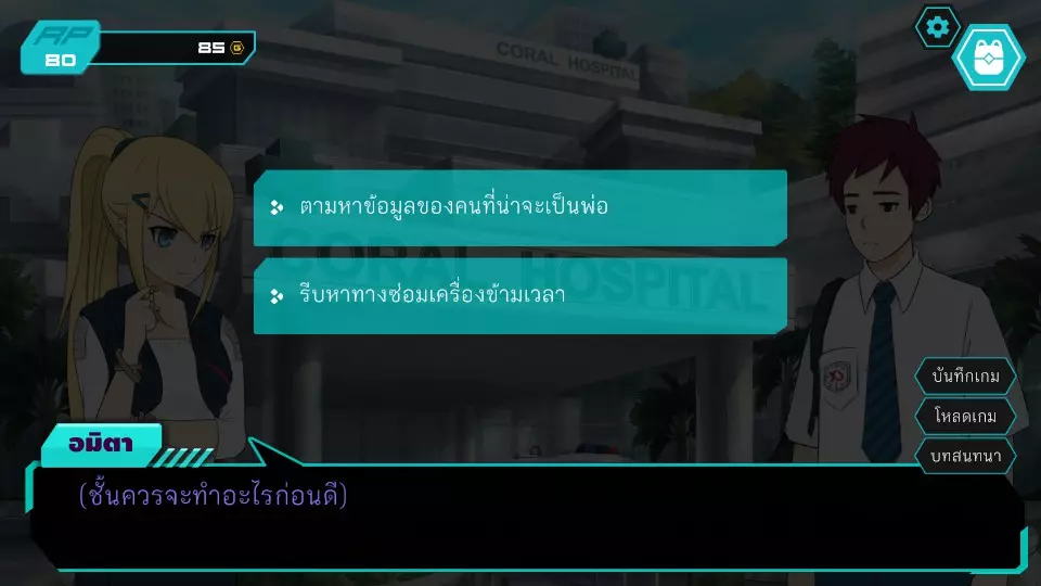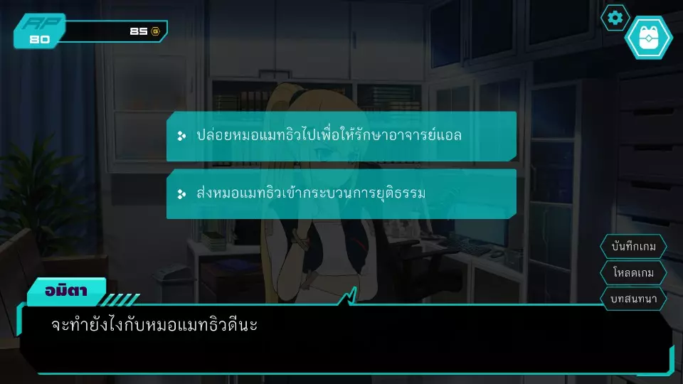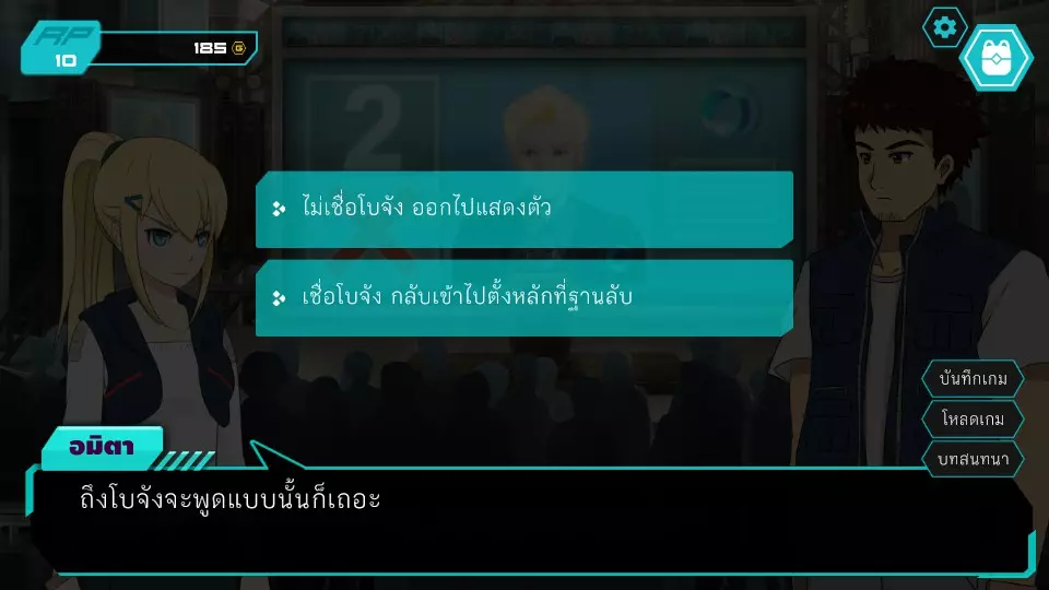 决定1:查看餐厅监控。角色点数:0。金钱:0-185。服务员小孩要求查看官员证件,两人都没有。博强于是决定悄悄溜出去当电工,然后独自从餐厅后面爬进去查看监控录像带。阿米塔则借口说博强会去拿证件来给他们看。服务员小孩要求查看身份证明文件,两人都没有。博江决定温柔地成为一名电工,然后独自爬上店铺后面查看闭路电视录像带。阿米塔为自己辩解称博江会去拿文件给她看,服务员小孩同情那位女士,允许两人通过各种方式上去查看闭路电视录像带,这将让阿米塔获得时间机器失踪的线索信息。正要出去时,就被店里的员工一起带到店后躲避警察,迎来了第二个抉择。