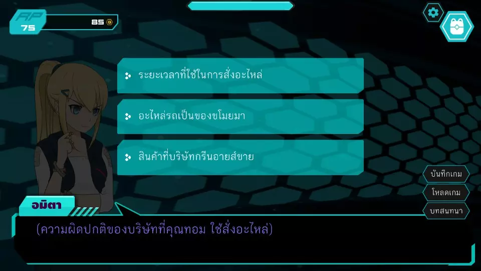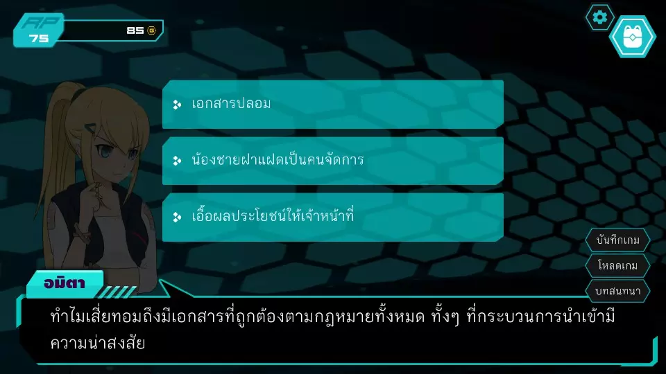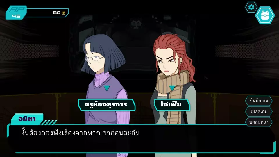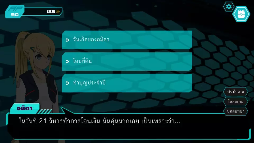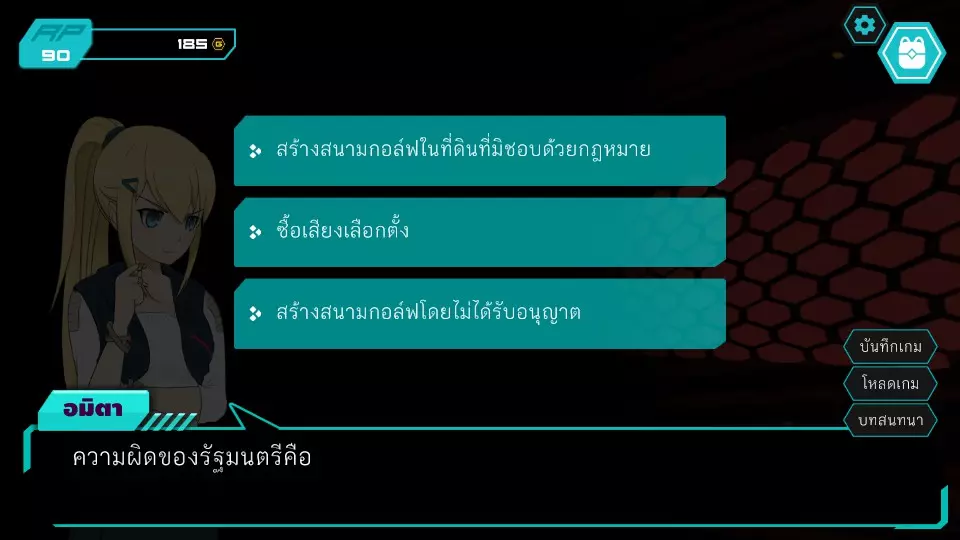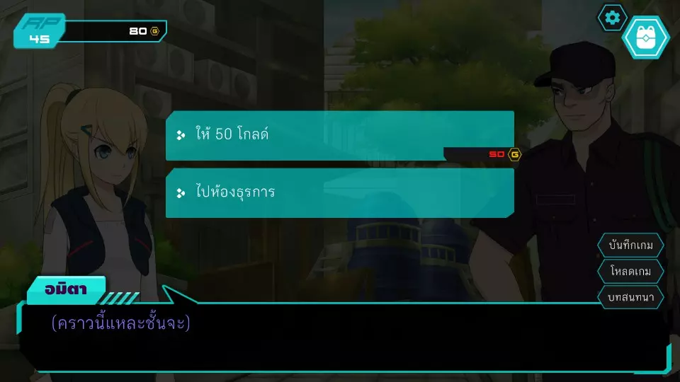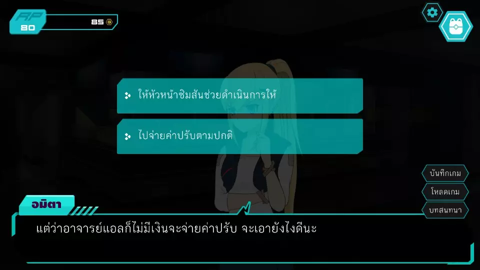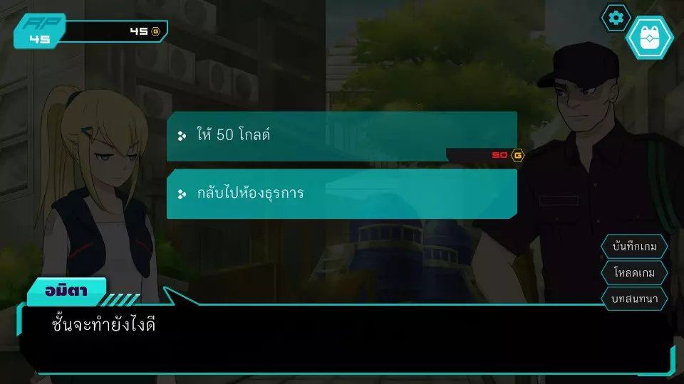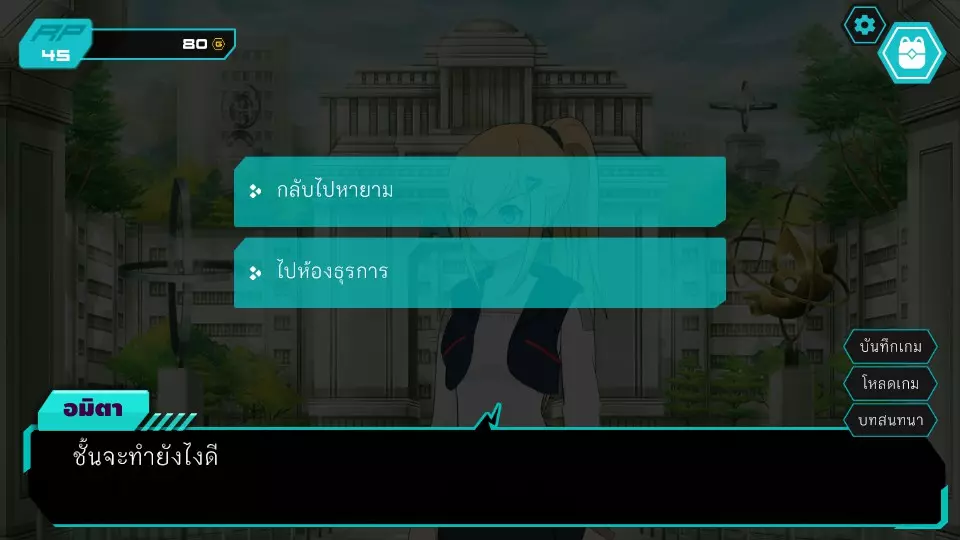 决定7.1:西部门口 RP:45 金币:45 无法选择,因为阿米塔的金币不足50 阿米塔回到办公室,进入决定6.2