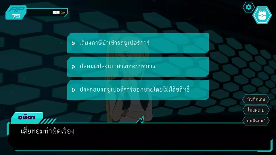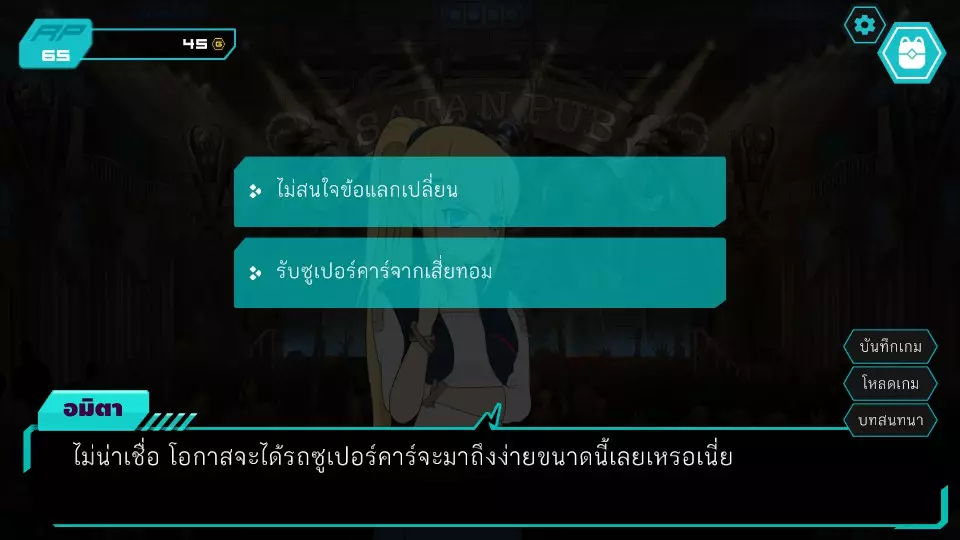 第五个决定2:为什么酒吧又开门了 RP:45-80 金币:0-85 ***会影响成就解锁*** 塞思汤姆欢迎阿米塔再次来到酒吧,阿米塔问为什么酒吧能开门,站在一旁的西蒙队长解释说因为检查后没发现异常,阿米塔继续追问直到塞思汤姆感到厌烦。无法识别内容,已删除。1) (此选项将进入案件调查,有机会获得成就Satan lives) 薇娜再次邀请进入,但波波发出巨大声响,导致两人被赶出。必须回家。第二天,有撒旦纵火杀人的新闻,伤亡惨重。阿米塔因未能介入而感到自责,这时泰姆来提议向她出售超级跑车。艾尔到达实验室,阿米塔看到了不喜欢的证据,于是发动正义爆发!(正义爆发4.2) 第三章(撒旦案件) 正义爆发4.1:阿米塔对决希亚特姆(撒旦案件)