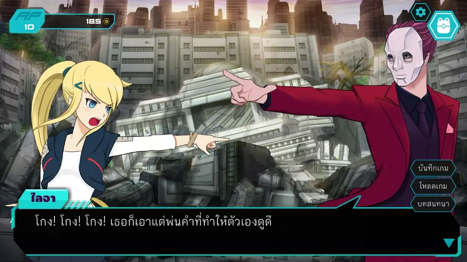 因为她的身体也随之消散了。在阿尔法学院,一个身形酷似明良的学生正将作业交给仙老师,获得了成就“The Cause of Trouble”。这一幕不会展示玩家在之前章节中的选择所带来的影响,它出现在游戏制作人员名单之间,并且有片尾字幕。最后补充一下,也就是亚希拉在城里走着,然后在街道上发现了某个人的面具。