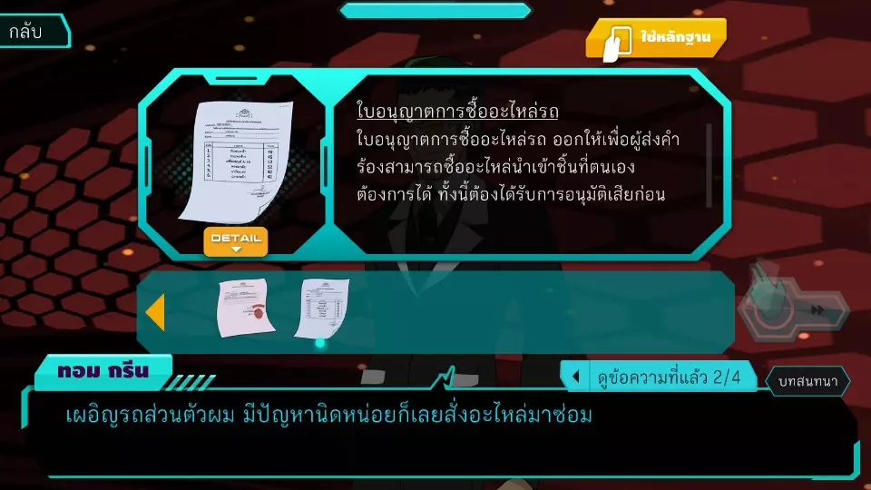 第六次捕获腐败者2:选择使用第2句“我的私家车刚好有点问题,所以就订购了零件来修理”中的汽车零件订购凭证(查看此证据详情时,发现每项零件的订购数量过多,不像是私家车会用到的)(我觉得这很可疑,因为这句话是西奥讲述过去的事,但是现在)目前他让辛迪担任指挥官,这份授权是最新的指令记录。这份授权不可能是在谢伊托姆还自己订购零件期间的授权,否则就意味着谢伊托姆从那时起就再也没有自己订购过零件,也没有让任何人帮忙订购过零件。这与第3和第4条所述内容相矛盾,其中提到后来史蒂夫指派辛迪负责指挥,这意味着辛迪至少已经下过一次订单;或者如果考虑到订购零件的数量很大,也无法明确指出其明显异常,因为如果史蒂夫是超级跑车爱好者的话。根据第1条,他有可能拥有不止一辆超级跑车,以支持上述数量的汽车零件,而阿米塔没有具体标准或数据来确定这种级别的零件订购是否异常。因此,如果要使用汽车零件订购许可证,应使用第3条或第4条。(内容无法识别,已删除)