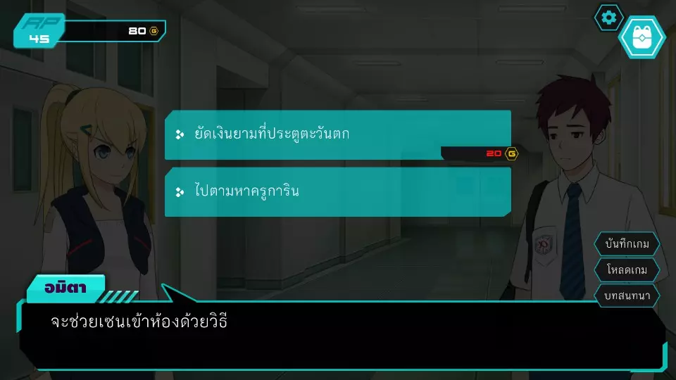 决定8.2:关于获得的钱包 角色点数:45 金币:80 损失金币 -35 行政室老师表示感谢后离开 行政室老师离开 两个选项均通向决定8.1