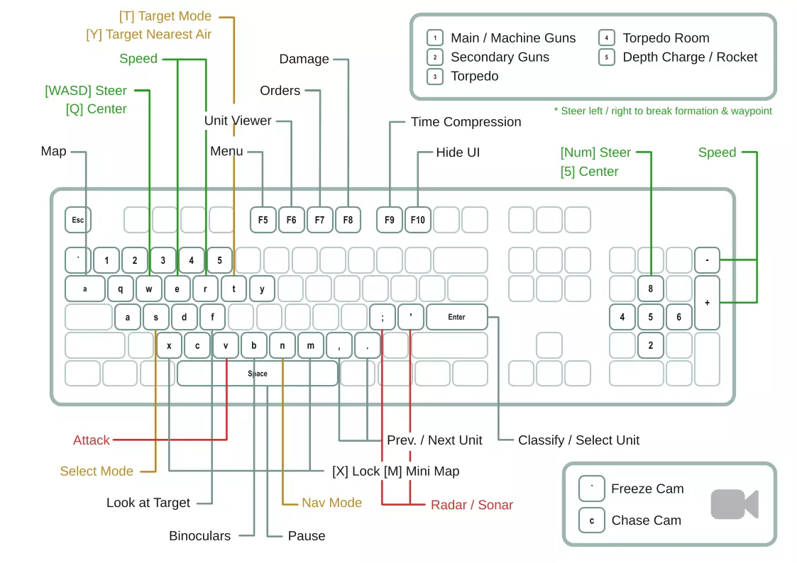 战斗模式热键键盘图。不包含战略地图或任务编辑器的热键。 键盘图 战斗模式热键键盘图。不包含战略地图或任务编辑器的热键。尺寸适合A4横向。