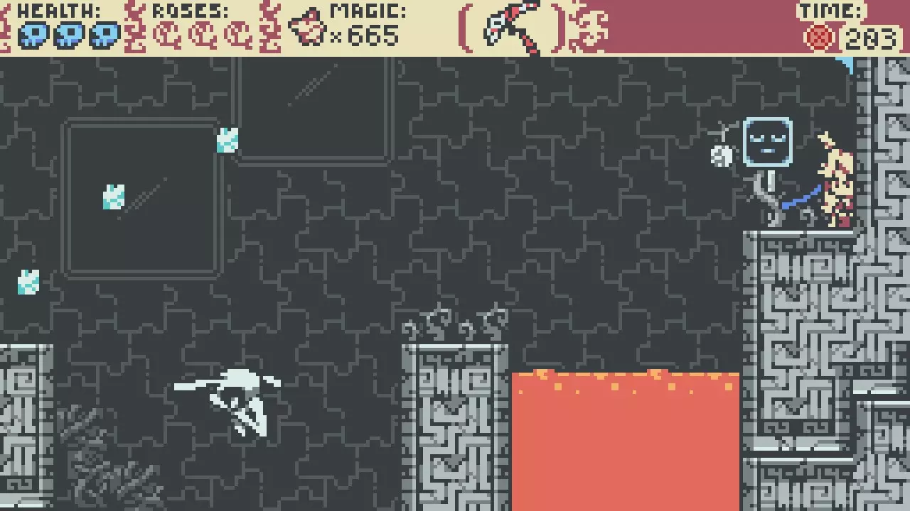 一个让我困惑的地方 这个位置过于明显,有点像故意引导人使用魔力去到达的,但是下方又什么都没有。 当我用邦妮垂直使用冲刺的时候可以到达一些我看不见的地方。也许只是个BUG或者有更多的秘密我没有发现。