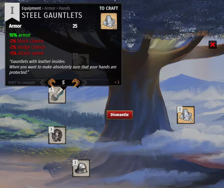 如果你找到高于1级的装备,确保在背包中左键点击该物品来分配其属性,并为所有开放的等级选择(更高的)选项。 例如:如果你有一件4级物品,选择它并为2-4级选择升级/额外属性。 拆解与制作
