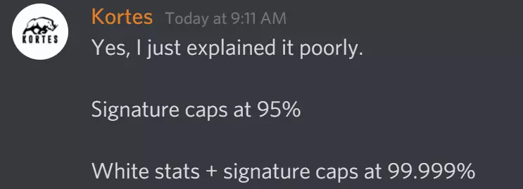 根据开发者的说法,绿色数值(包括攻击速度、护甲、护甲穿透、格挡、闪避、暴击率)的上限为95%,而将绿色数值与你的固定减伤/伤害数值相结合后,上限接近100%。