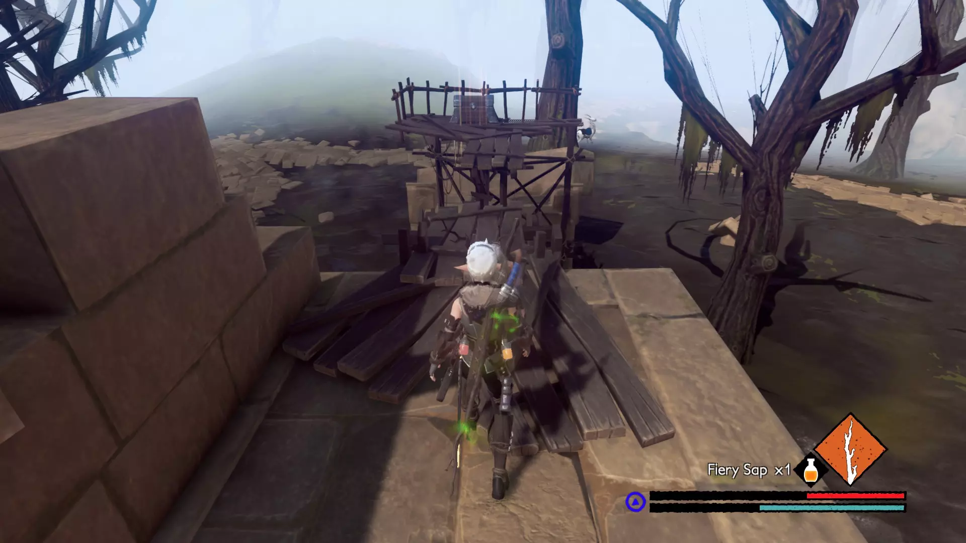 宝箱4:位于这片沼泽中的第三座大型建筑内。确保成功跳过深坑,就能获得一把弓。