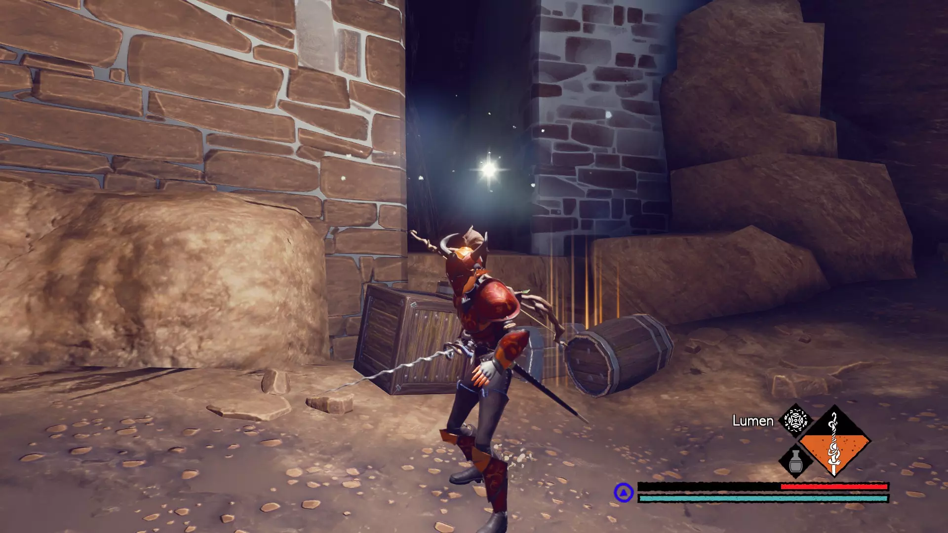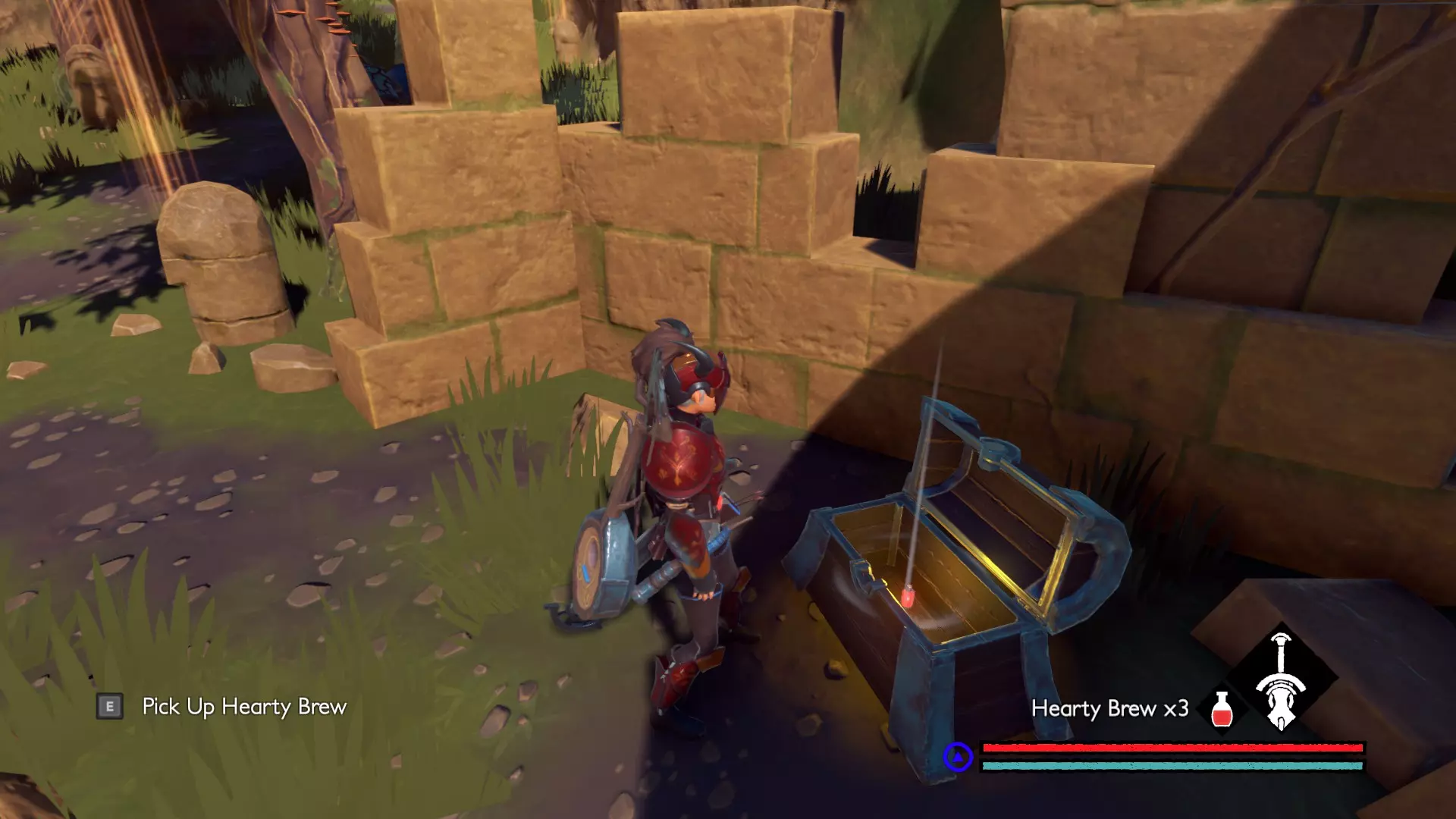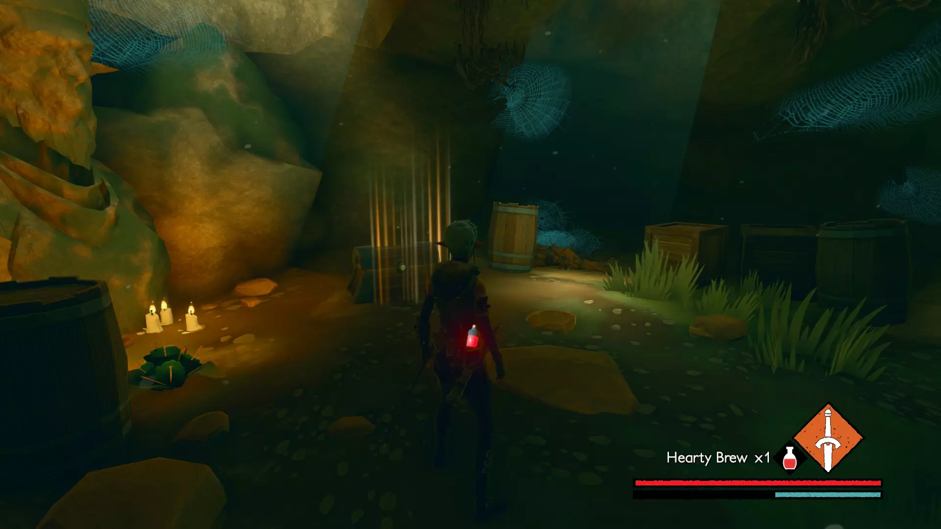 宝箱#3:位于关卡接近末尾处。在休息圣坛休息后,会遇到一个需要你的麋鹿打开的大门。穿过大门前,你的左侧有一间伐木小屋。进入小屋后向左走,打破木板会露出一条隧道,沿隧道前进即可找到该宝箱。