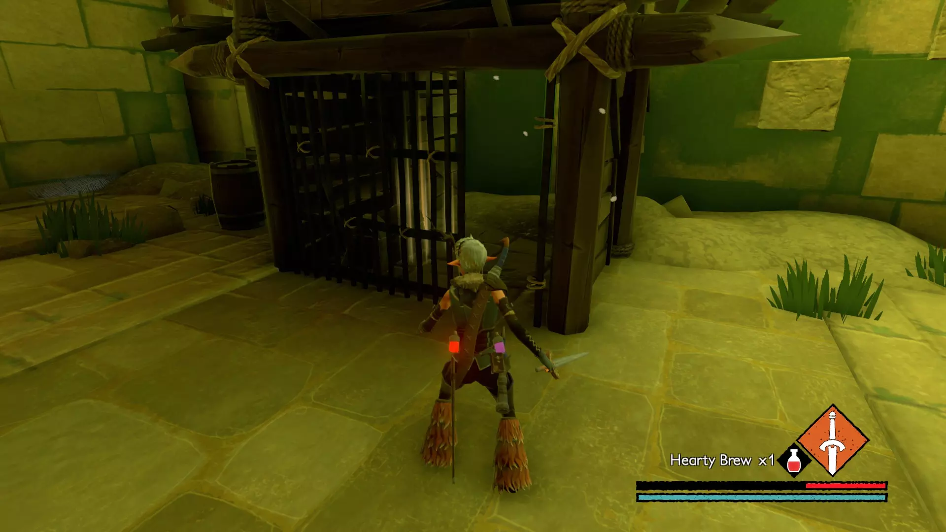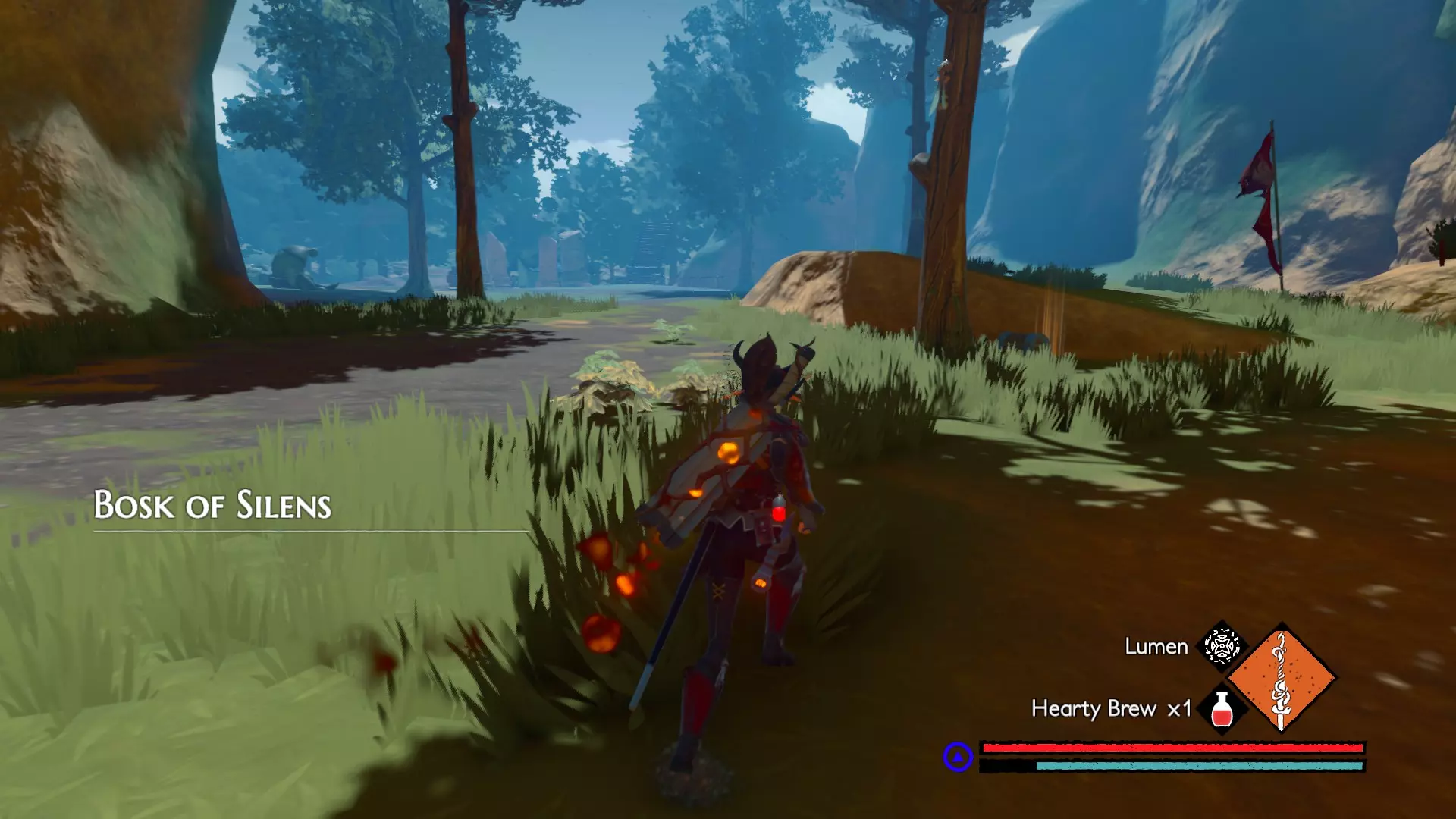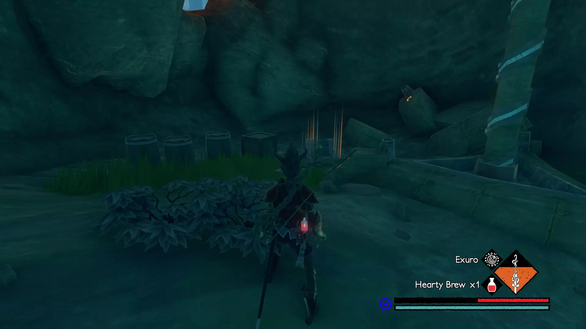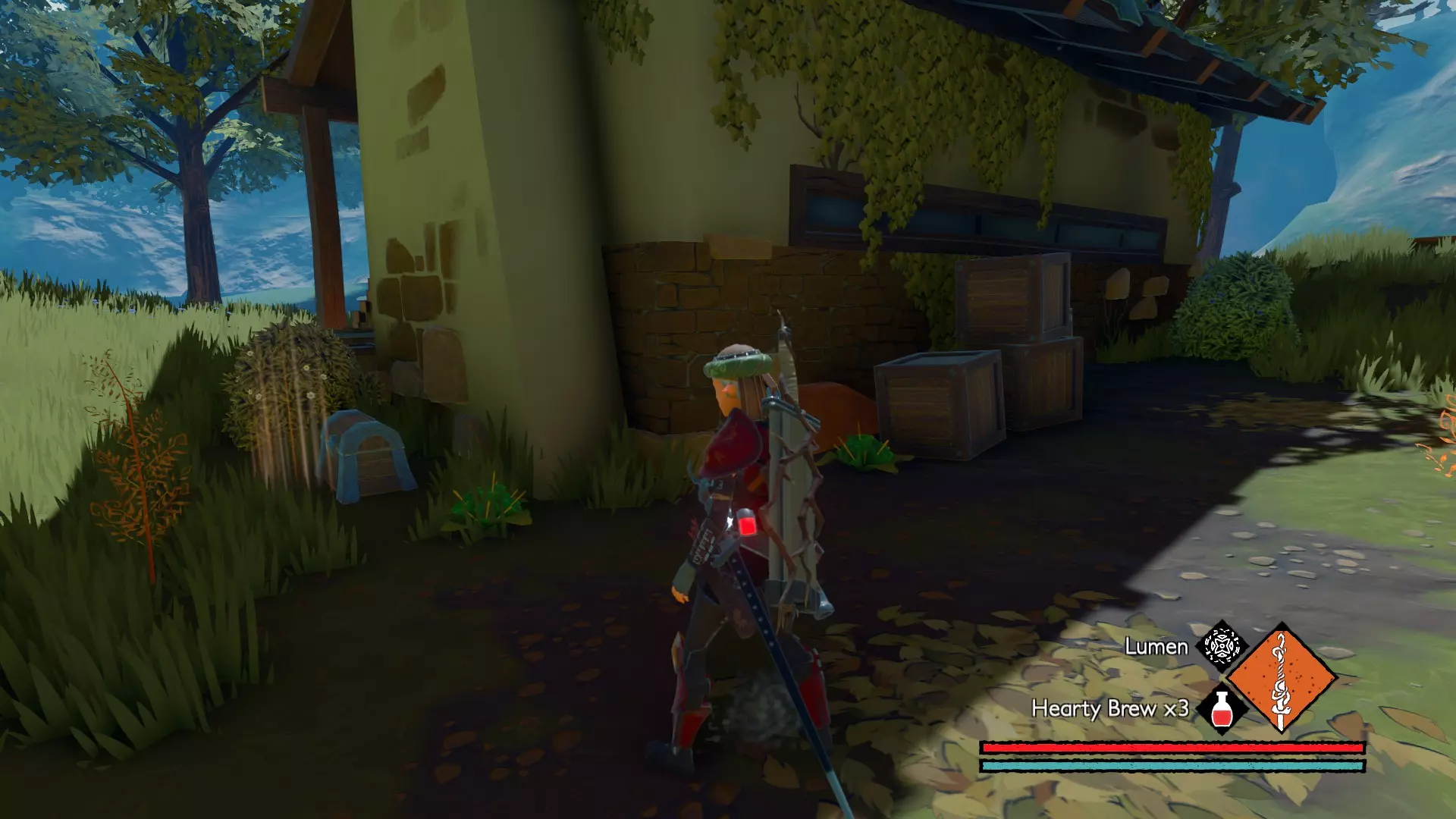 宝箱#3:位于关卡接近末尾处。在休息圣坛休息后,会遇到一个需要你的麋鹿打开的大门。穿过大门前,你的左侧有一间伐木小屋。进入小屋后向左走,打破木板会露出一条隧道,沿隧道前进即可找到该宝箱。