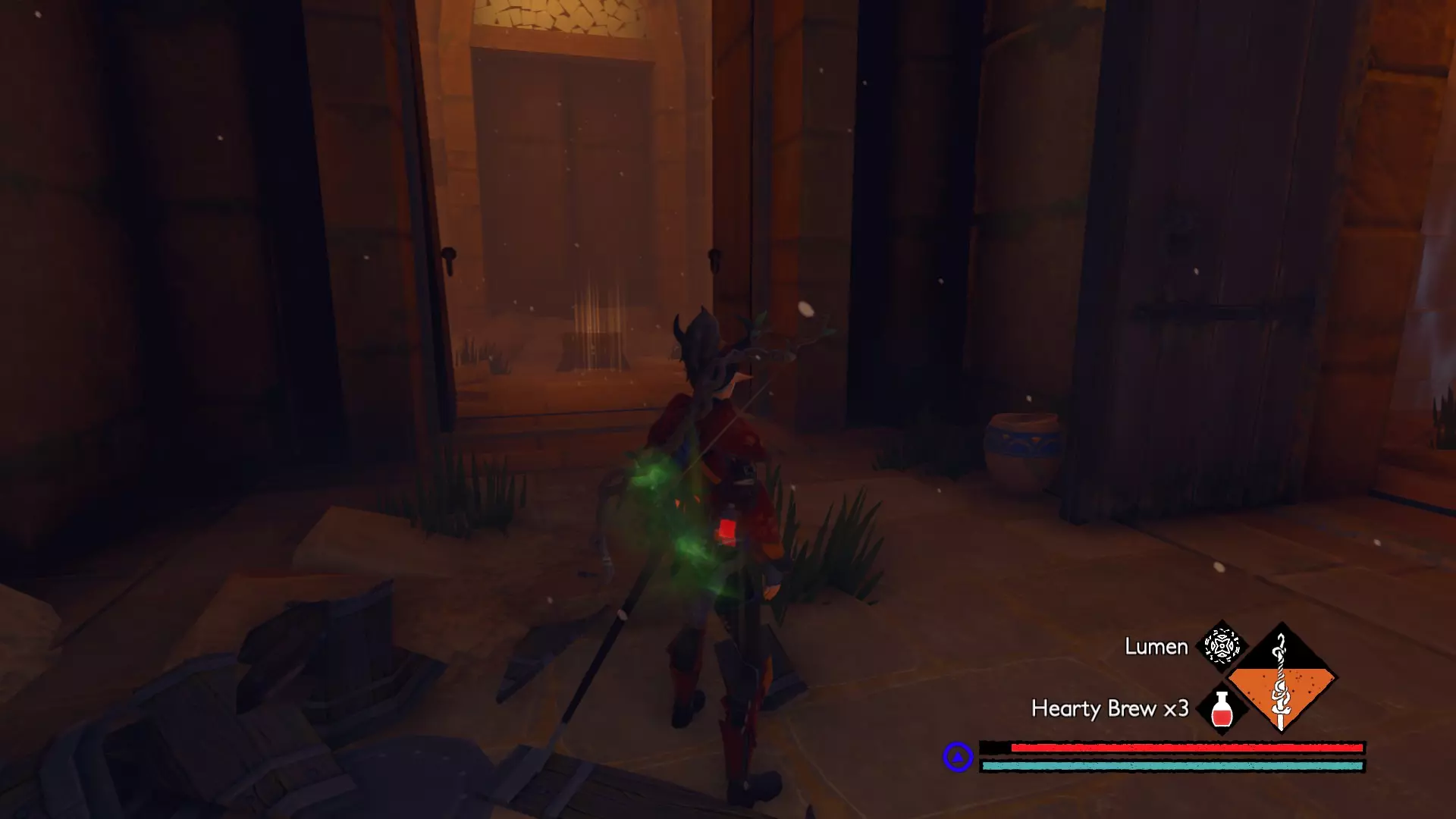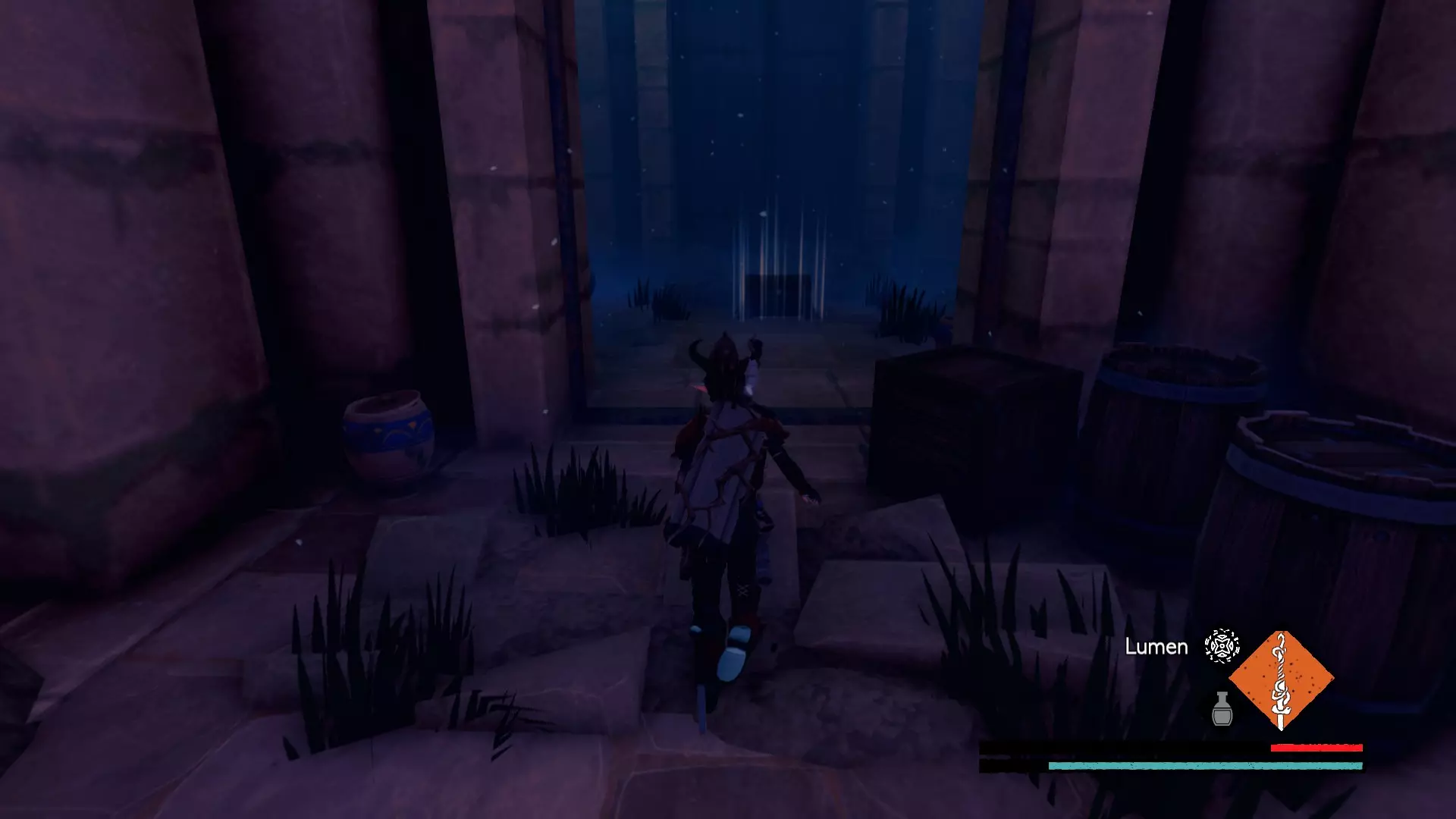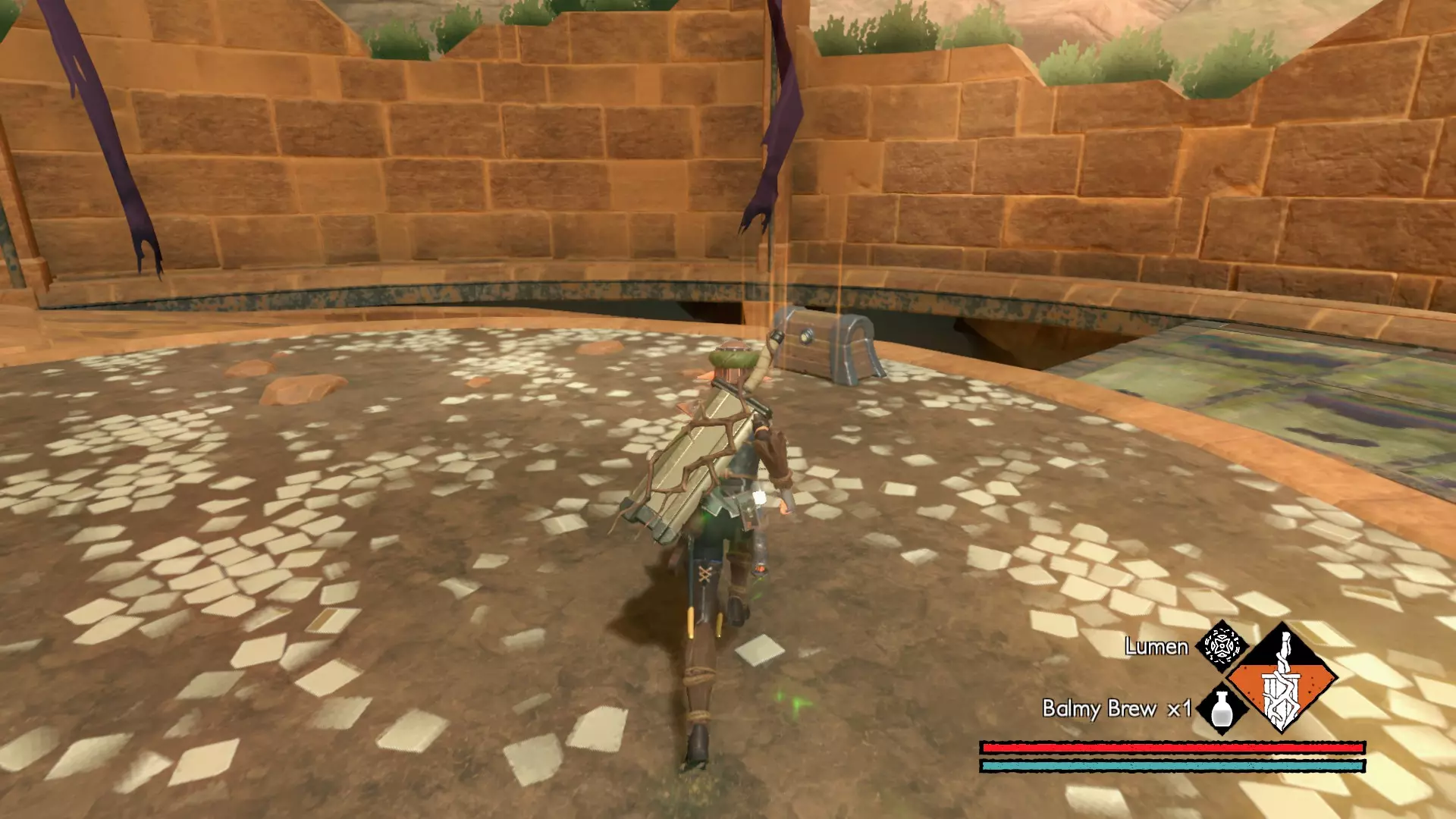 该区域共有6层。其中一层是屋顶,上面有先祖 brute,其余5层向下延伸至呼啸裂隙的干谷。仔细检查每个房间,以找到全部8个宝箱。为了让与干谷之子的战斗更轻松,可以使用【流明】使它们失明,然后使用顶楼获得的细剑,通过左右键组合攻击来快速击败它们。【流明】会消耗一定生命值,且有一定施法时间,但它能让你的 hitbox 暂时失效,因此非常适合躲避这些快速移动敌人的攻击。尽量不要同时与2个以上的敌人战斗。如果可能,最好一次只对付一个,因为它们是游戏中最难对付的敌人之一。由于我不会再进入游戏探索这个区域,如果你能记录下这些宝箱所在的楼层,我会用你提供的信息来完善本攻略的这部分内容。 沃拉戈宫殿 宝箱1:位于 hedge maze( hedge maze)的尽头附近。
