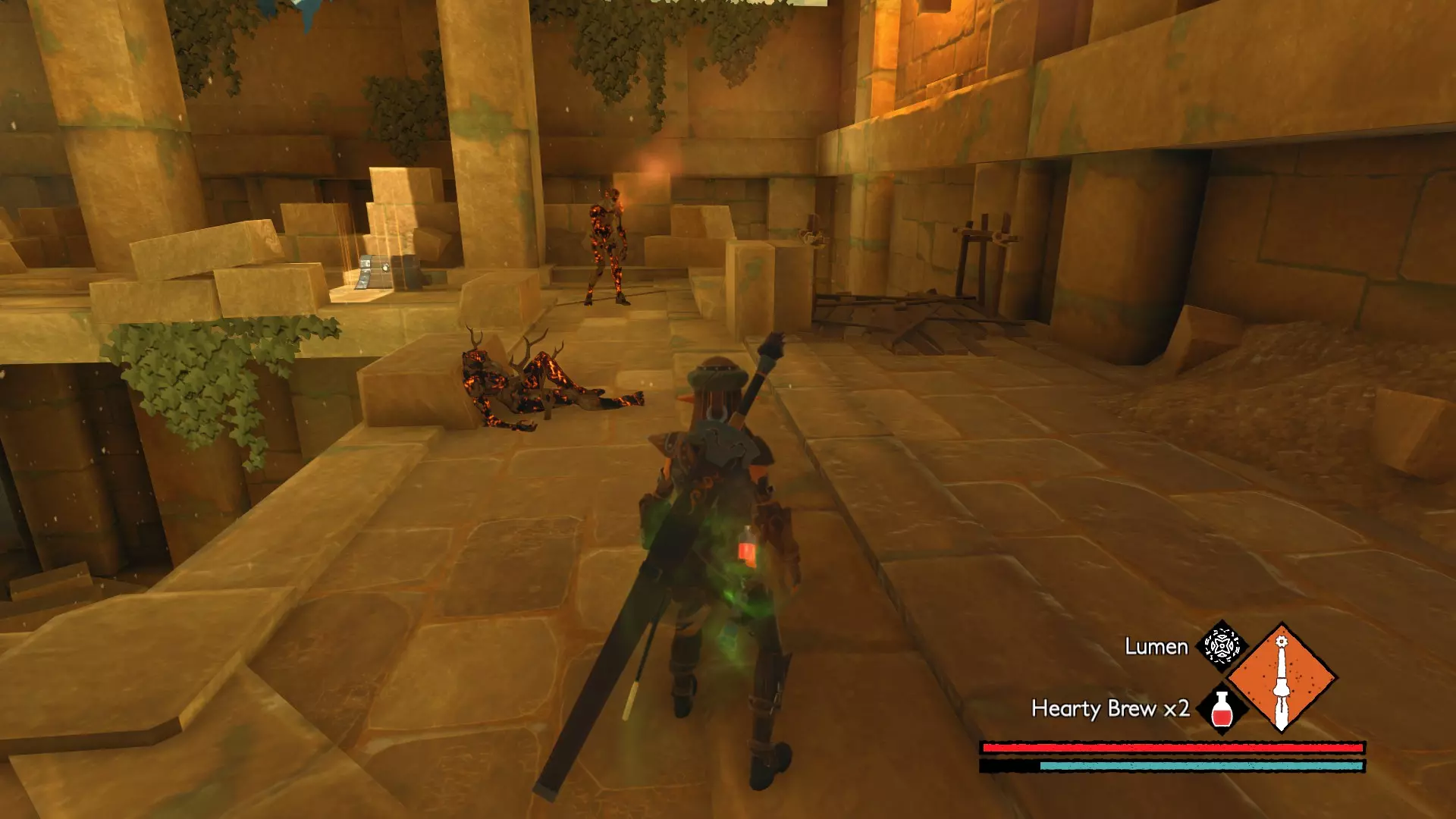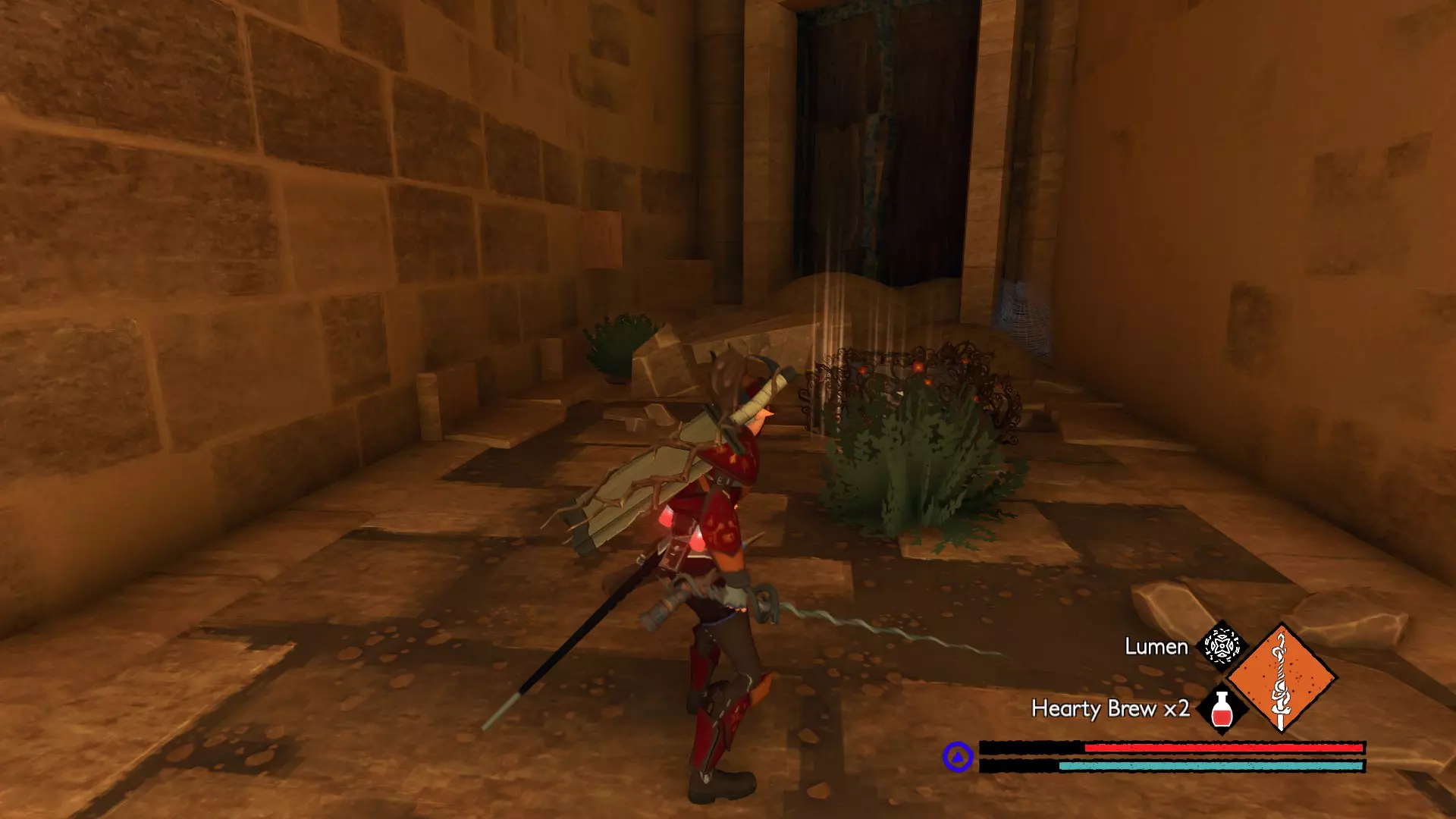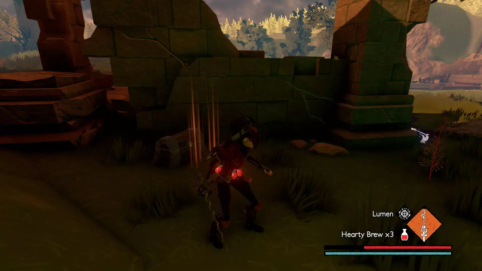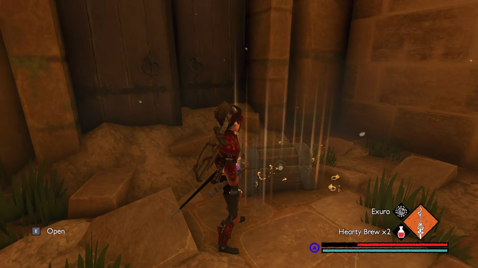 该区域共有6层。其中一层是屋顶,上面有先祖 brute,其余5层向下延伸至呼啸裂隙的干谷。仔细检查每个房间,以找到全部8个宝箱。为了让与干谷之子的战斗更轻松,可以使用【流明】使它们失明,然后使用顶楼获得的细剑,通过左右键组合攻击来快速击败它们。【流明】会消耗一定生命值,且有一定施法时间,但它能让你的 hitbox 暂时失效,因此非常适合躲避这些快速移动敌人的攻击。尽量不要同时与2个以上的敌人战斗。如果可能,最好一次只对付一个,因为它们是游戏中最难对付的敌人之一。由于我不会再进入游戏探索这个区域,如果你能记录下这些宝箱所在的楼层,我会用你提供的信息来完善本攻略的这部分内容。 沃拉戈宫殿 宝箱1:位于 hedge maze( hedge maze)的尽头附近。