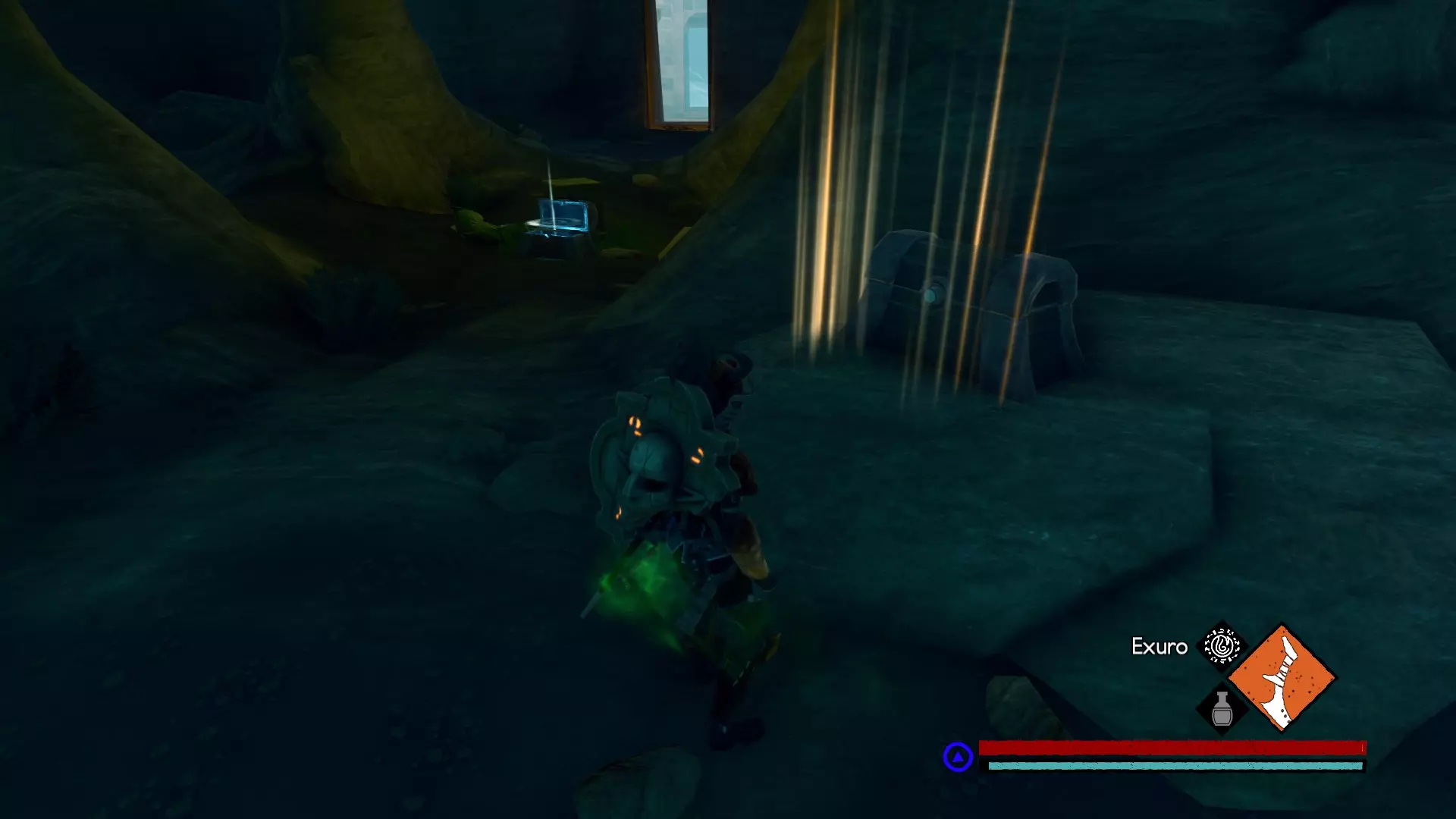 宝箱2:在关卡开始不远处,应该有一个很容易找到的洞穴,里面有一尊悲怆(Pathos)雕像。