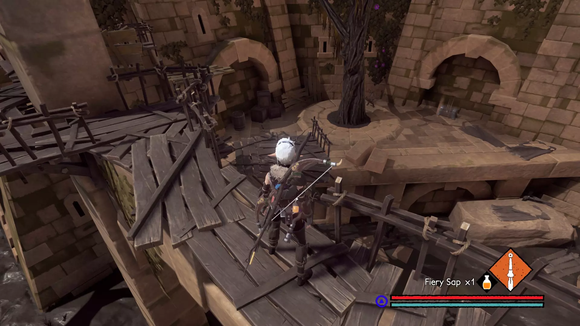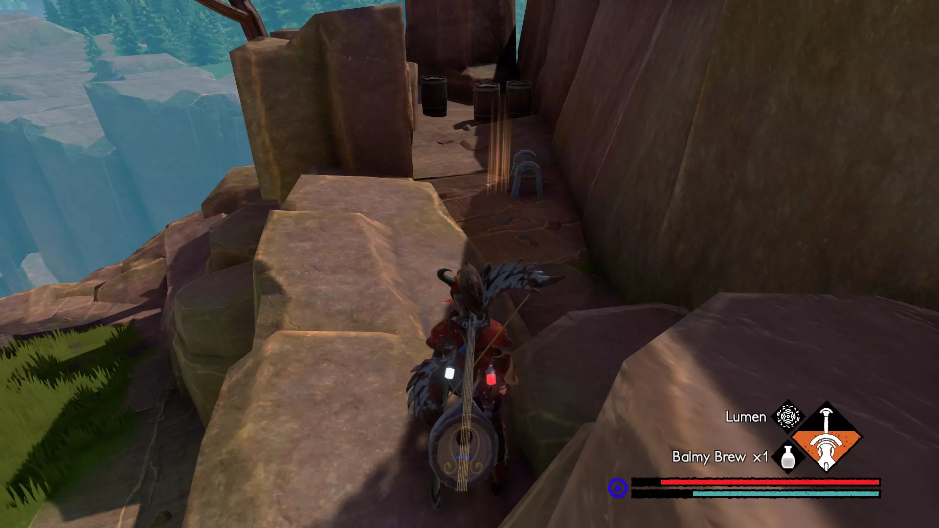宝箱#6:当你靠近风车时,查看悬崖下方。跳到有三个木桶的岩石平台上,宝箱就在那里(以图中的树作为地标)。