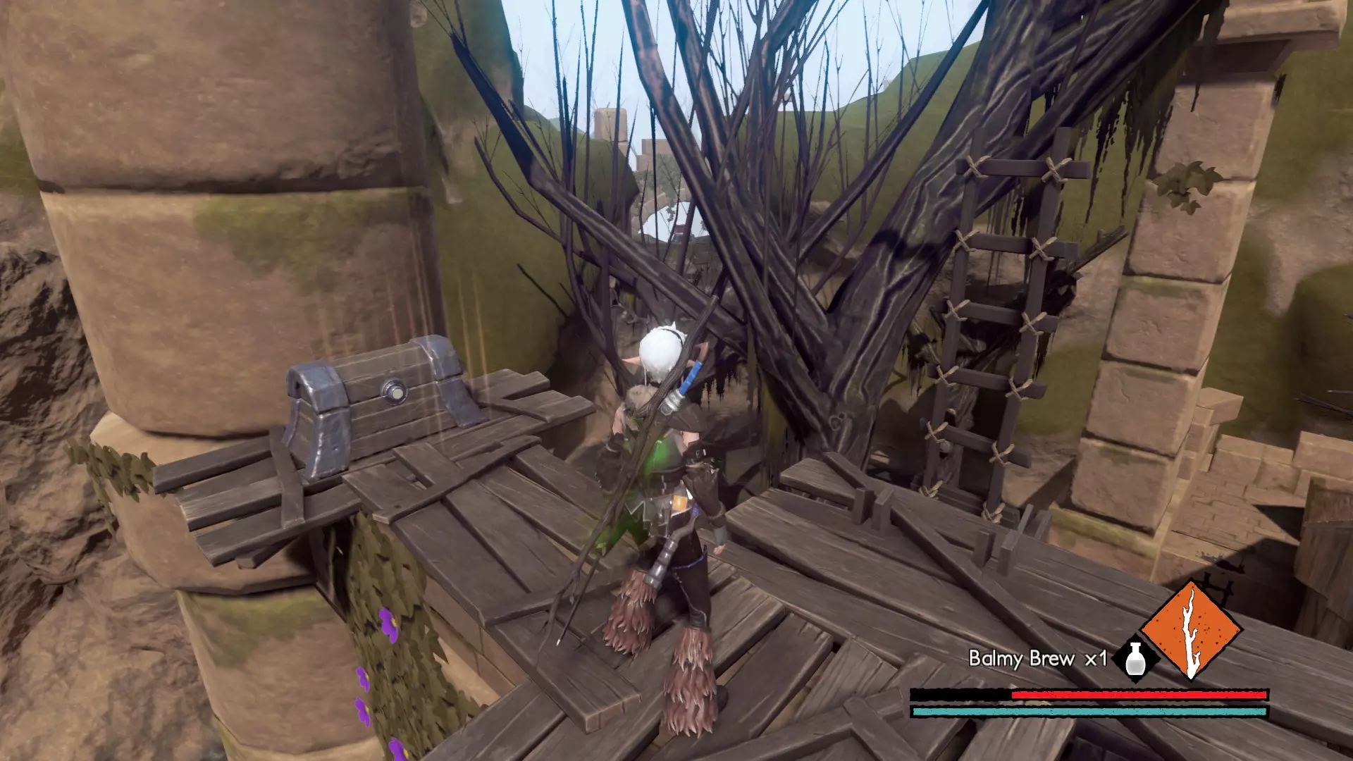 宝箱#2:选择麋鹿无法跟随的右侧路径,一直走到梯子处(不会错过)。