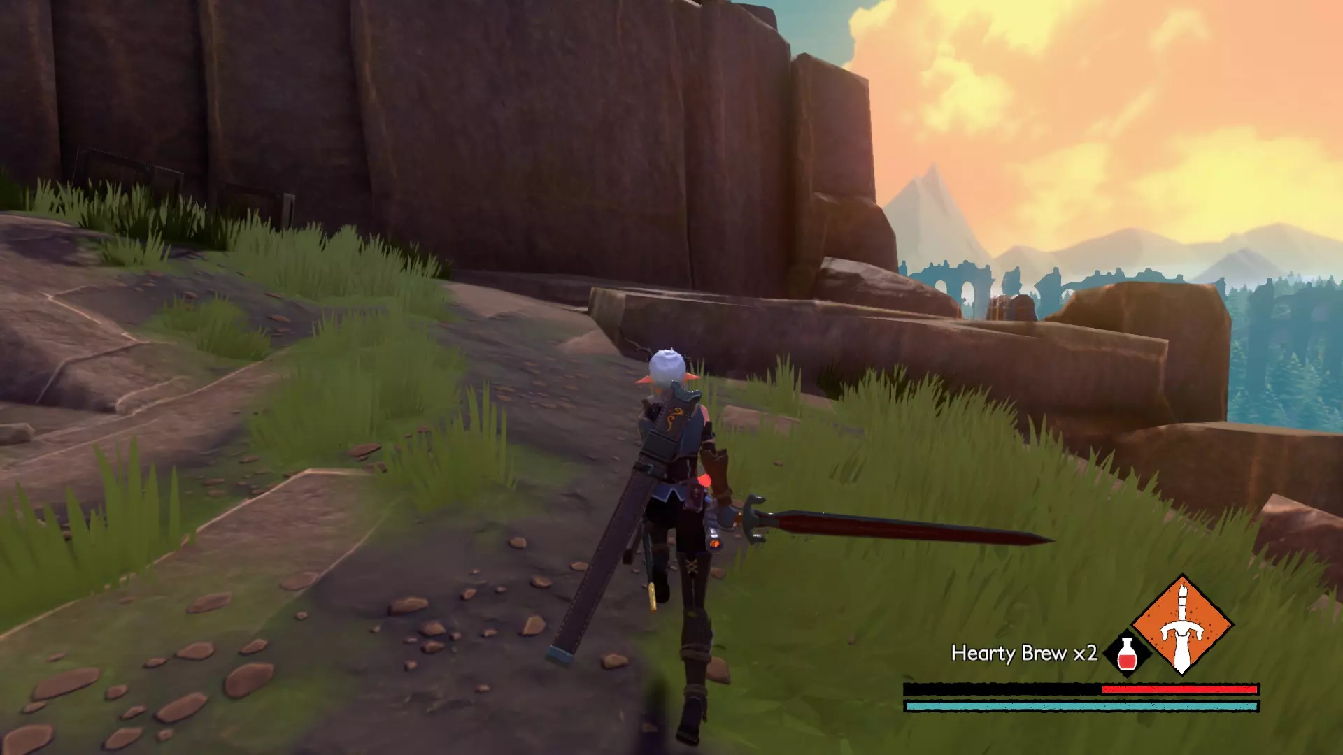 宝箱#2:在高山谷中,这个宝箱可以在一座坍塌的建筑附近找到,旁边有一个池塘,另一名皇家士兵在远处看守着。