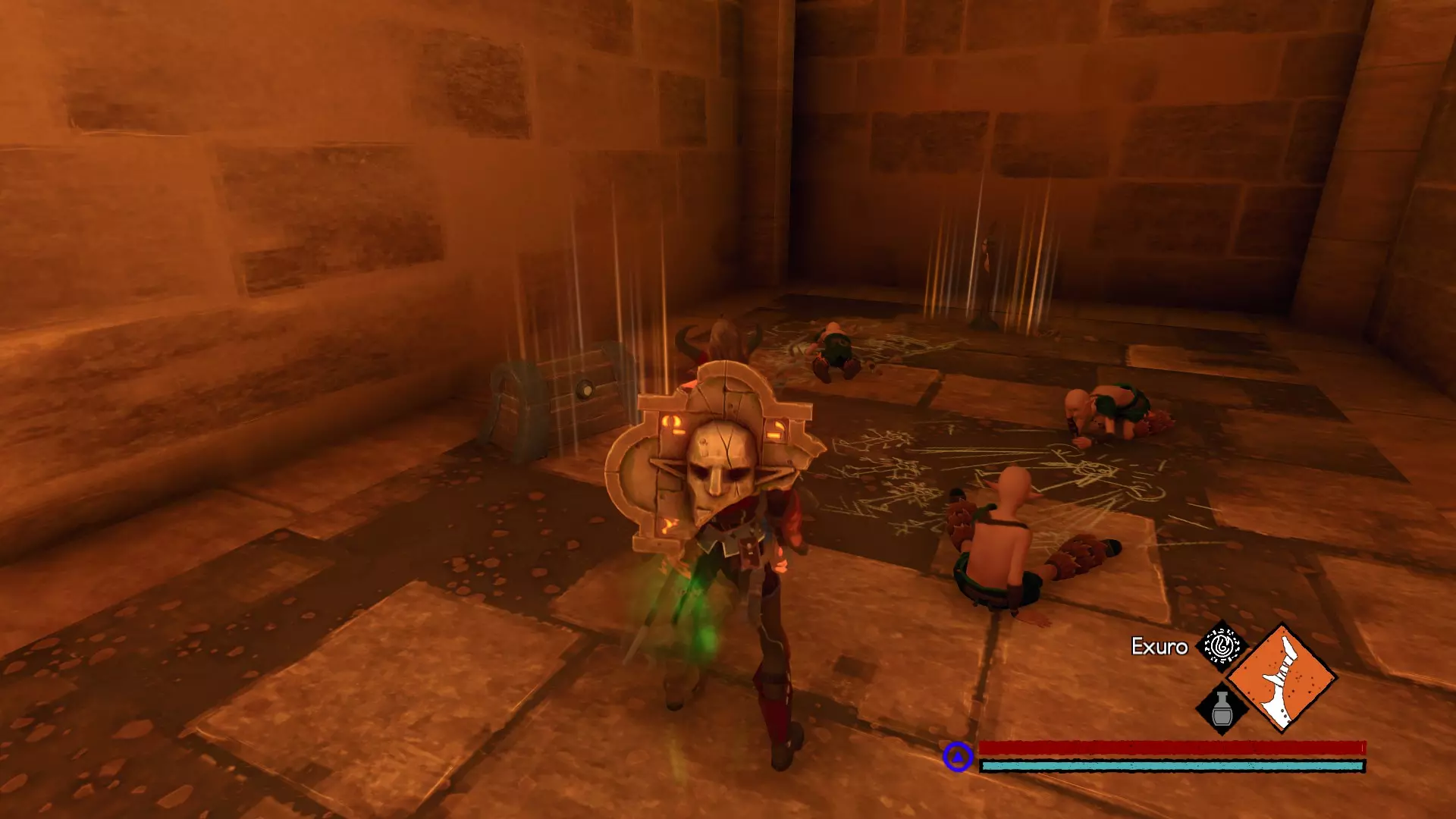 宝箱3:与船上的小麦商人对话,让他带你前往储藏洞穴。该洞穴由4名瓦迪之子守护,其中一名戴着金色面具,你需要用它来打开通往 boss 战的大门。