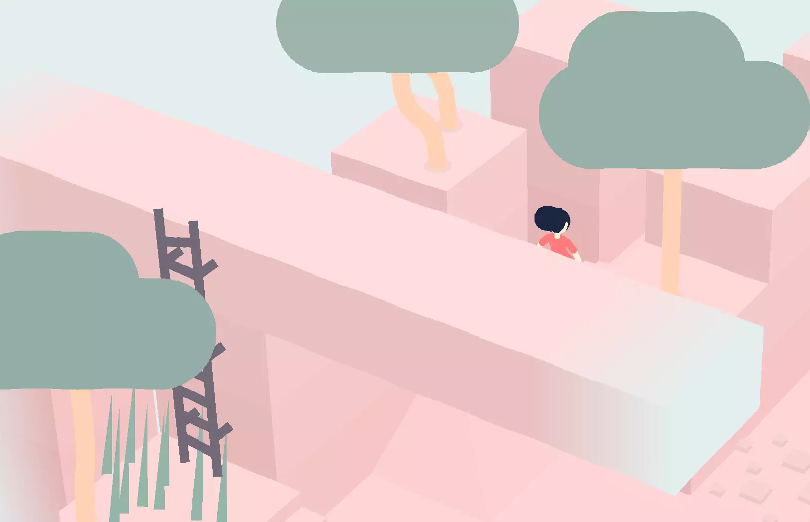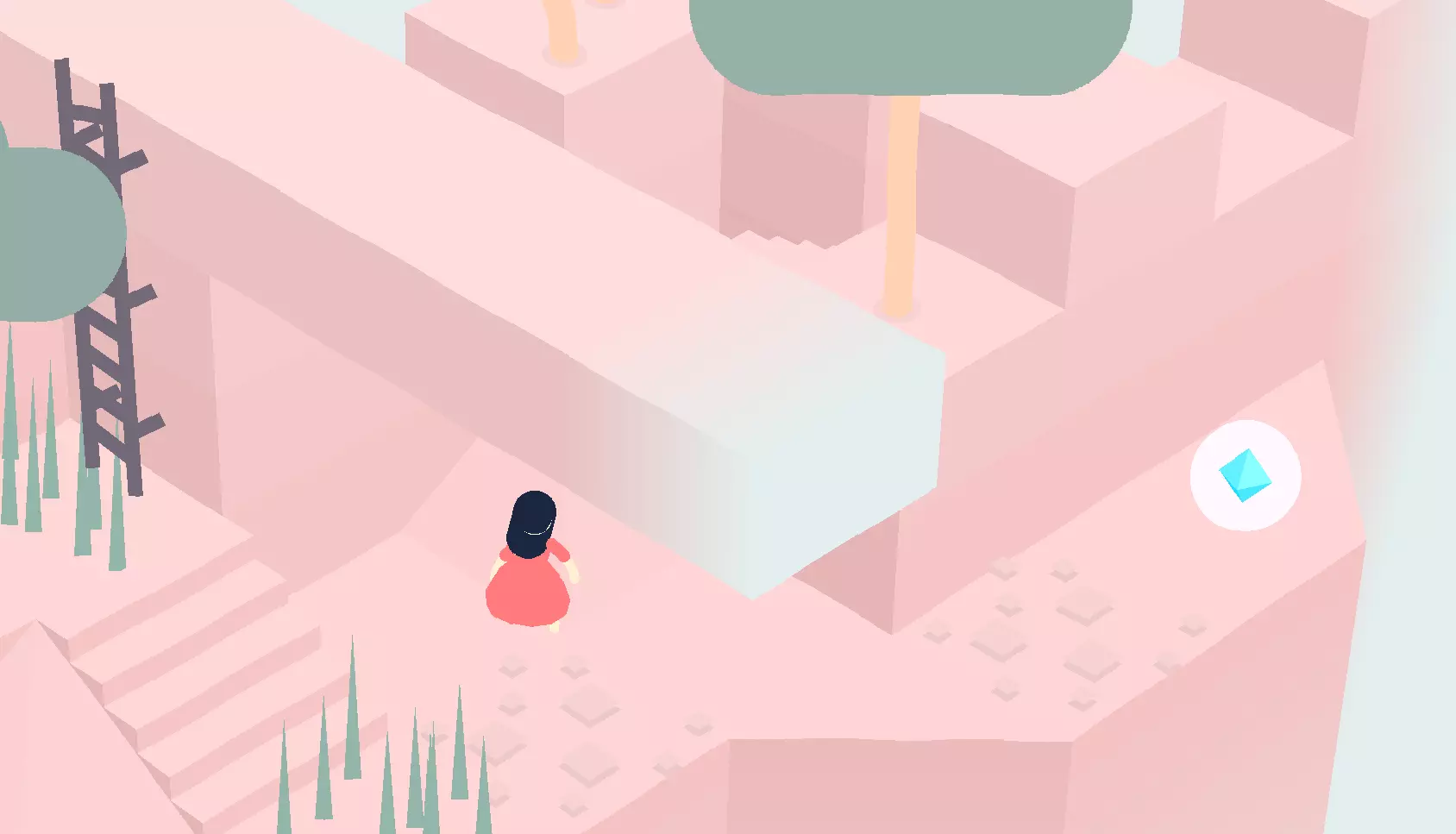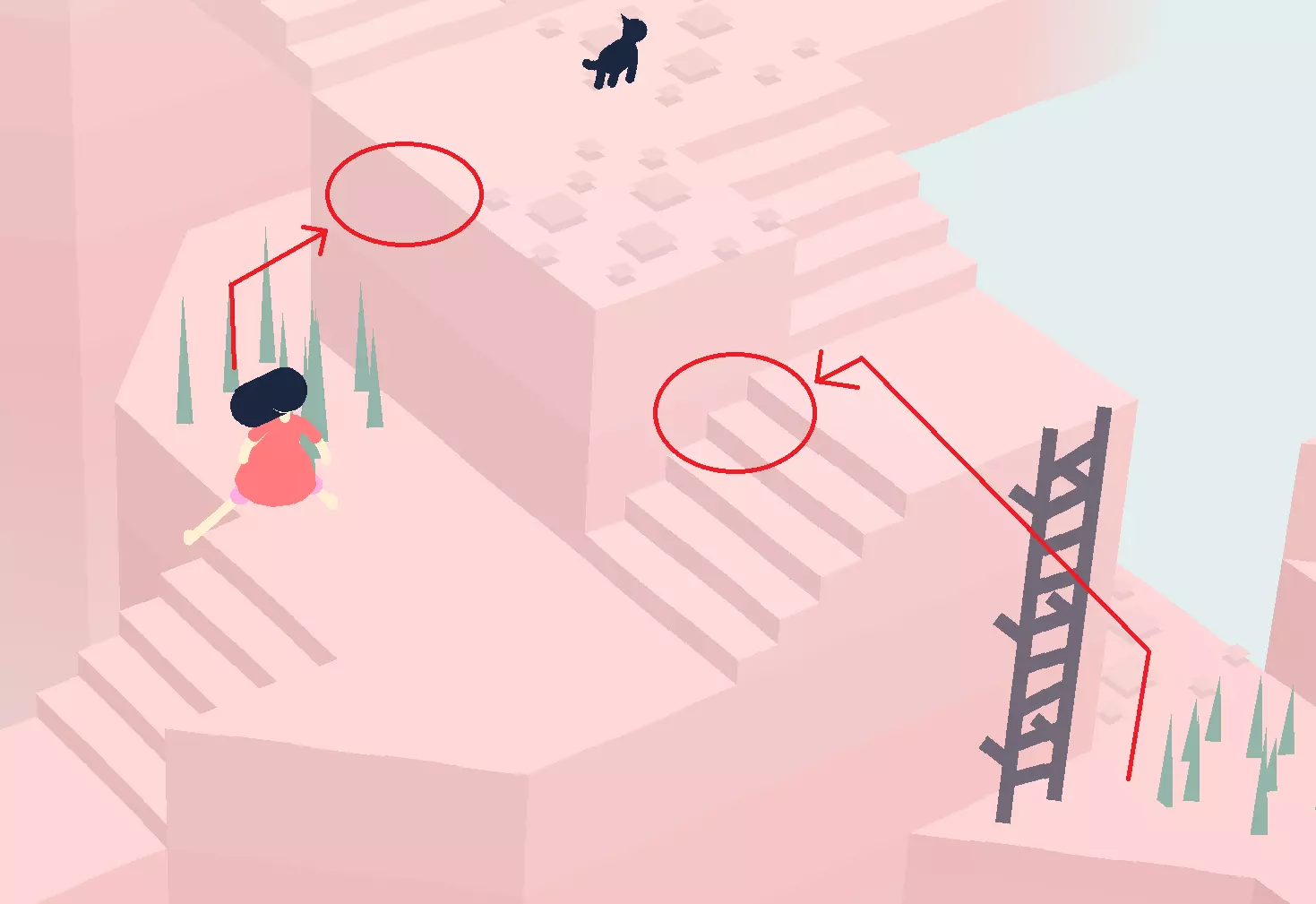 在下一个区域,爬下梯子,然后穿过有两棵树的区域。