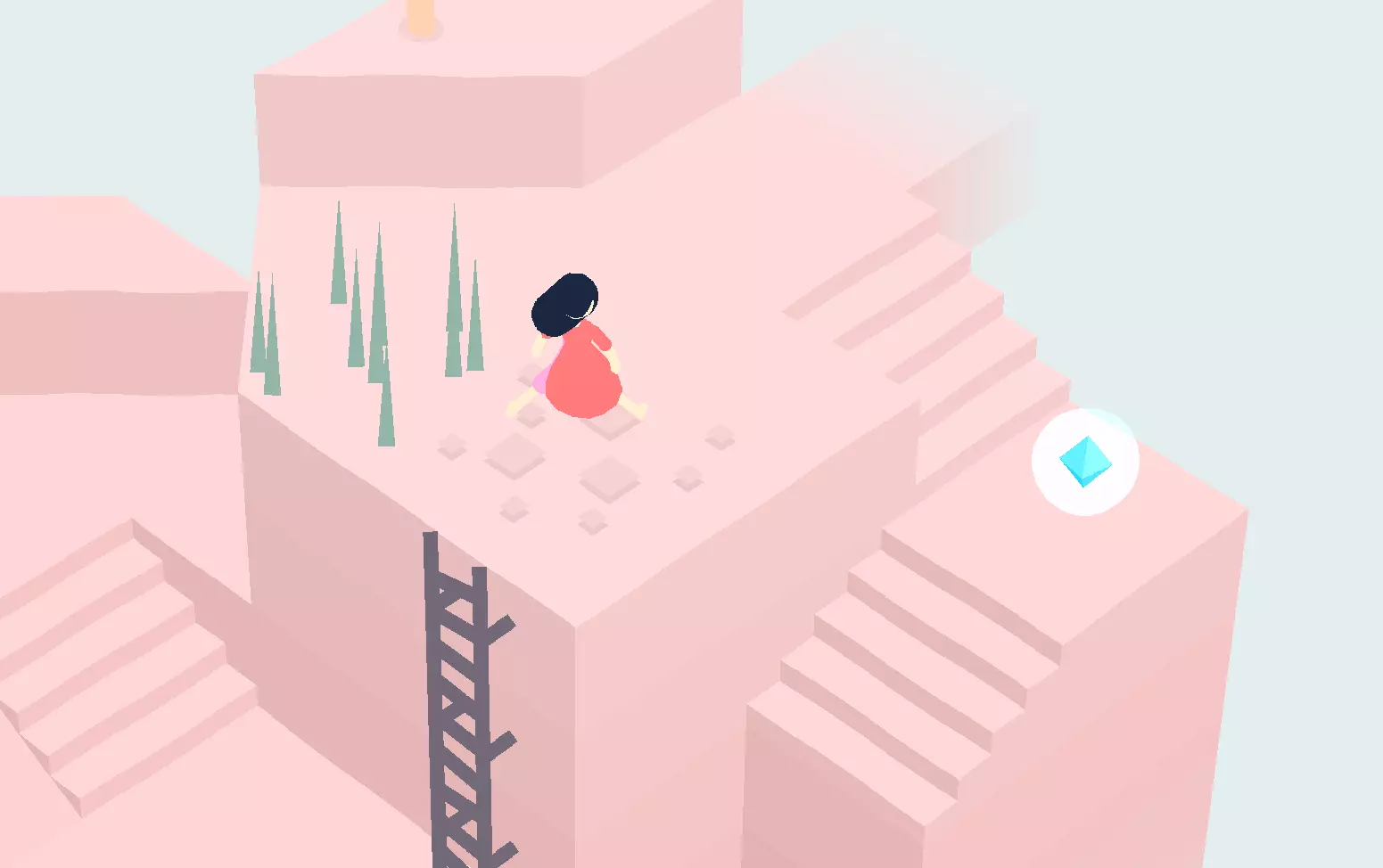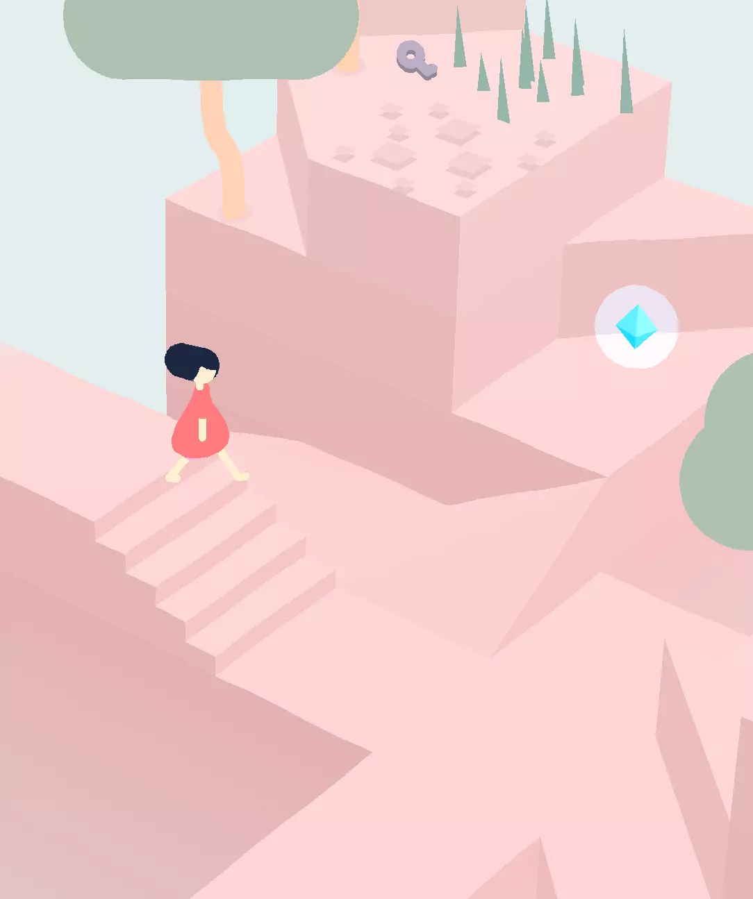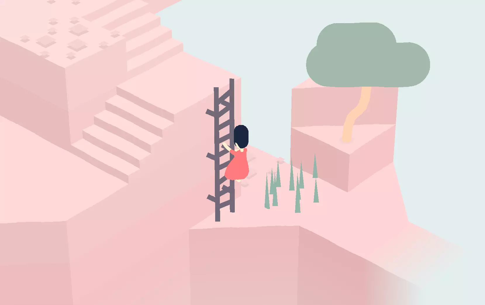 在下一个区域,爬下梯子,然后穿过有两棵树的区域。