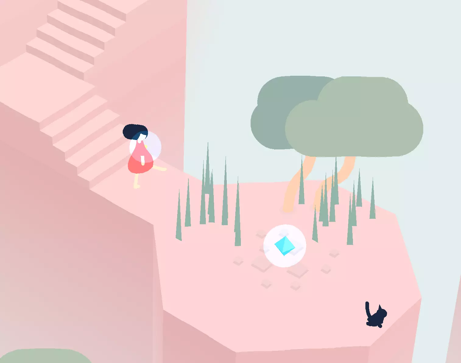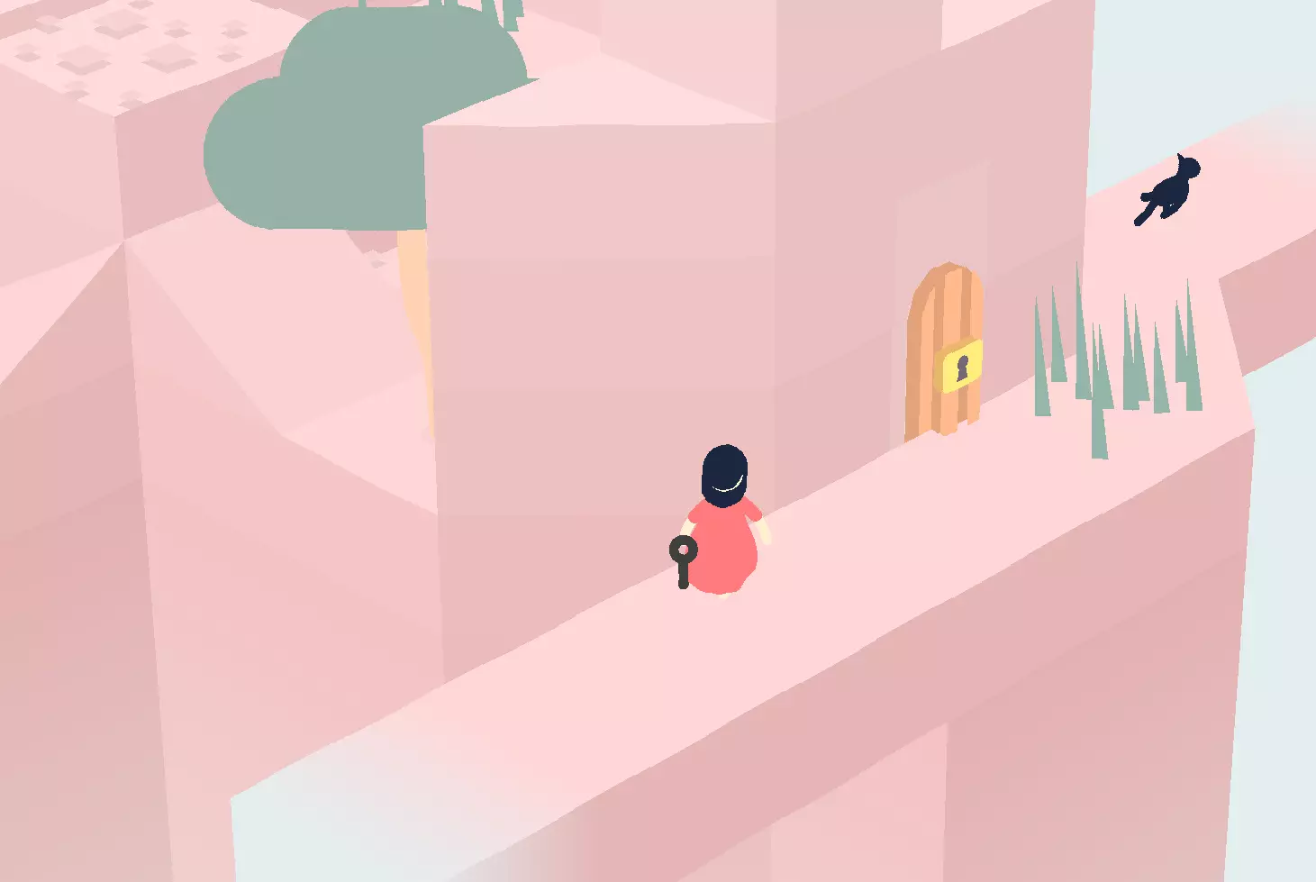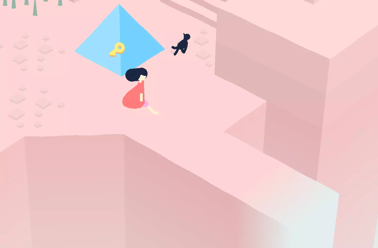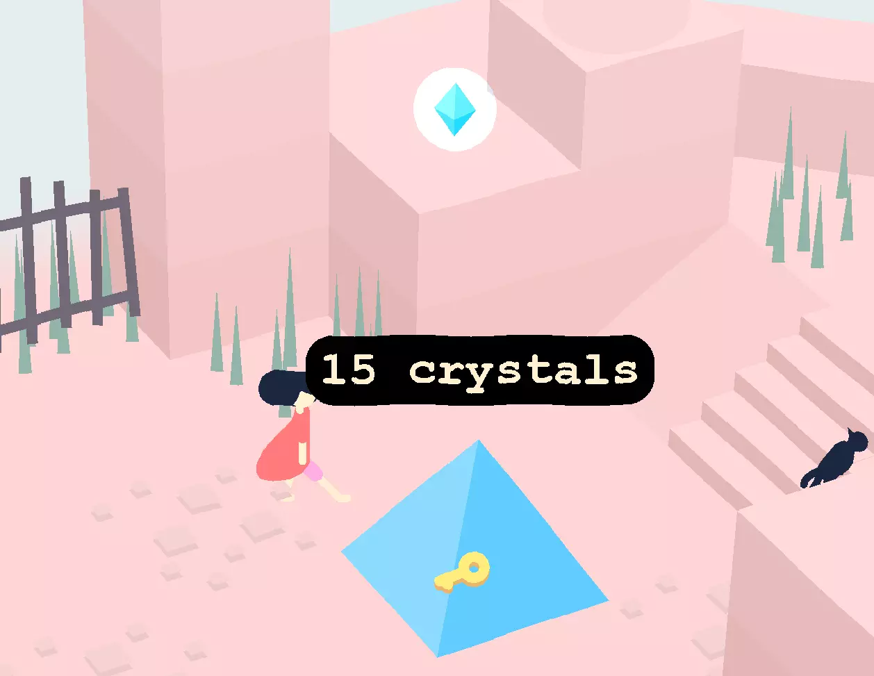 击败 击败游戏。 要击败游戏,你需要15个水晶和跳跃能力。水晶会解锁金字塔中的钥匙。钥匙和锁着的门通向最后的区域。最后的区域是相当直接的平台跳跃。在最后一个区域中坐在猫旁边即可完成游戏。 速通