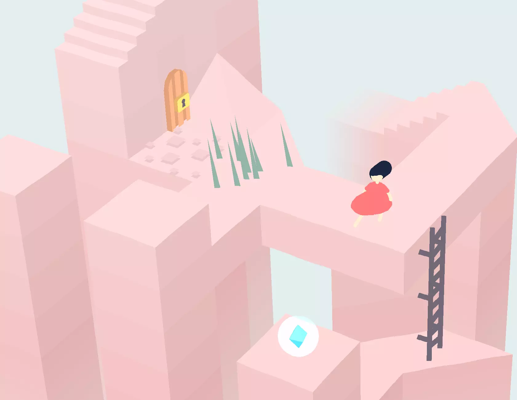 在下一个区域,爬上锁着的门上方的楼梯,前往下一个区域。