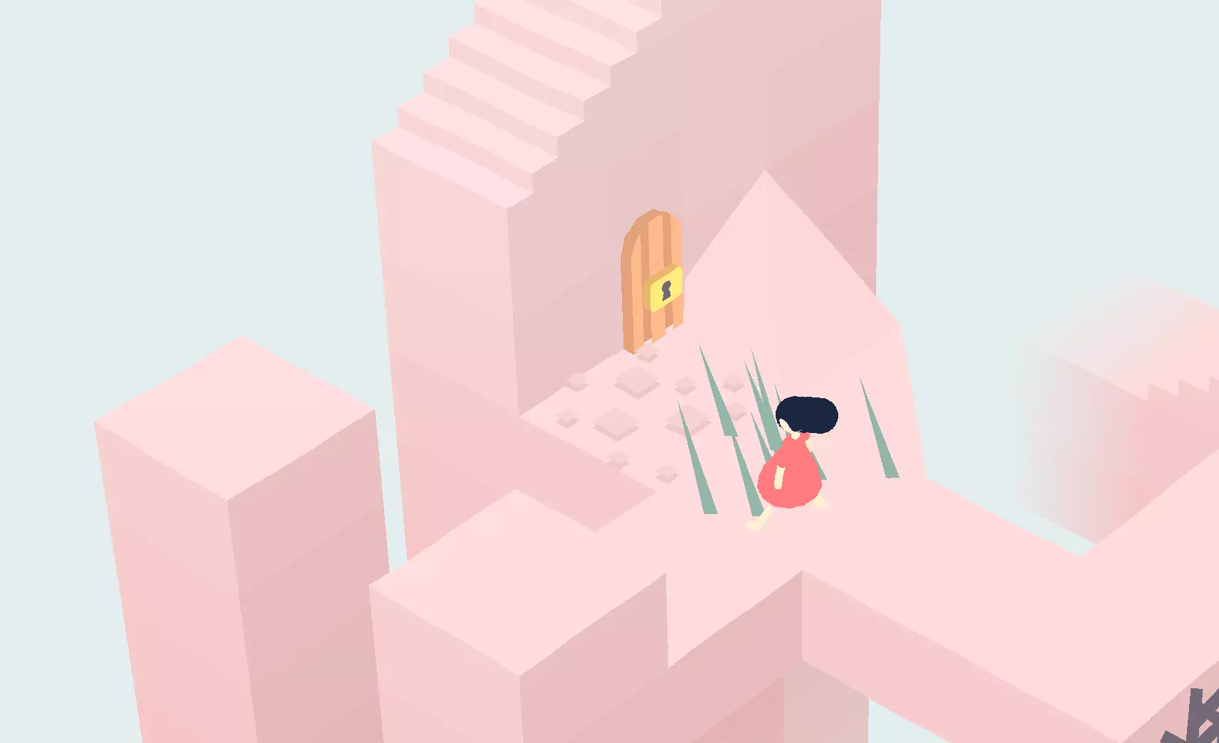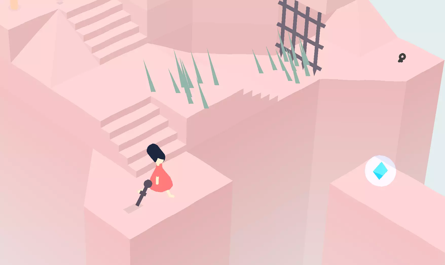 在下一个区域,穿过平台并拾取钥匙。返回上一个区域的锁着的门,打开它并穿过。