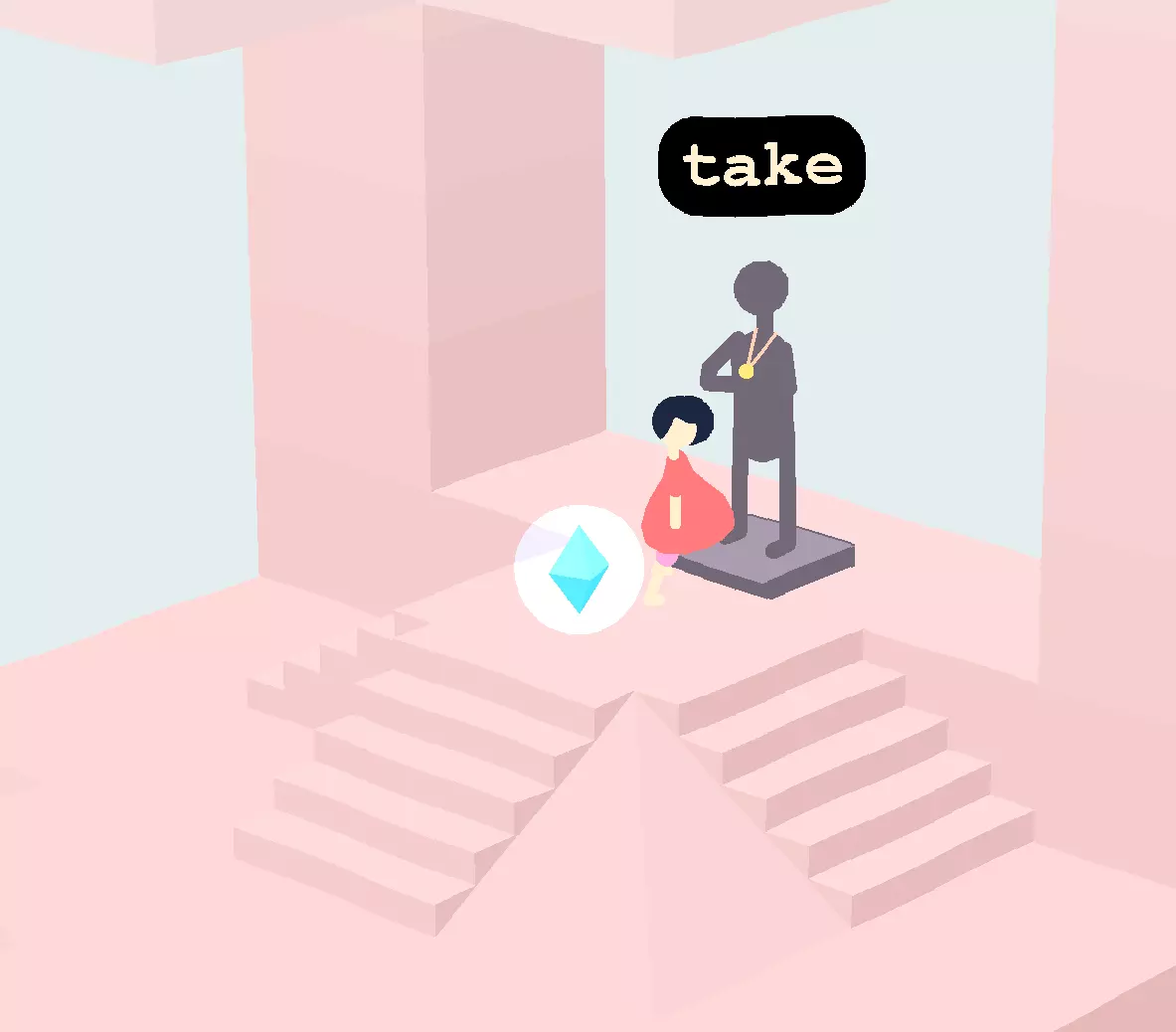 在锁着的门后面的区域,从雕像处拿起护身符。