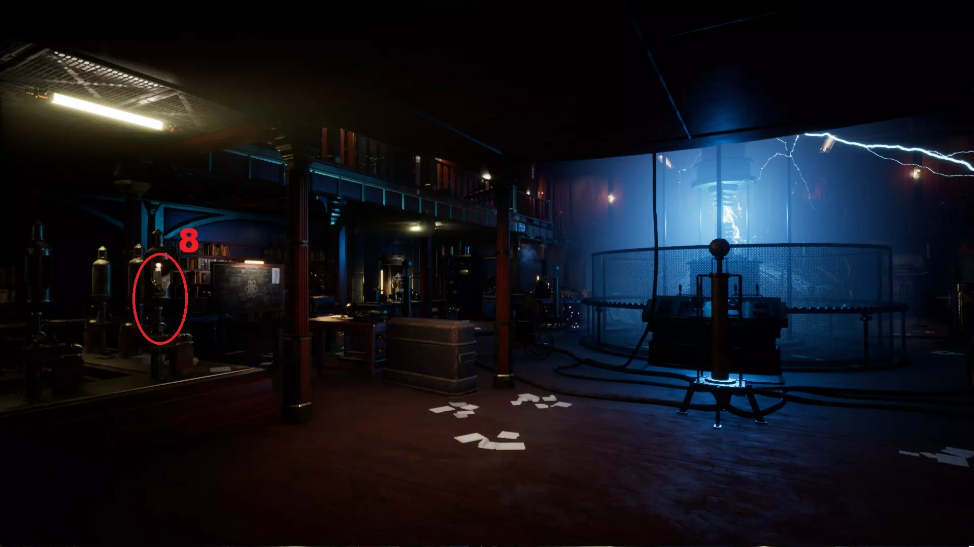 4. 特斯拉塔图纸。很容易找到。就在走廊的桌子上。在逃离怪物之前。