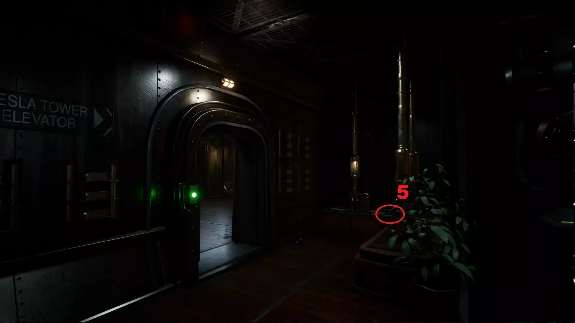 5. 特斯拉塔单轨车站图纸。在逃离怪物后的第一个房间内,出口前的右侧。