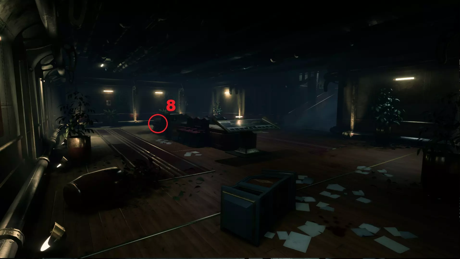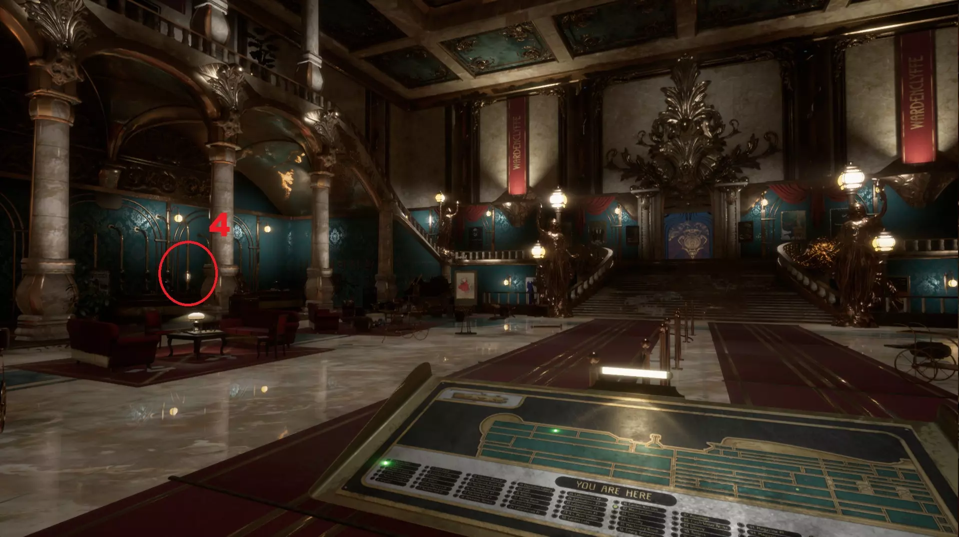蓝图收集者 找到第四章中的所有可收集物品。 大厅里的气动邮件装置位于前台右侧。
