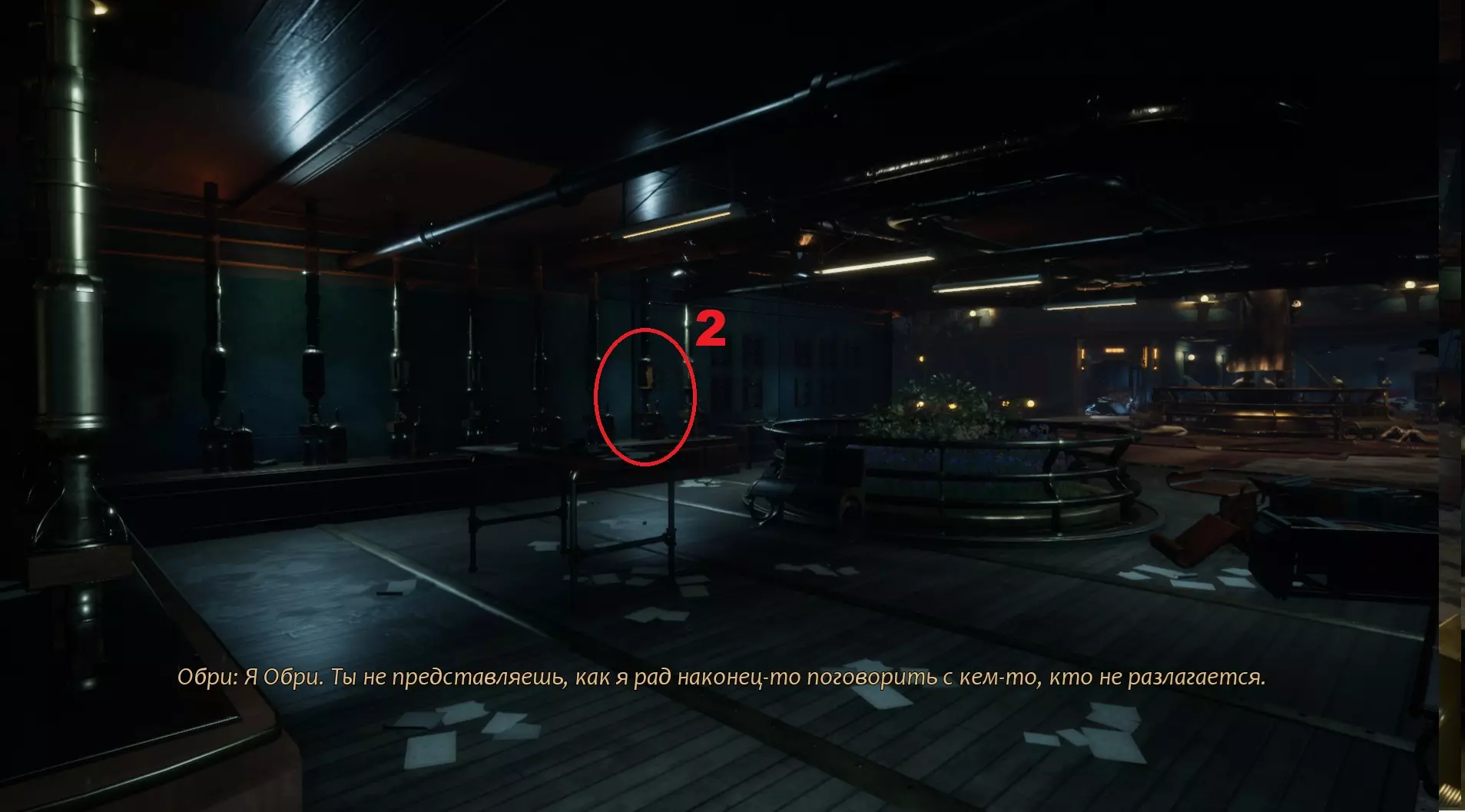 2 - 通行证:希尔维娅·毕晓普。前往中央电梯前,先走向左侧区域。在房间内找到通往其他舱室的门。113号舱室。在桌子上。