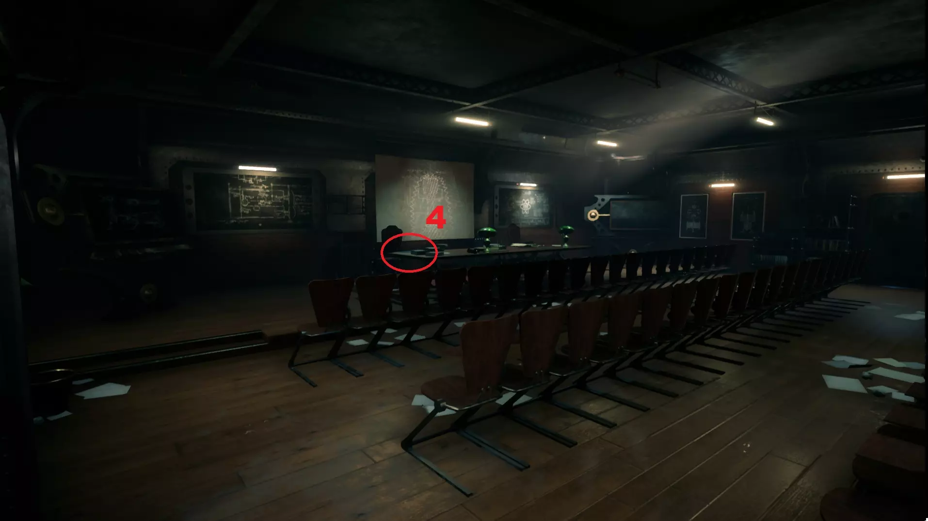 6 - 【人工光合作用诱导器】图纸。在有红色病床的实验室里,就在有老鼠的房间之后。位于尸体旁边。