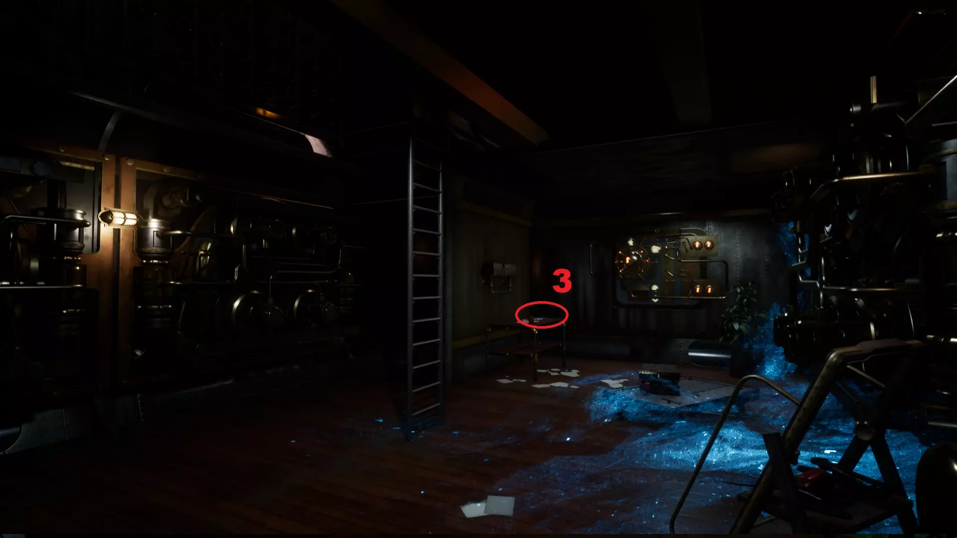 2 - 蓝图【X光设备】。在214房间(特斯拉线圈之后)。就在第一个房间内,特斯拉线圈左侧角落的尸体旁。