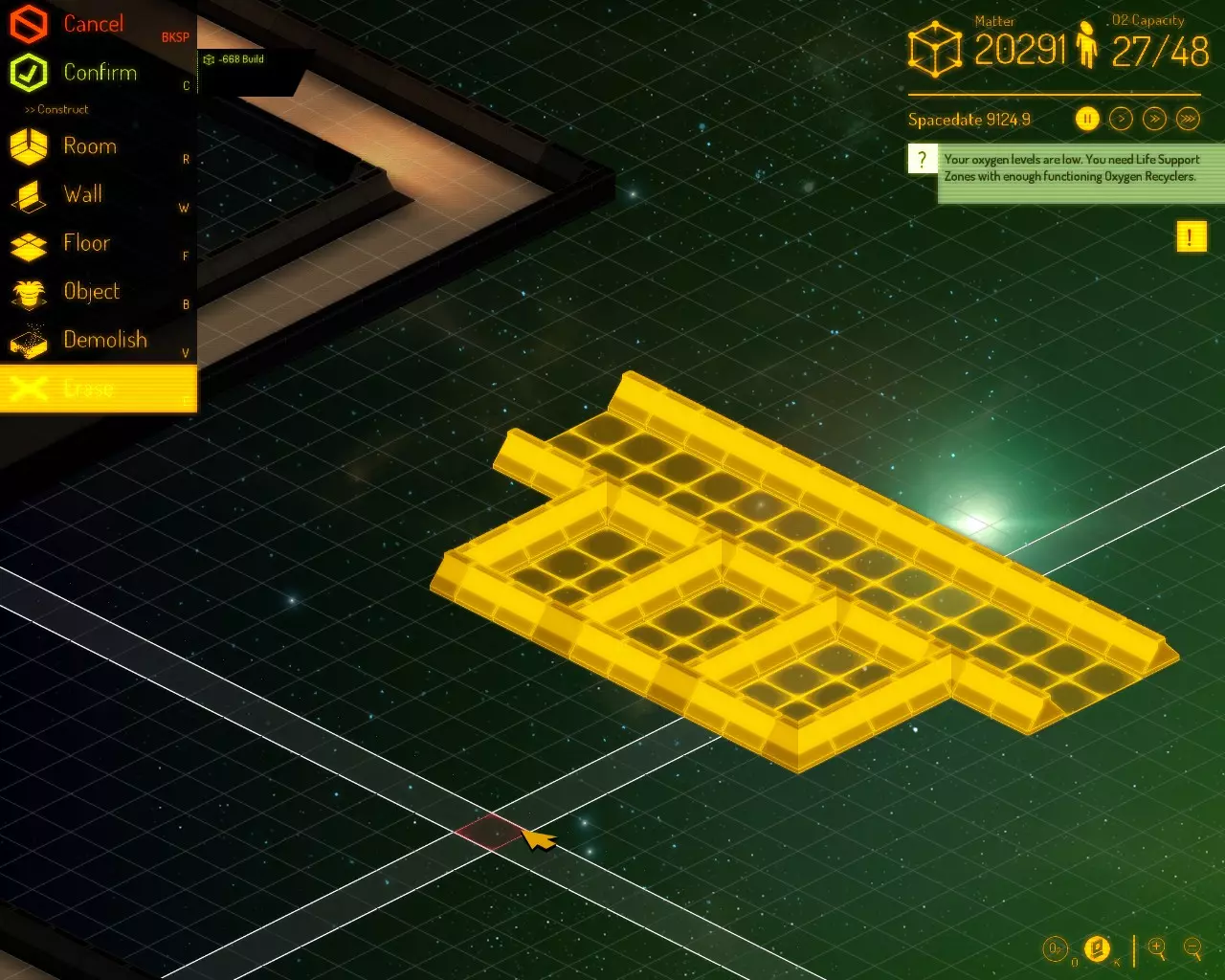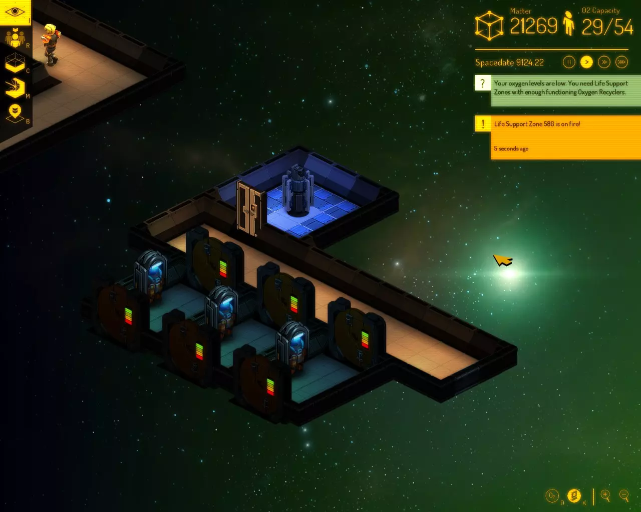 一些帮助你的太空居民保持高效,最重要的是存活下去的基本技巧! 基本技巧 游戏中没有教程,因此观看【Learn to Play】视频是必须的。 开始初始建造时,选择尽可能大的 asteroid(小行星)碎块附近。移动距离更短意味着进度更快。 建造气闸门室时,墙壁尺寸为5x4(地板尺寸为3x2)。然后在两面2单位宽的墙上各放置一个气闸门,并在3单位宽的墙中间放置一个太空服储物柜。之后将其与走廊相连。