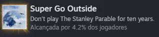 注意!该成就包含《史丹利的寓言:终极豪华版》DLC结局的大量剧透,请谨慎阅读! 大致流程是,在尾声结局中,一开始那个登录界面的人会再次出现在电脑上,他会询问你是否想继续创作《史丹利的寓言》的续作。如果你回答“是”,他就会修复成就机器——就是在旁白展示《史丹利的寓言2》的那个结局里出现的机器。之后我们需要回到那里,为此,必须拿着桶进入【新内容】的门两次。第一次,你会达成一个新结局,之后每次进入那扇门,它都会带你前往【史丹利的寓言2】结局。在这个结局中,你只需走到展示成就机器的地方,拉动机器的操纵杆即可。Super go Outside