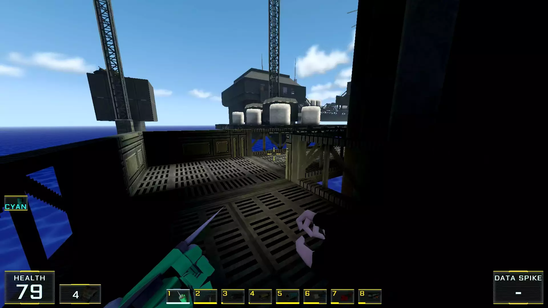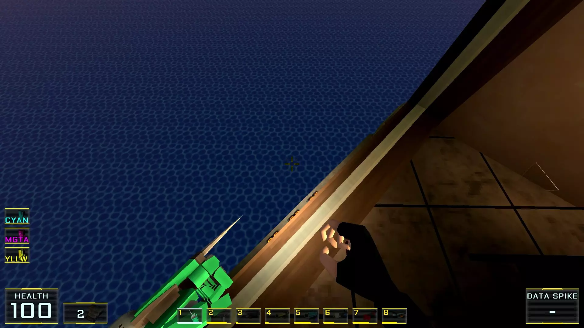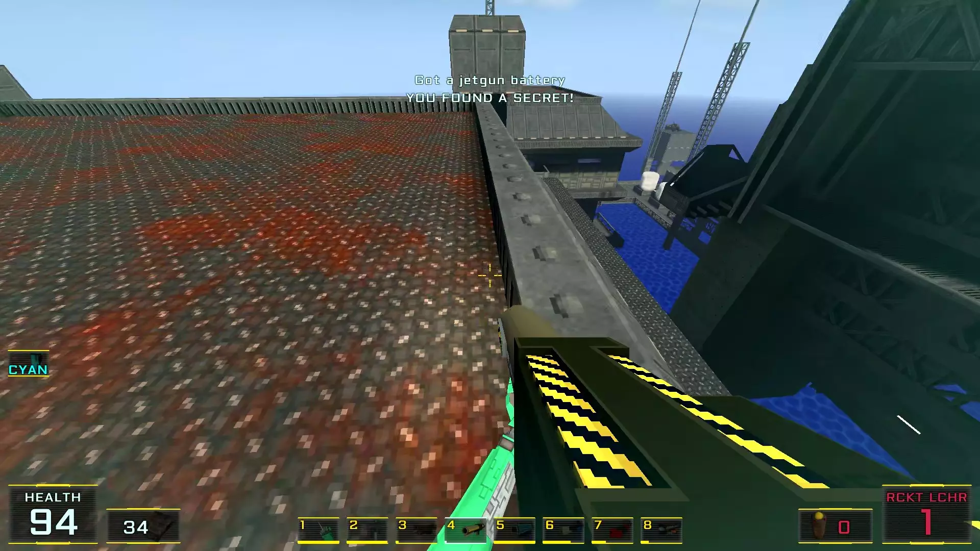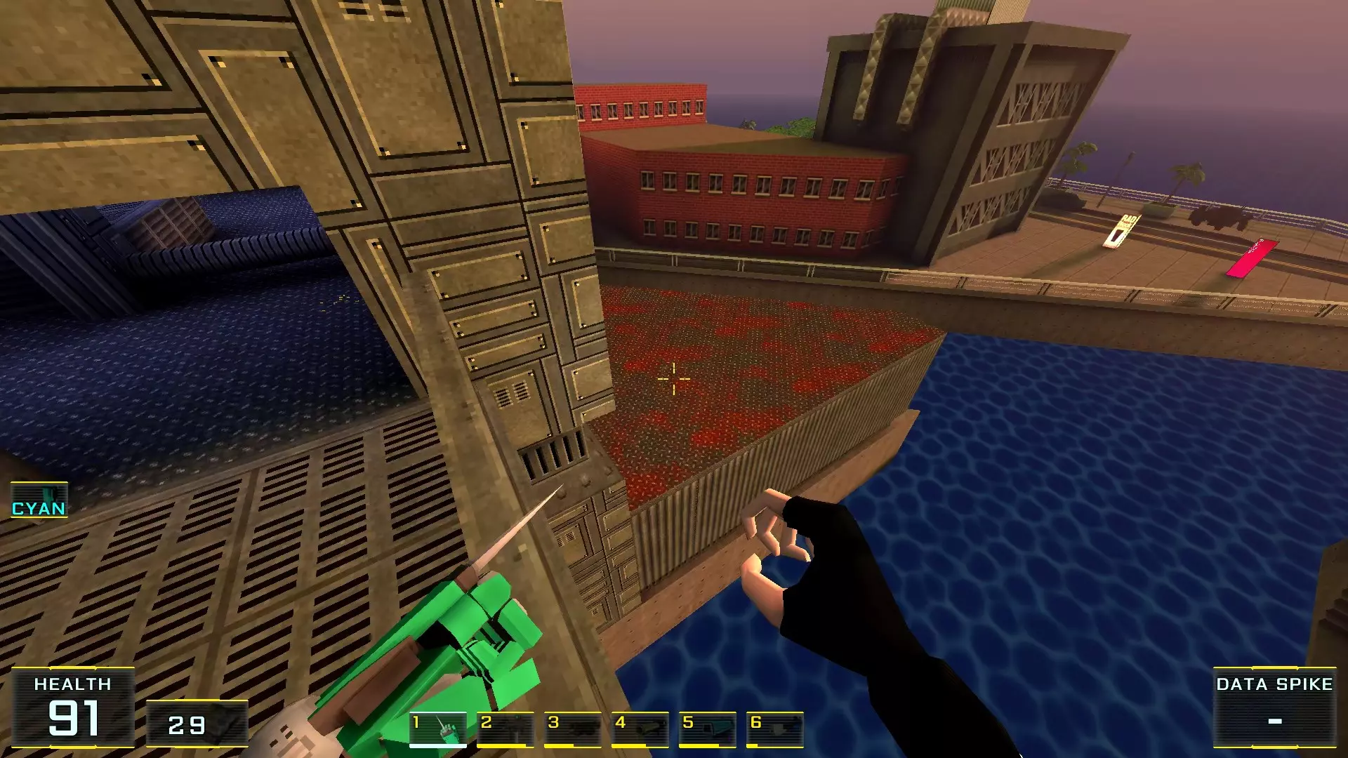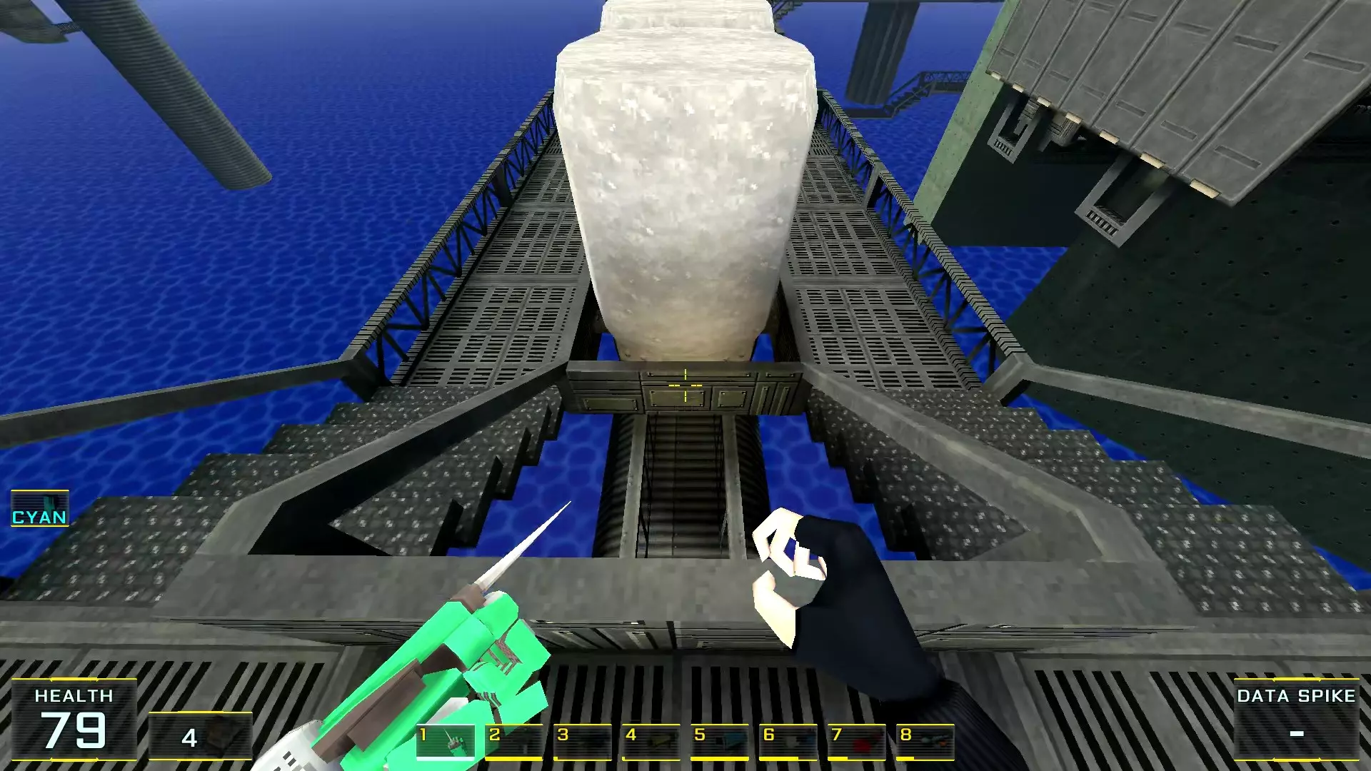 秘密4. 4号塔屋顶的喷射枪弹药 1. 前往关卡尽头,但不要通过需要蓝卡钥匙的门后的楼梯,那扇门通往关卡结束的控制面板。相反,请注意门后方的塔屋顶(最初只能通过跳入水中进入的那个屋顶)。
