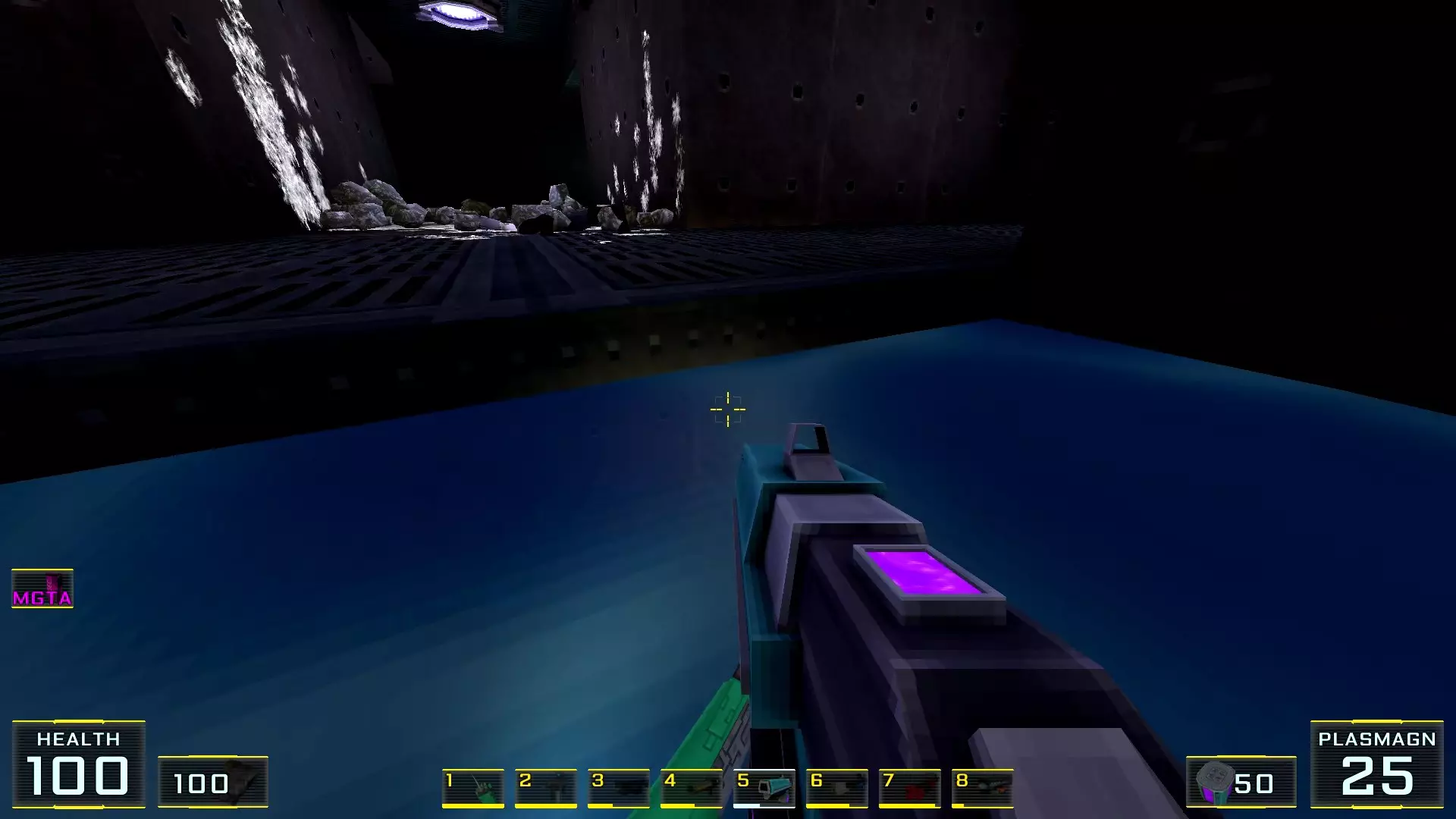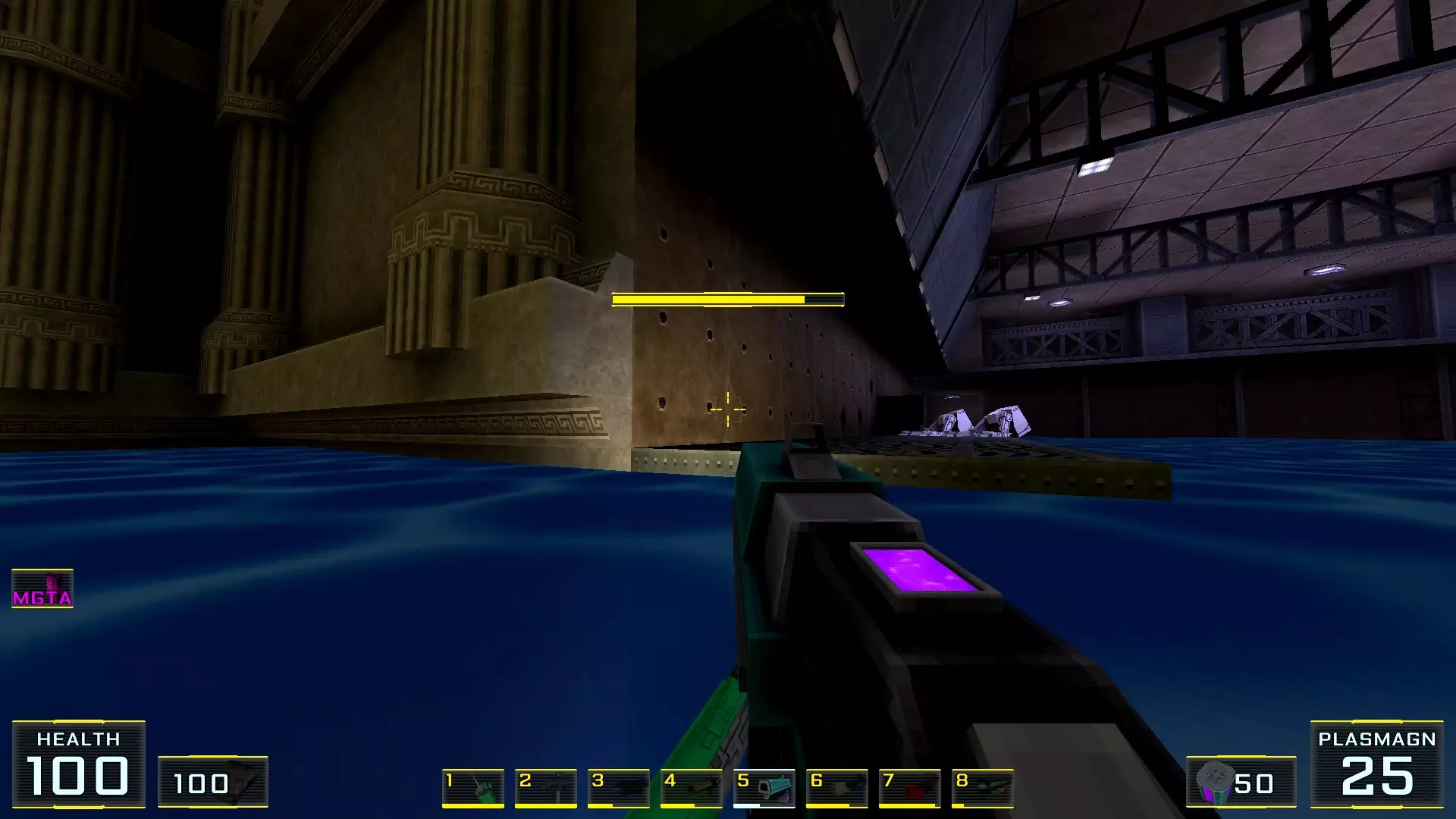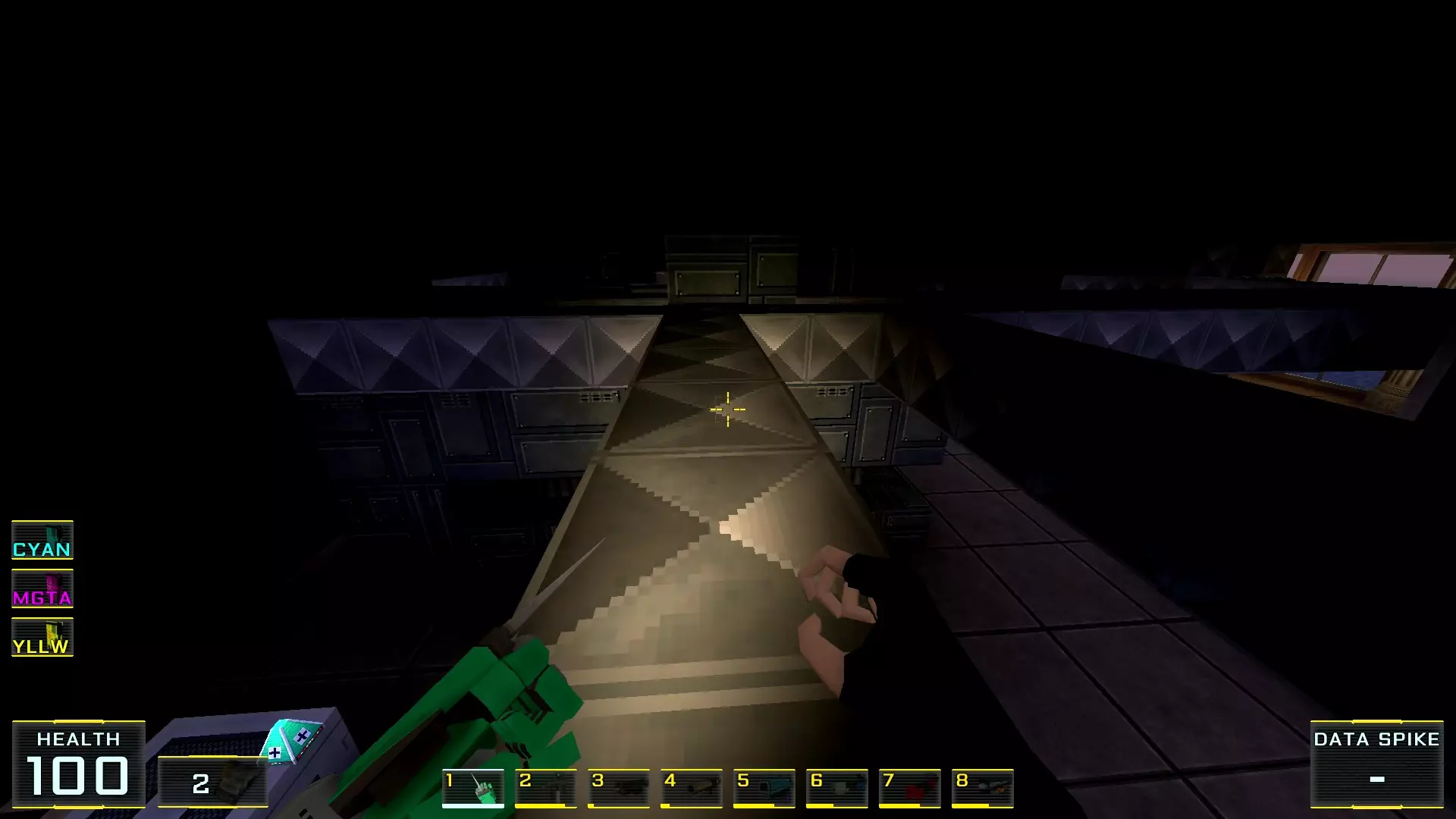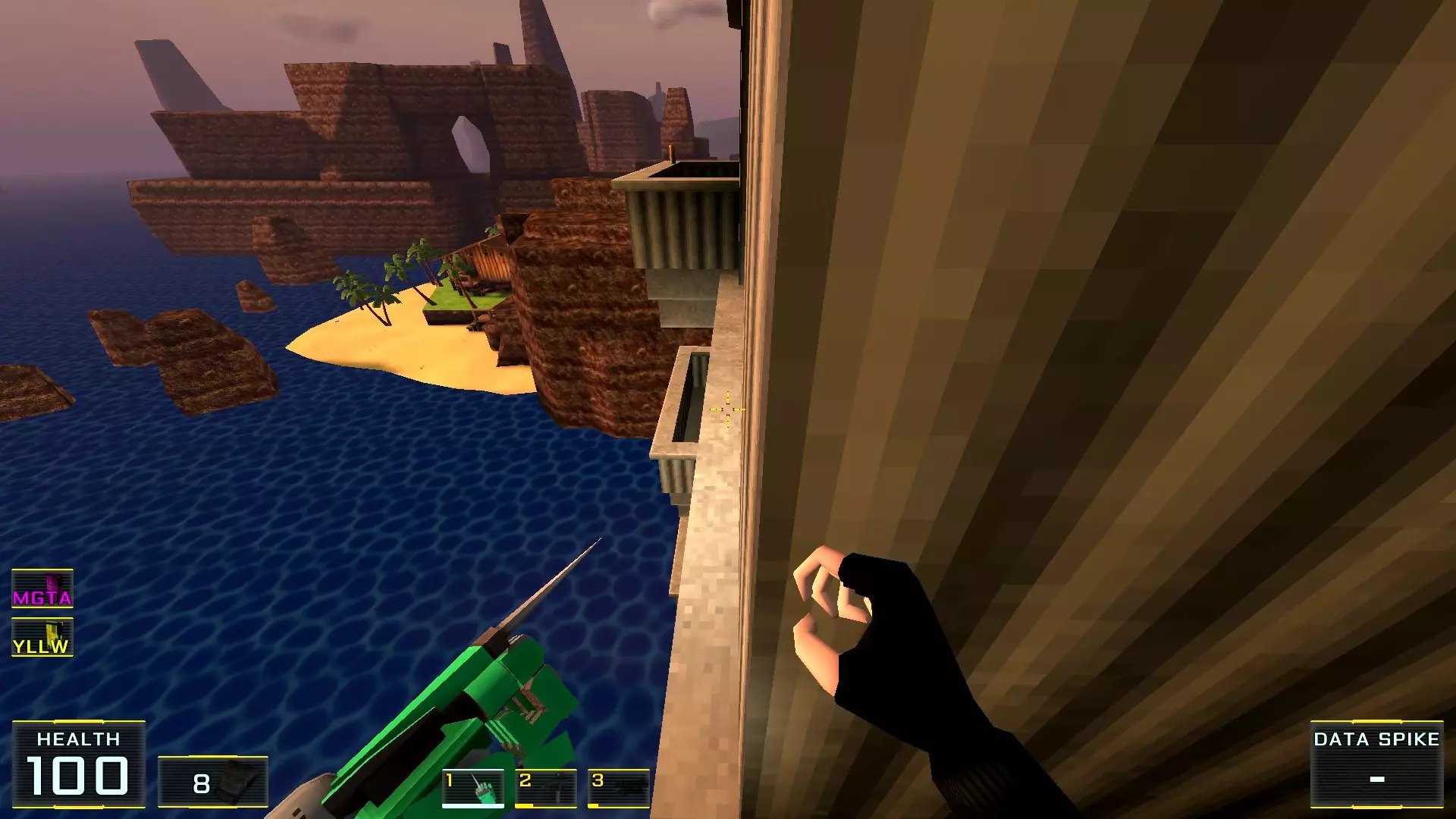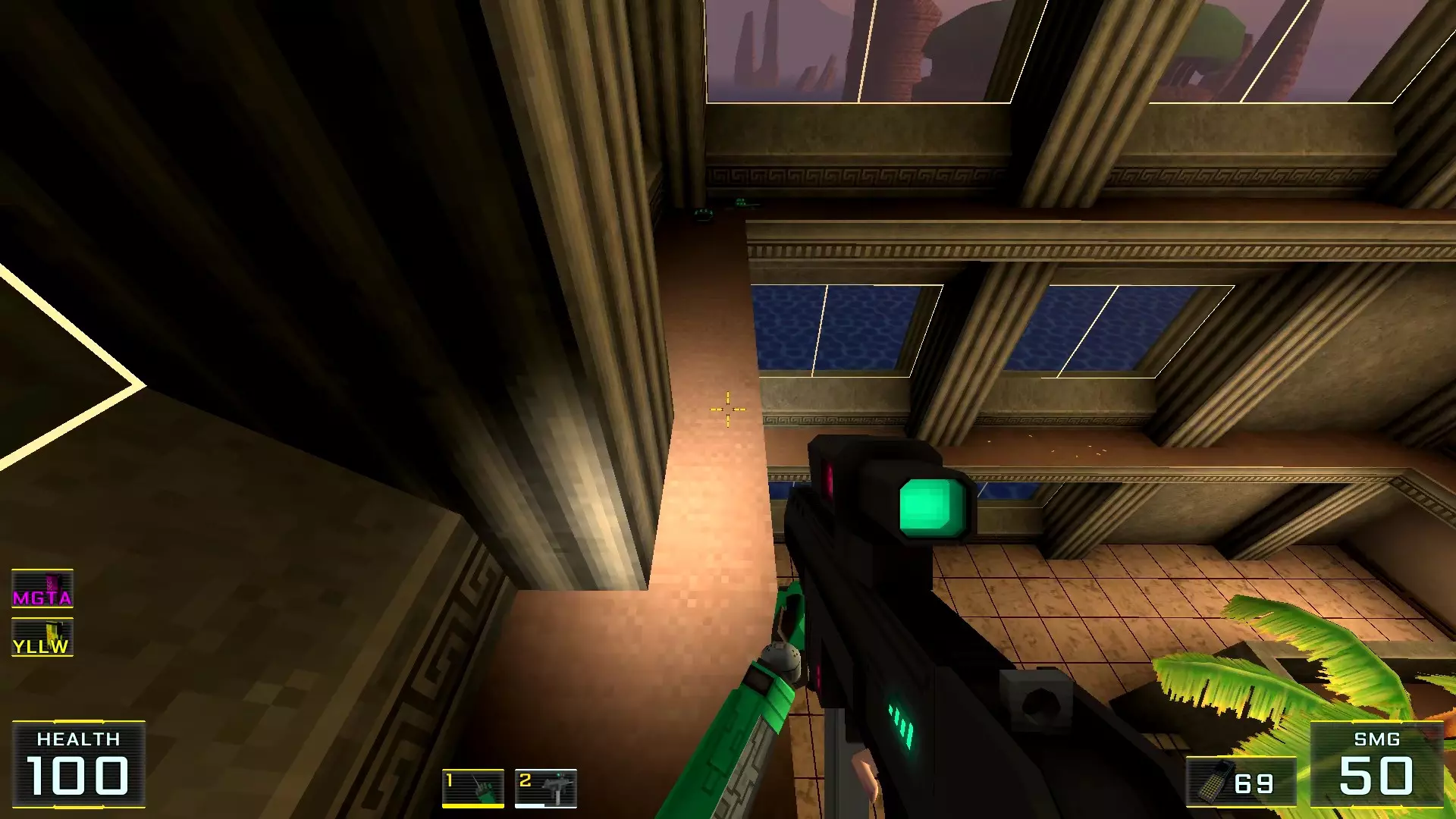 秘密4. 4号塔屋顶的喷射枪弹药 1. 前往关卡尽头,但不要通过需要蓝卡钥匙的门后的楼梯,那扇门通往关卡结束的控制面板。相反,请注意门后方的塔屋顶(最初只能通过跳入水中进入的那个屋顶)。