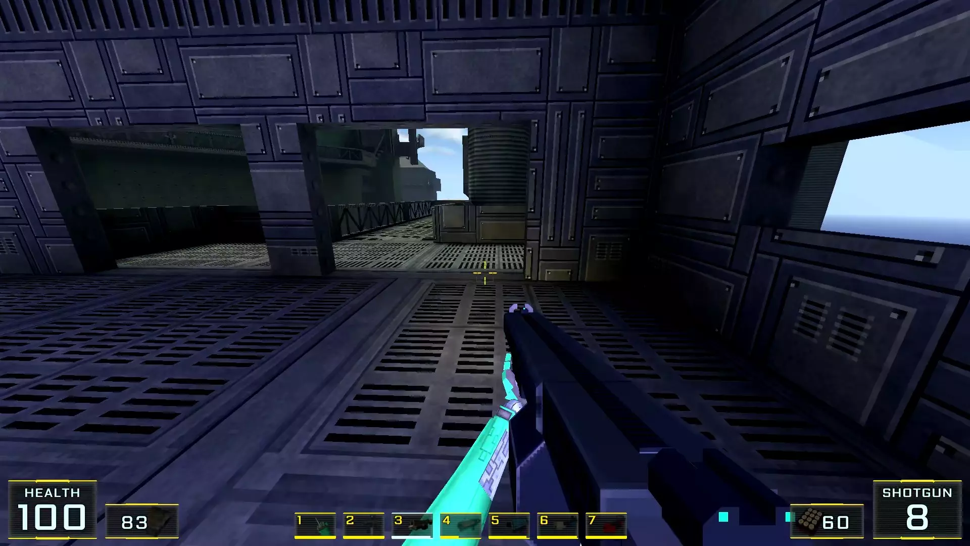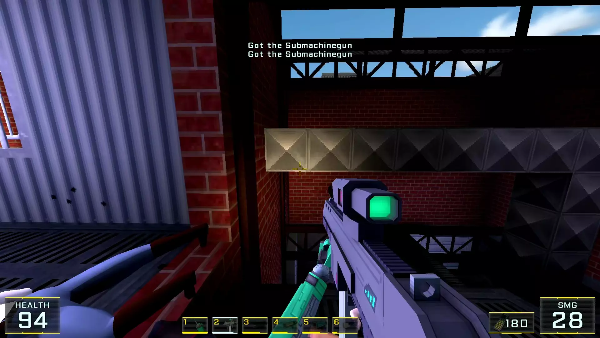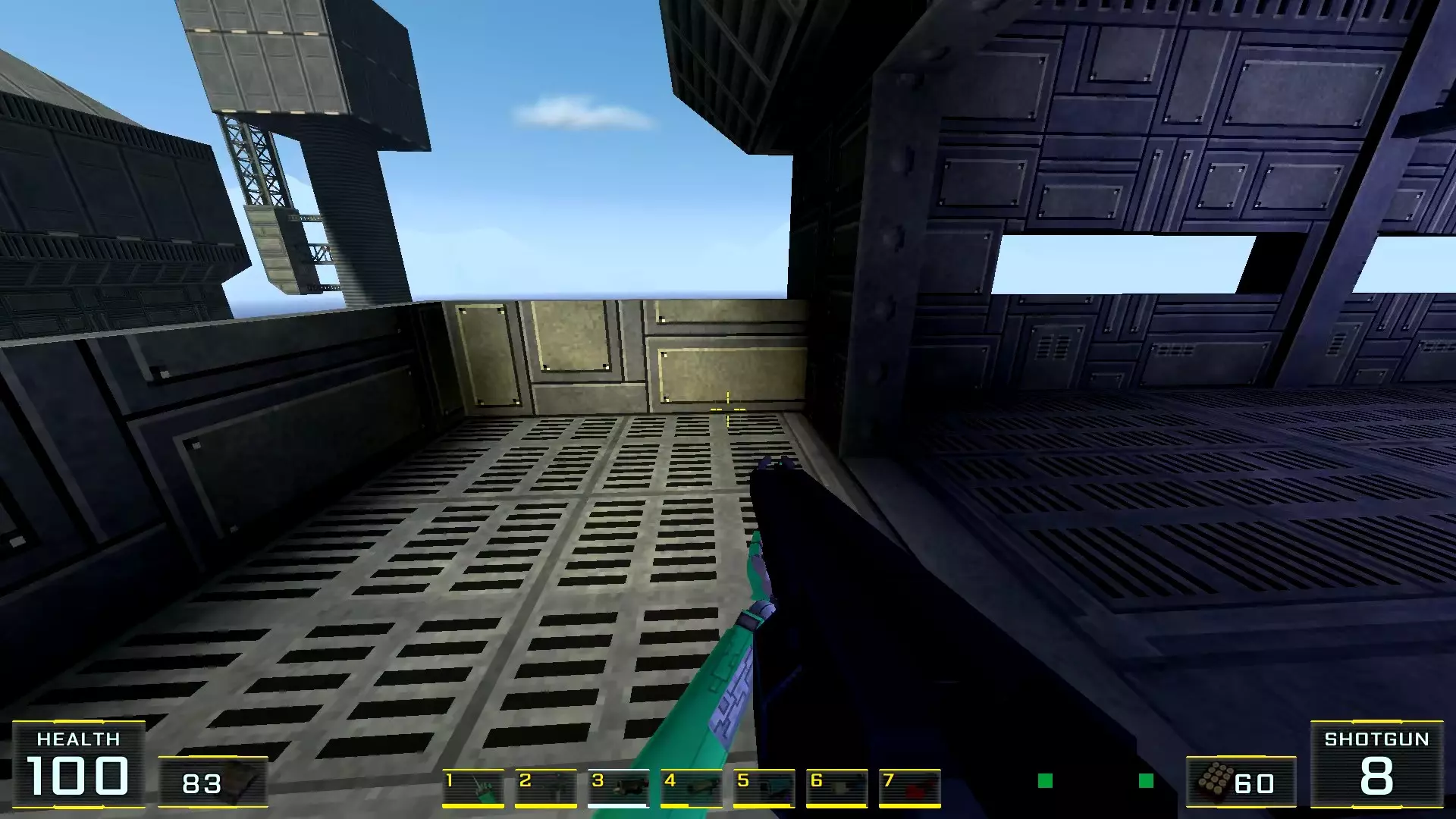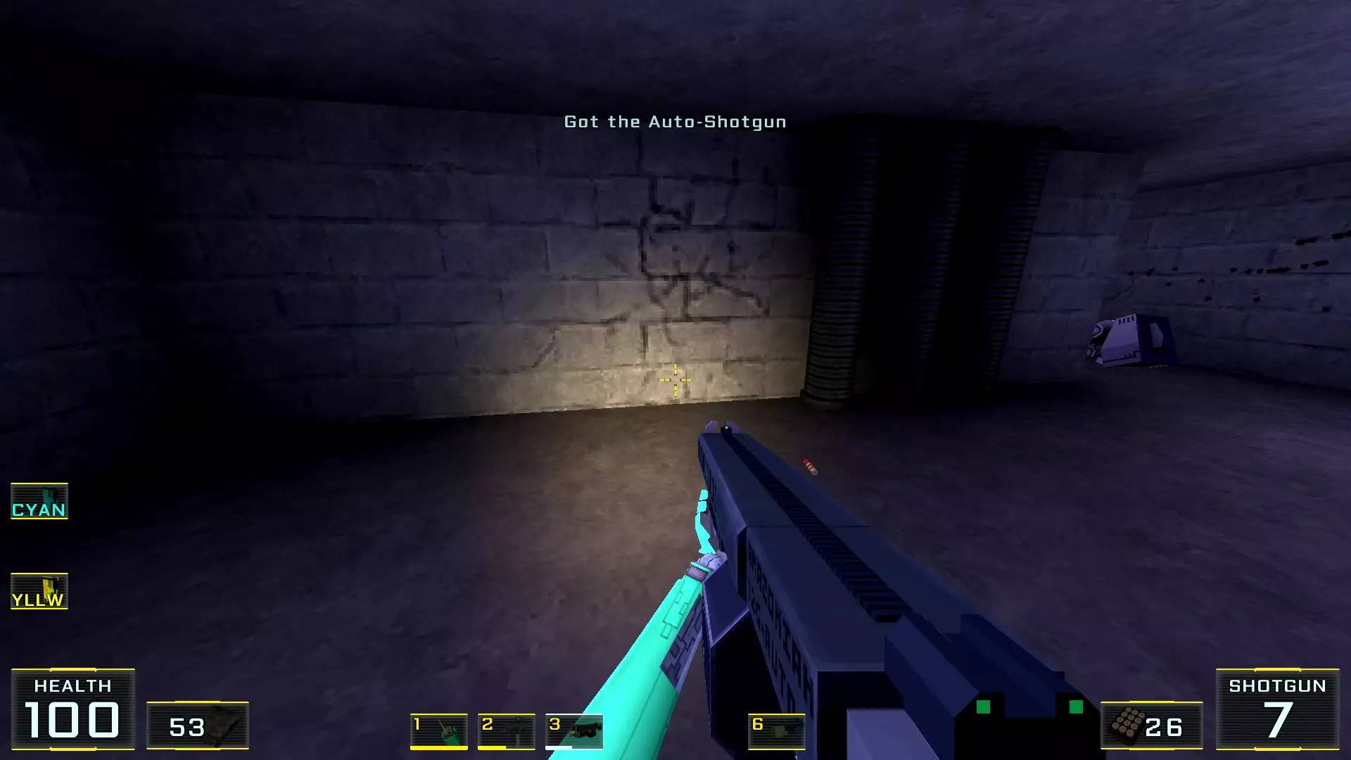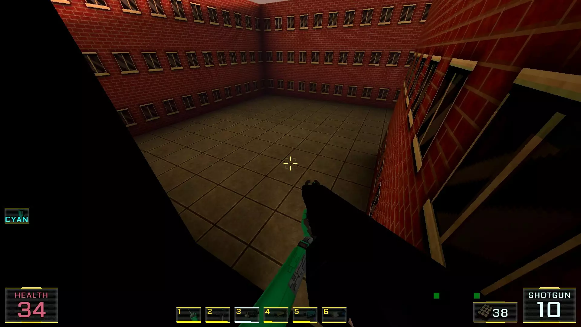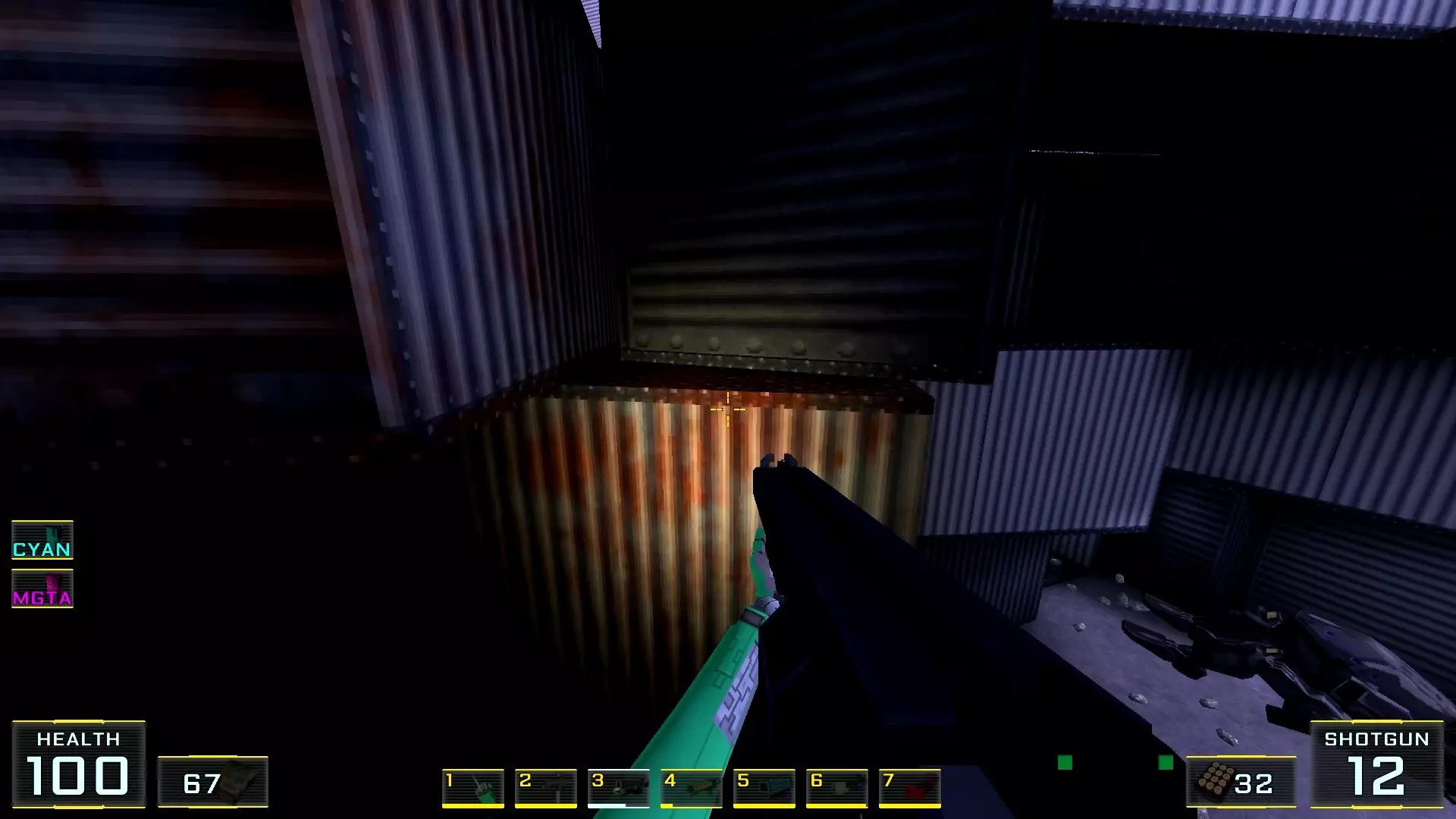在墙边你可以探身拾取一把霰弹枪和几发子弹,以及几块装甲板