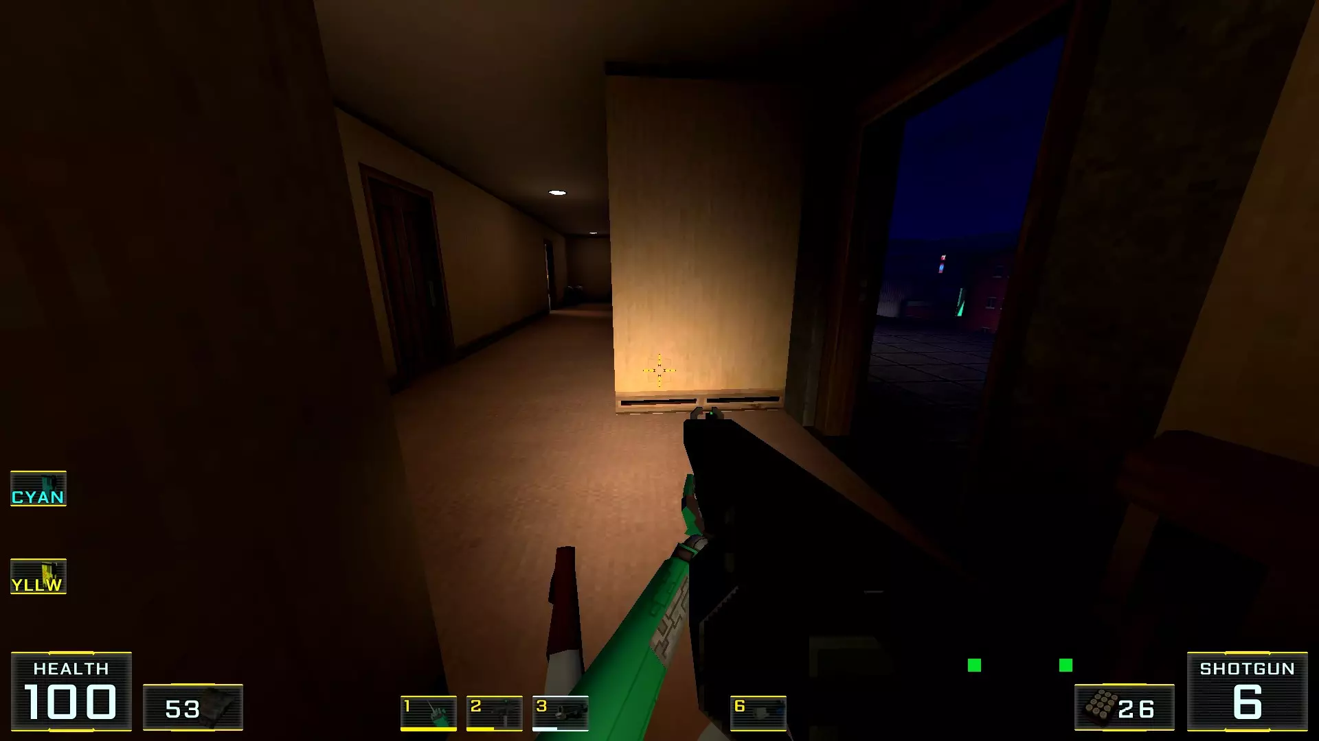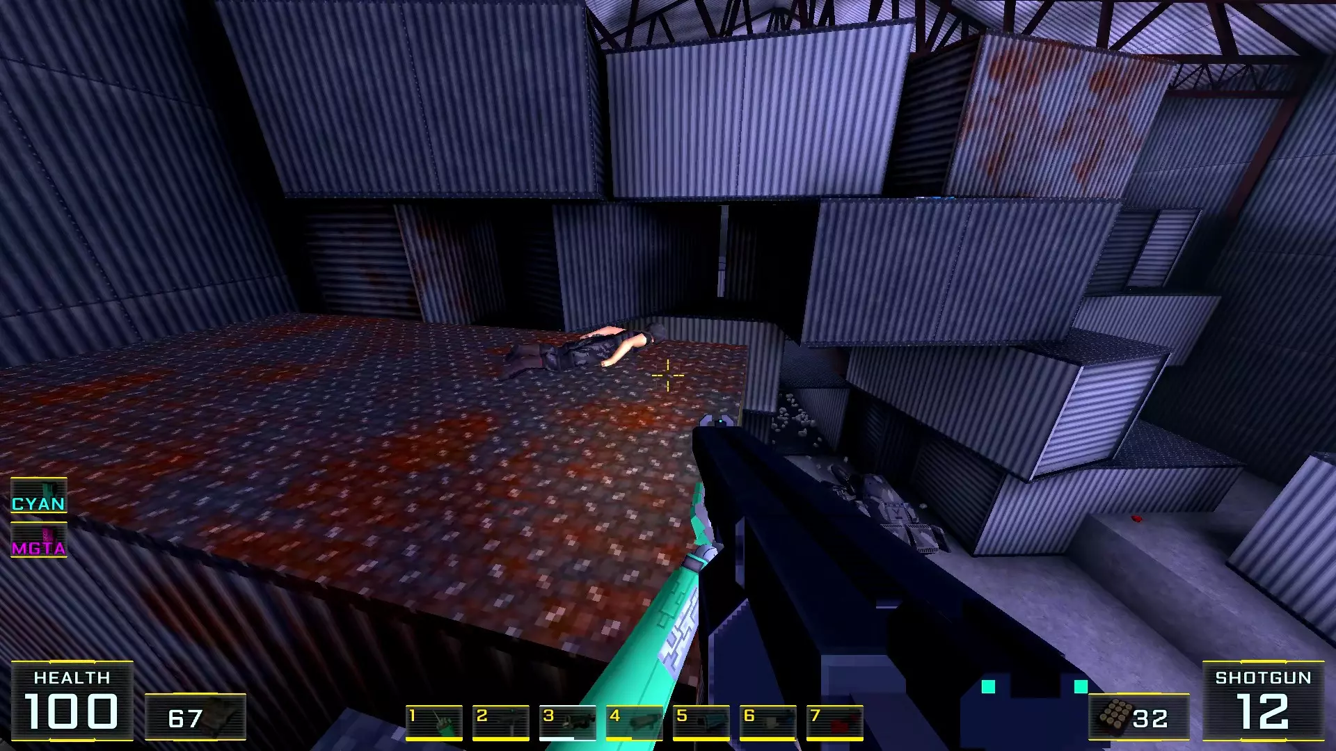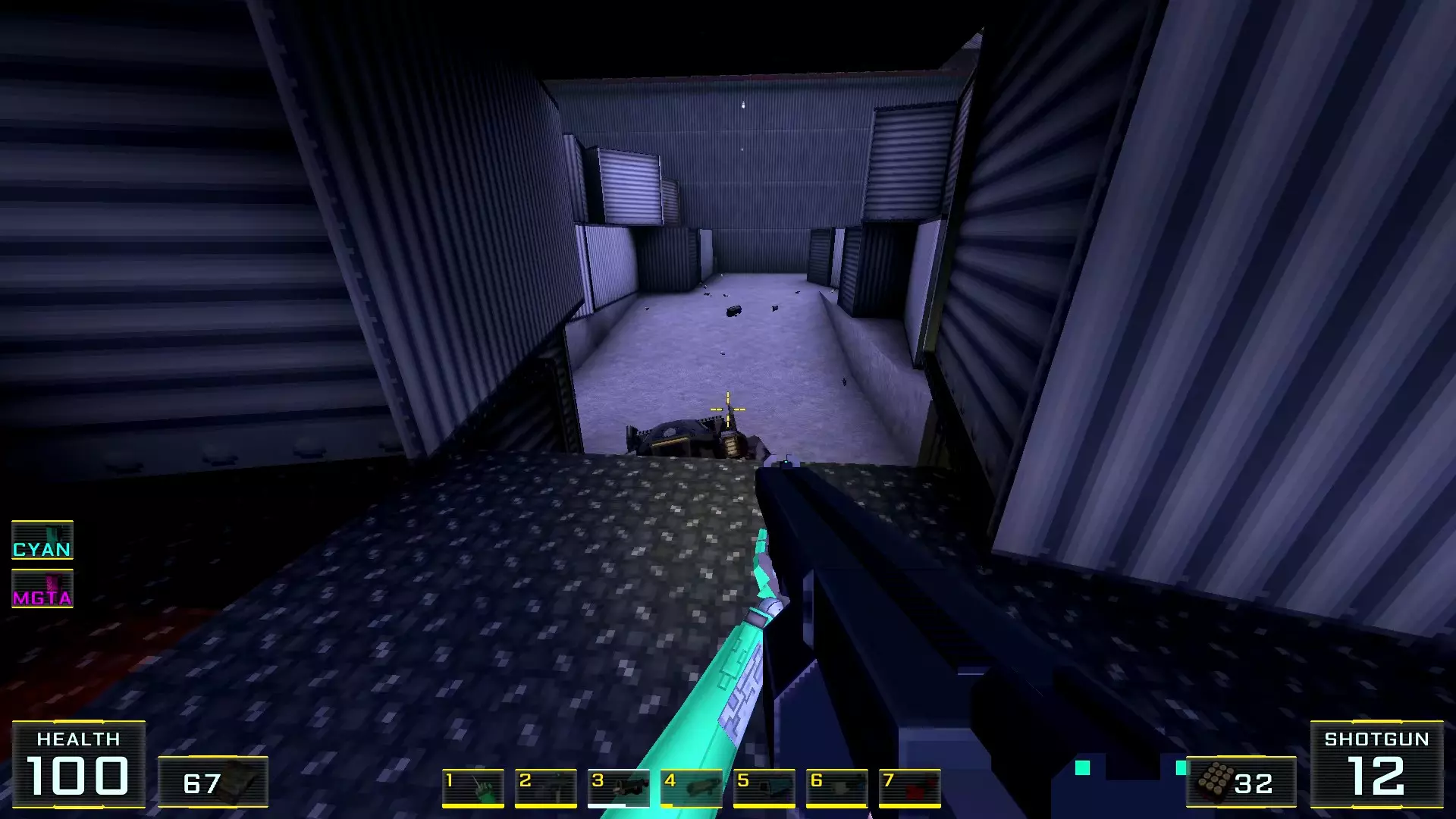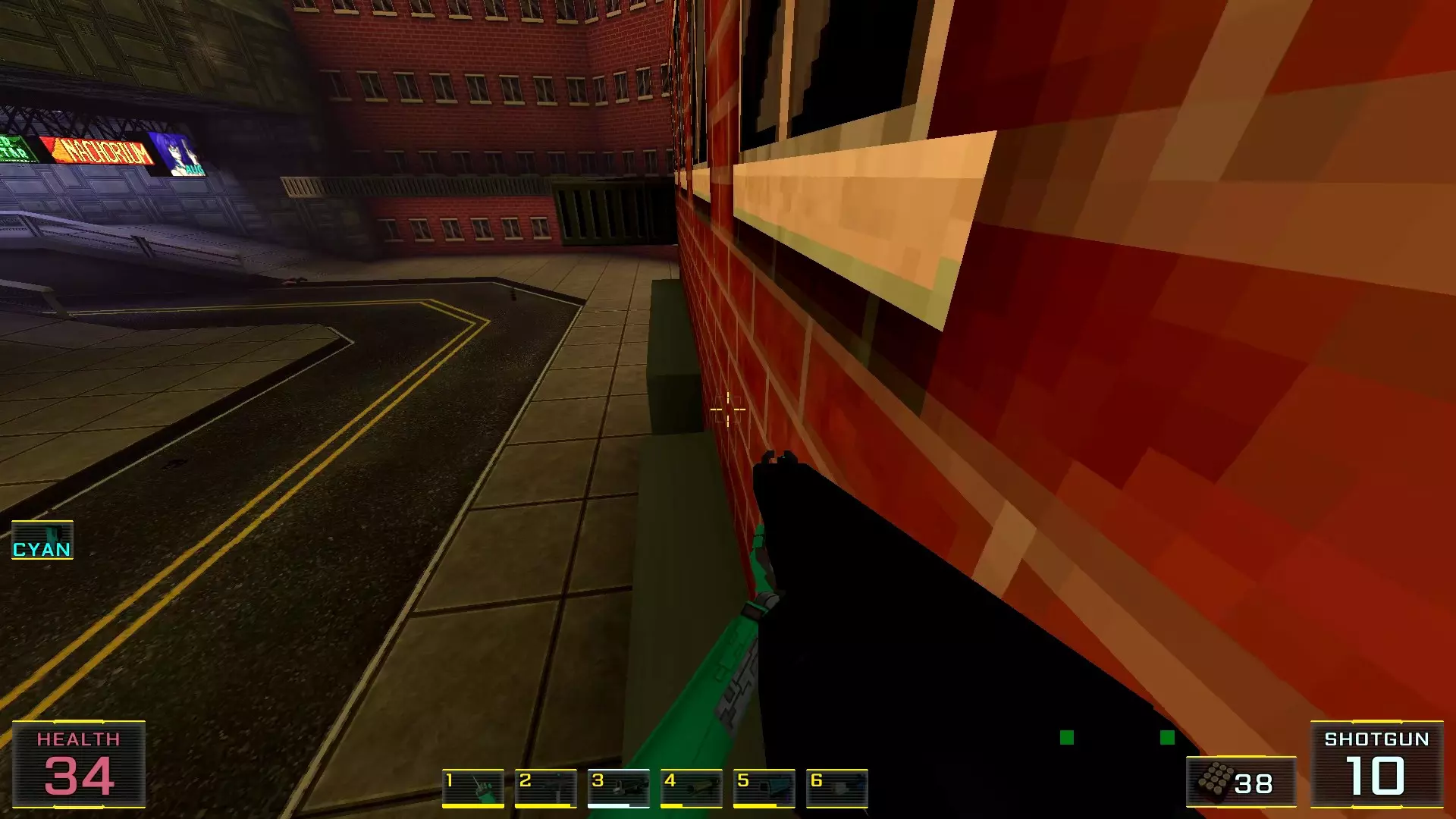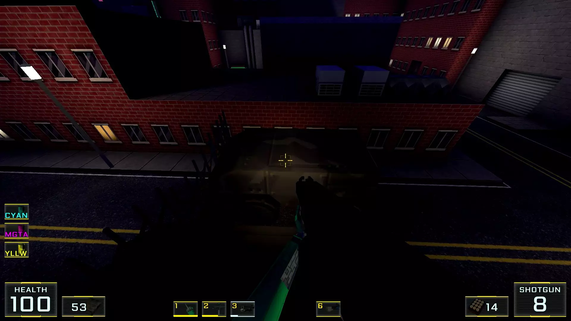 在墙边你可以探身拾取一把霰弹枪和几发子弹,以及几块装甲板