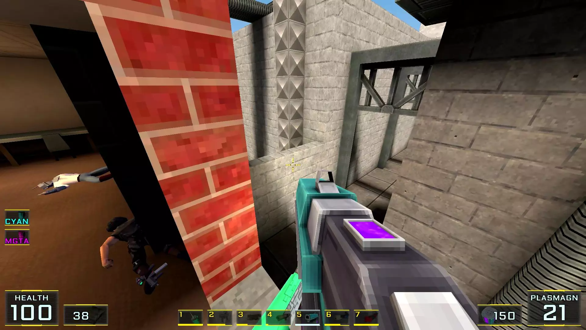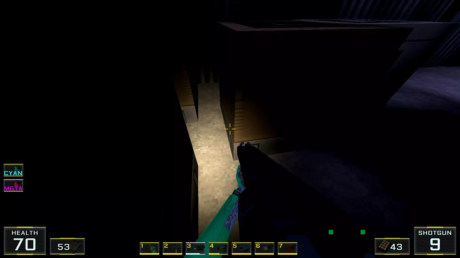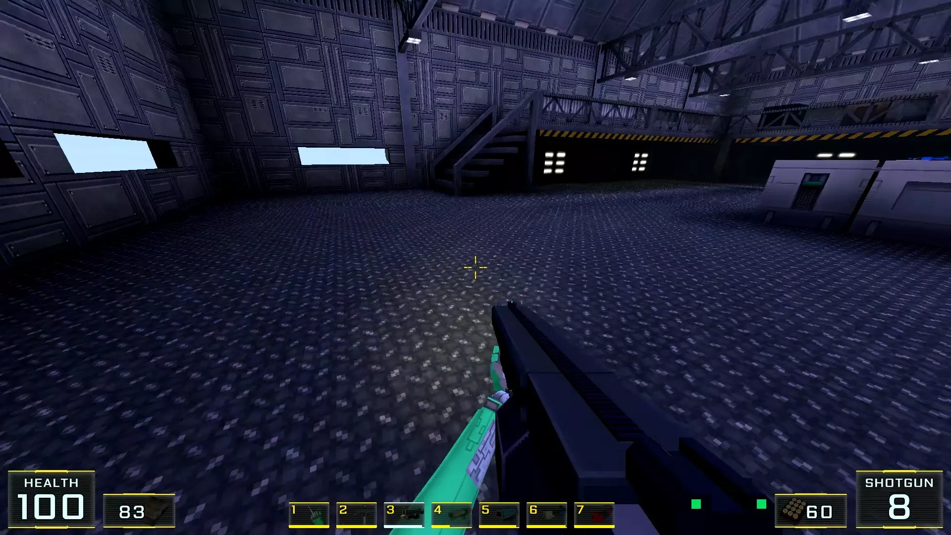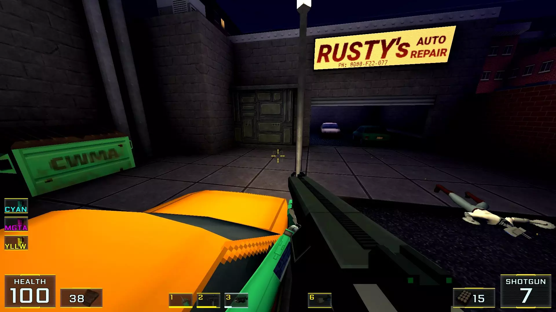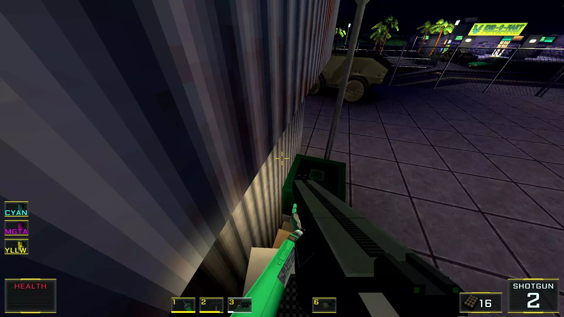 在墙边你可以探身拾取一把霰弹枪和几发子弹,以及几块装甲板