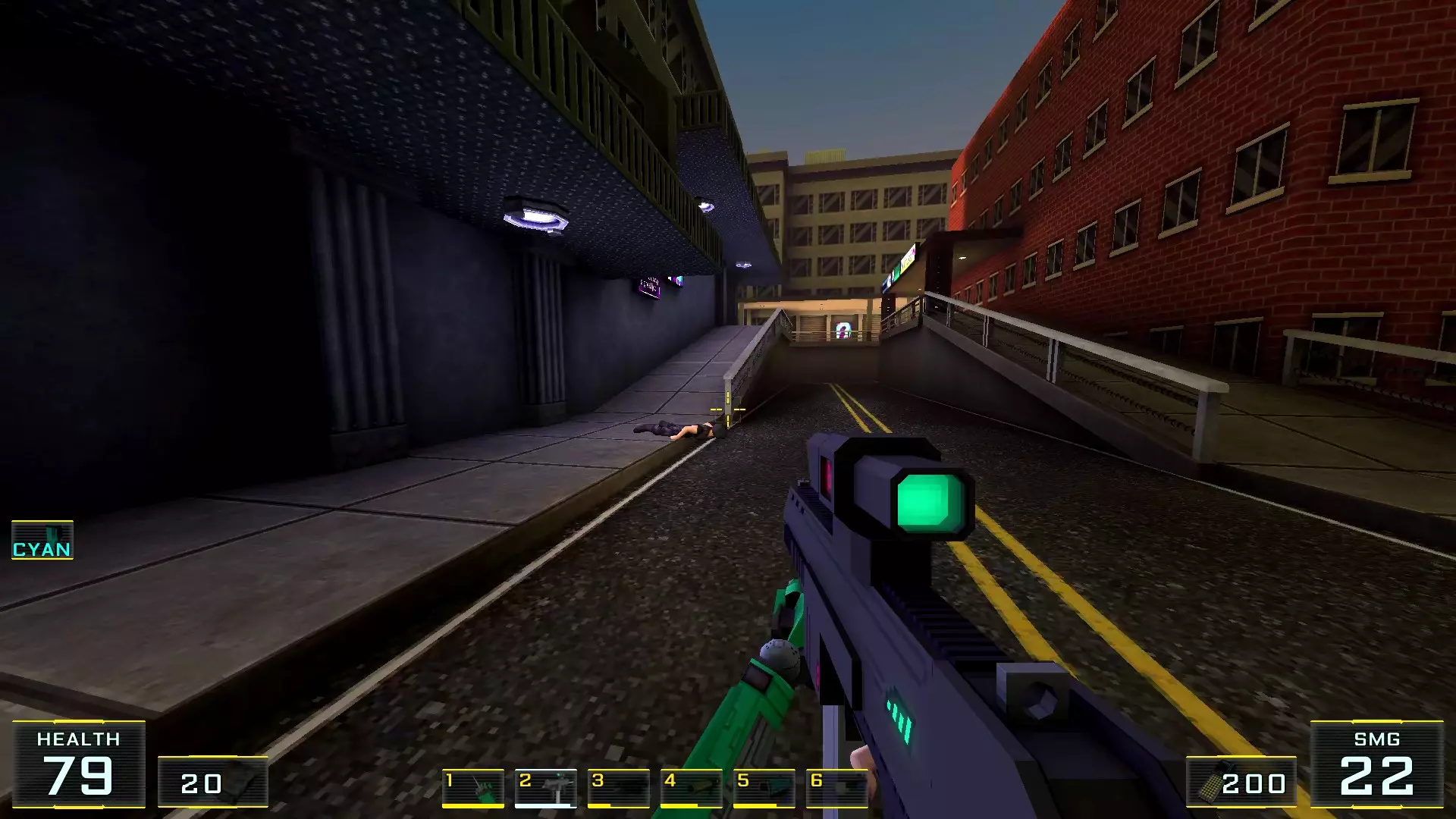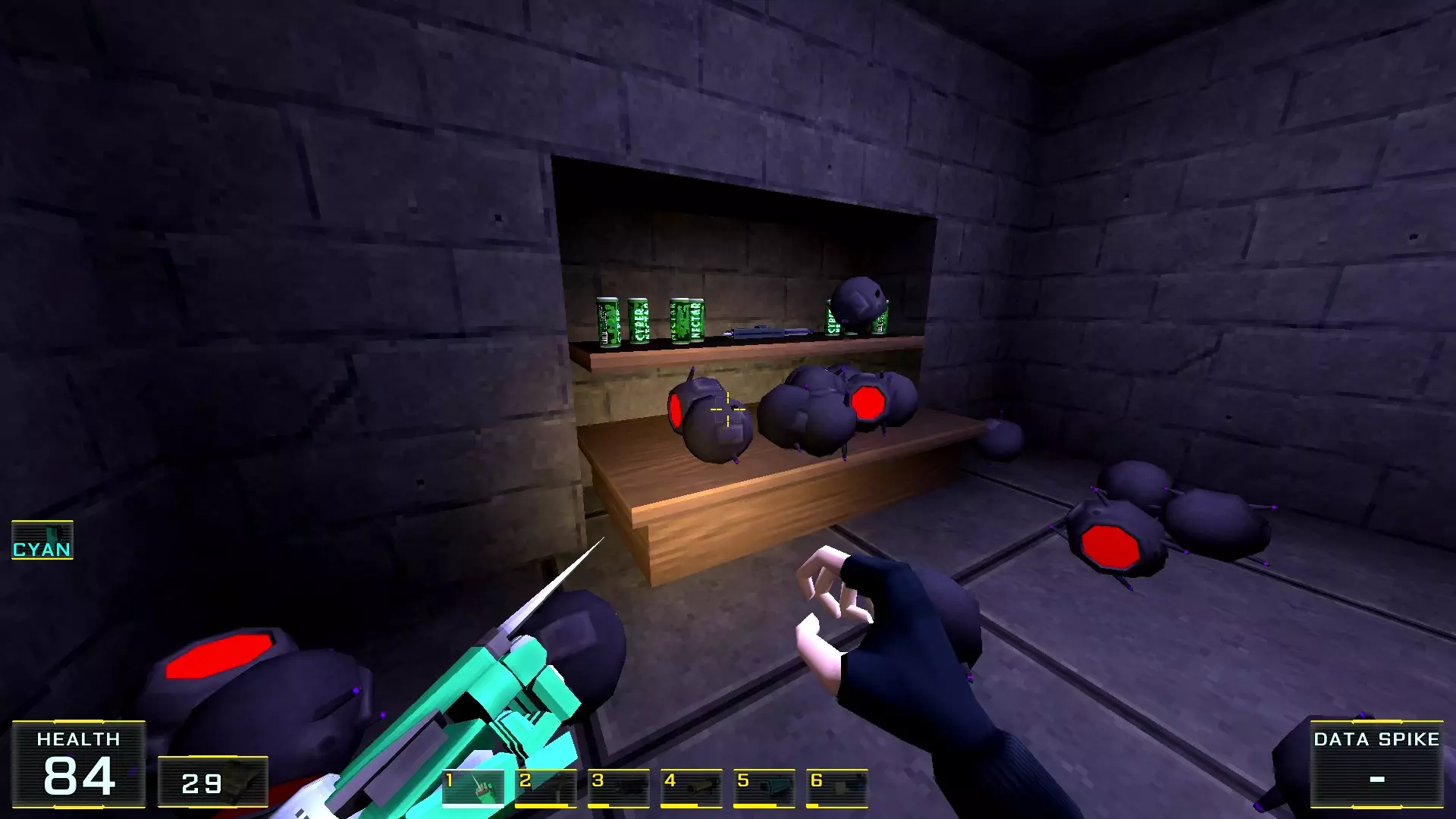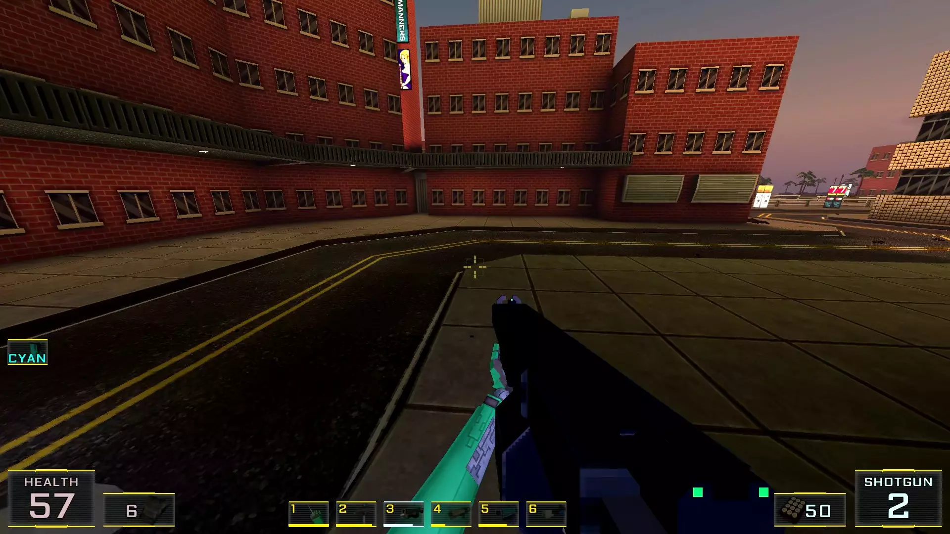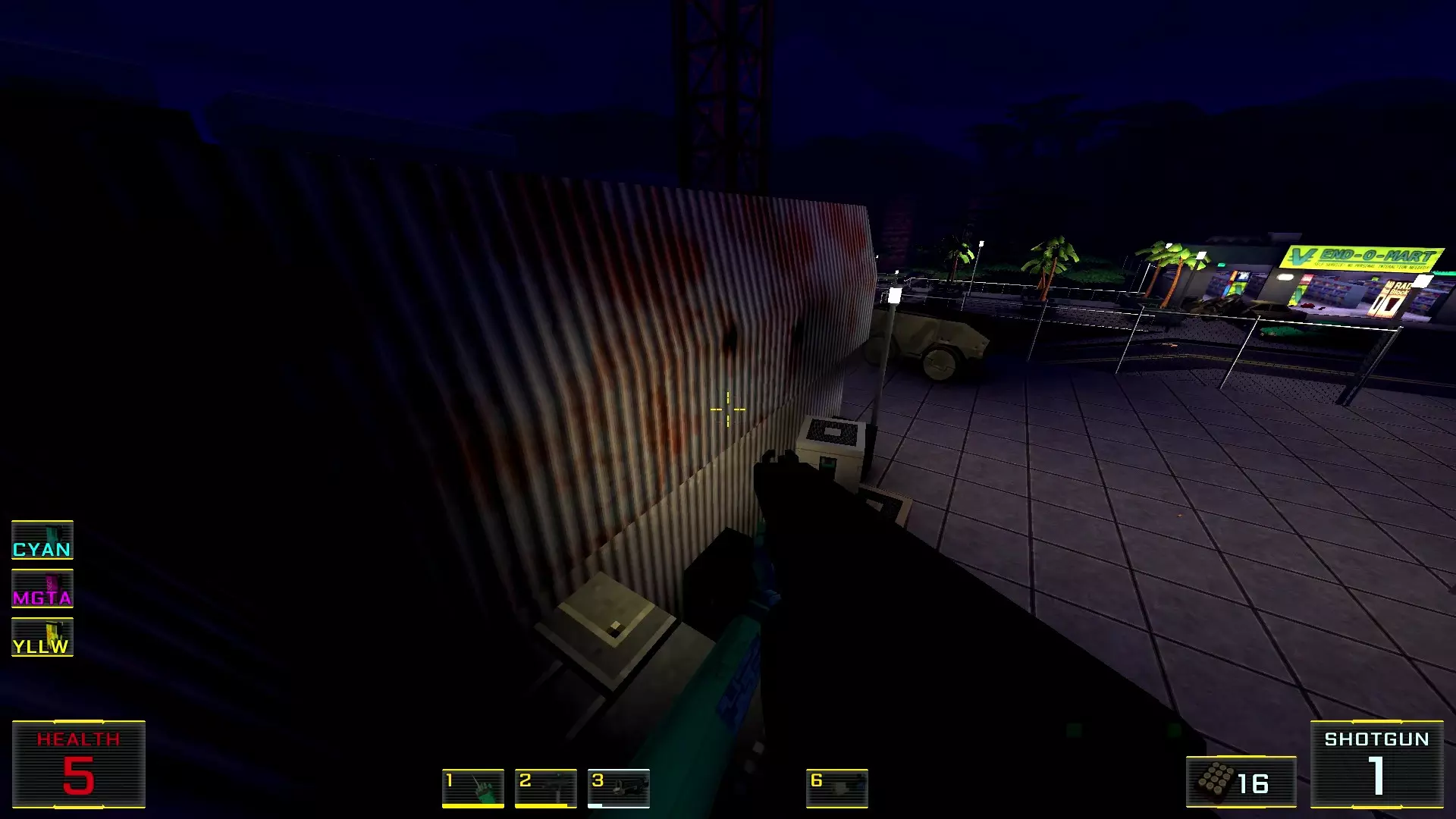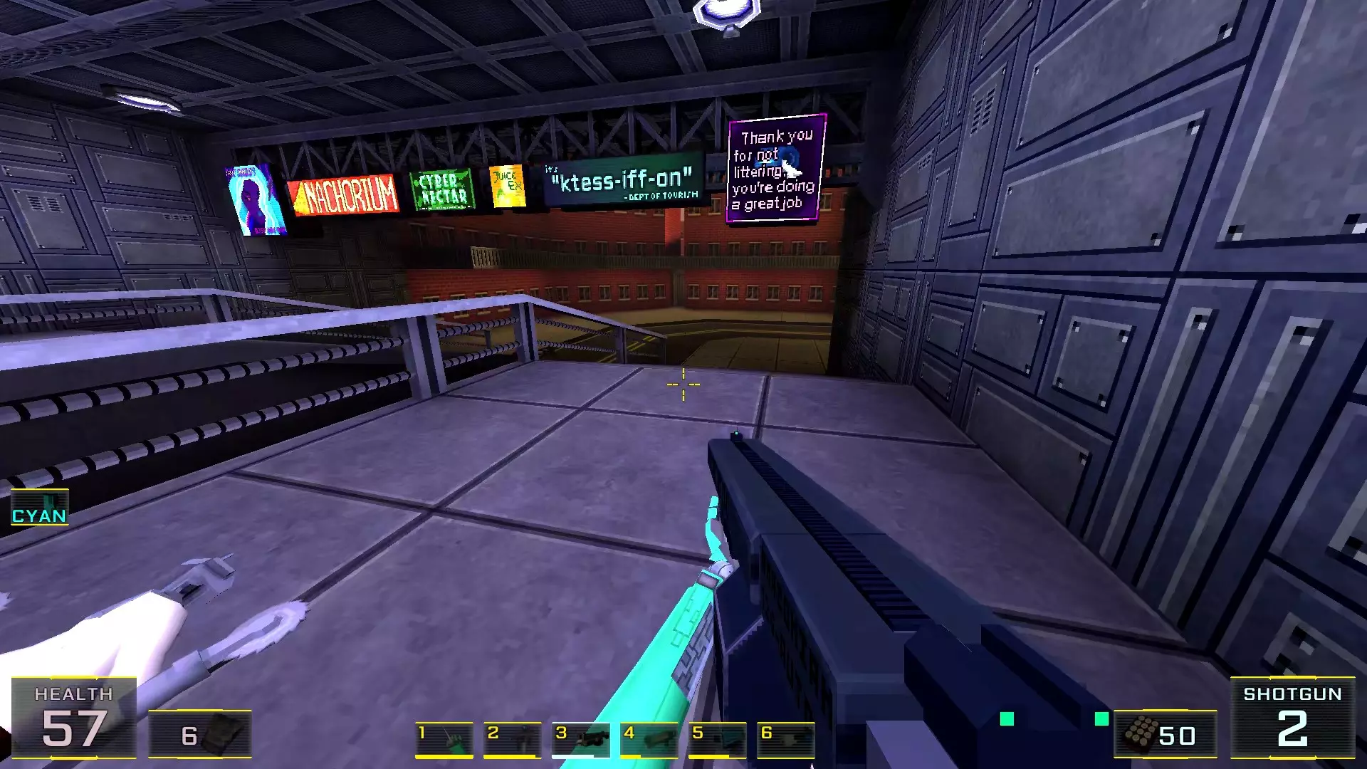 如果让我按质量给关卡排名的话,这个关卡会是倒数第二:它的宽阔街道和数量大幅增加的机械人实在太压抑了!说真的,如果不是所有敌人都能隔着整张地图看到主角,有时还能把武器稍微穿过碰撞体积直接穿墙射击的话,在这里体验会好得多!我甚至觉得在海滩上战斗会比在这些除了几处亮点外都枯燥单调的城市环境里好得多……不过算了,我的愿望除了我自己没人会帮我实现:看到过开发者的评论说游戏支持模组,但为此得折腾一番《上古卷轴3:晨风》的模组制作技术…… 回到机甲,我对付它们的建议是——找到火箭筒。是的,它就在关卡中间(有拉杆的塔里),但这相对来说是最简单的路径,你需要至少消灭一个携带等离子武器的“重装兵”,才能顺利拿到继续前进所需的钥匙卡,不管是在银行还是酒店里!而且,不用火箭筒也能过去,但这种情况下就得好好动动脑筋了。以下是我用过的三个技巧:1.1. 从无法转动的驾驶舱后方接近,并用刀子刺向背部。 2. 小心地在远处用自动武器进行点射(不用吝惜子弹)。 3. 引诱敌人到死胡同,然后从背后绕袭,操作基本与步骤2相同。 好了,现在从抱怨转向秘密本身! 秘密1:小吃店中的隐藏房间 1. 直接前往【野鸭汉堡】小吃店。