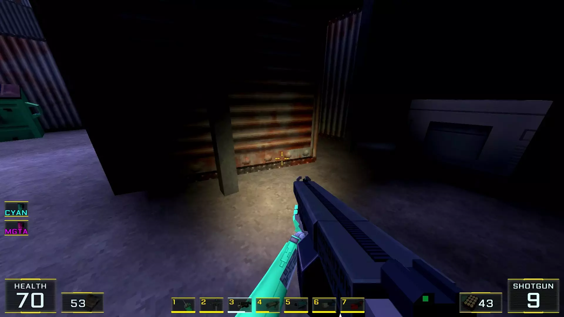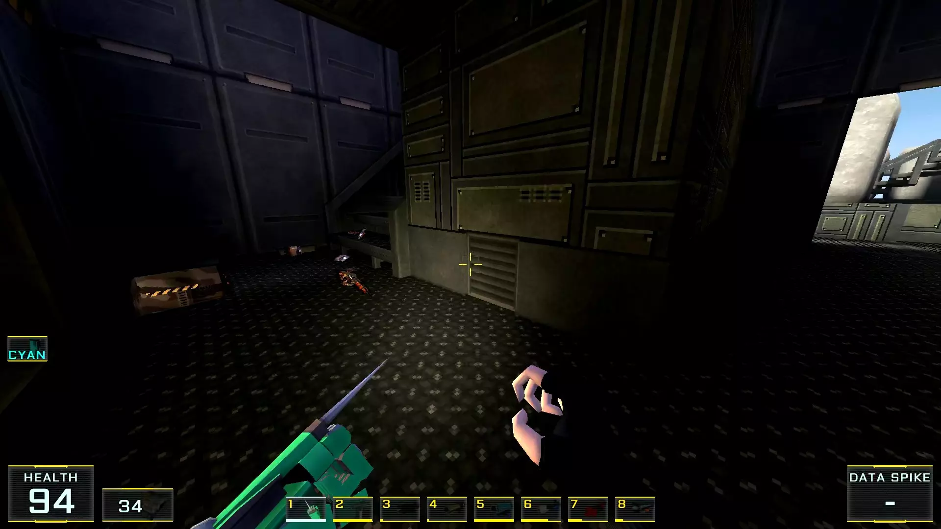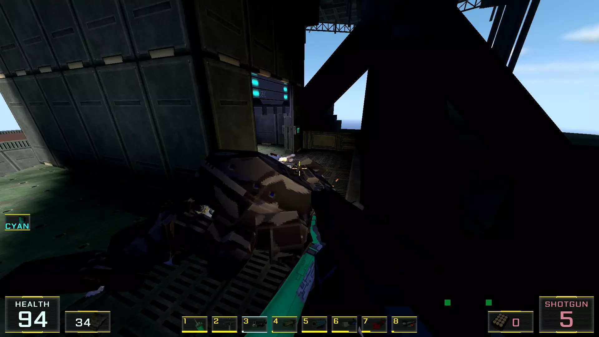 3. 转向机库第二区域的通道。在这里需要再次跳上更高的另一个集装箱,雷尔甘就在那里。
