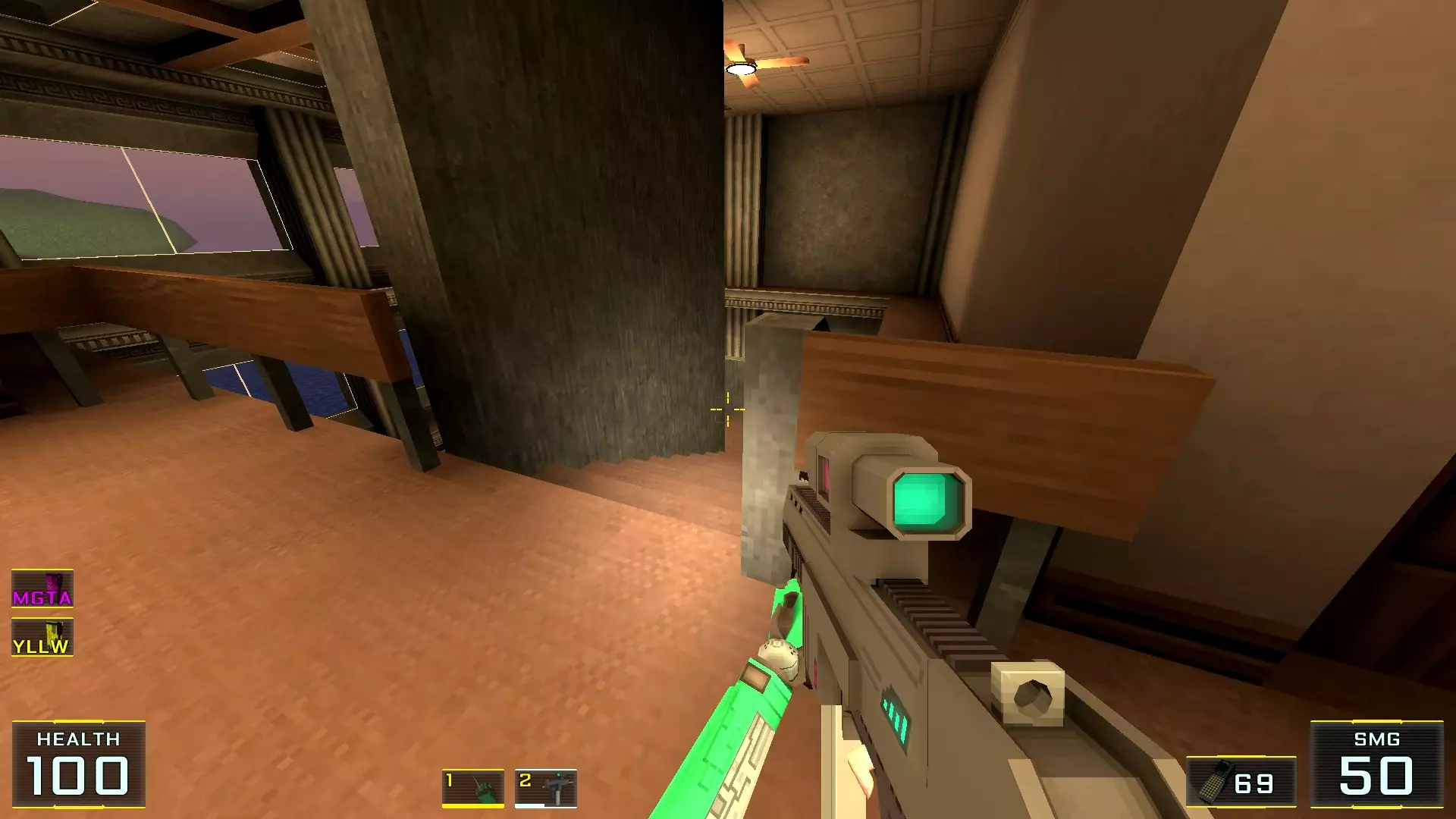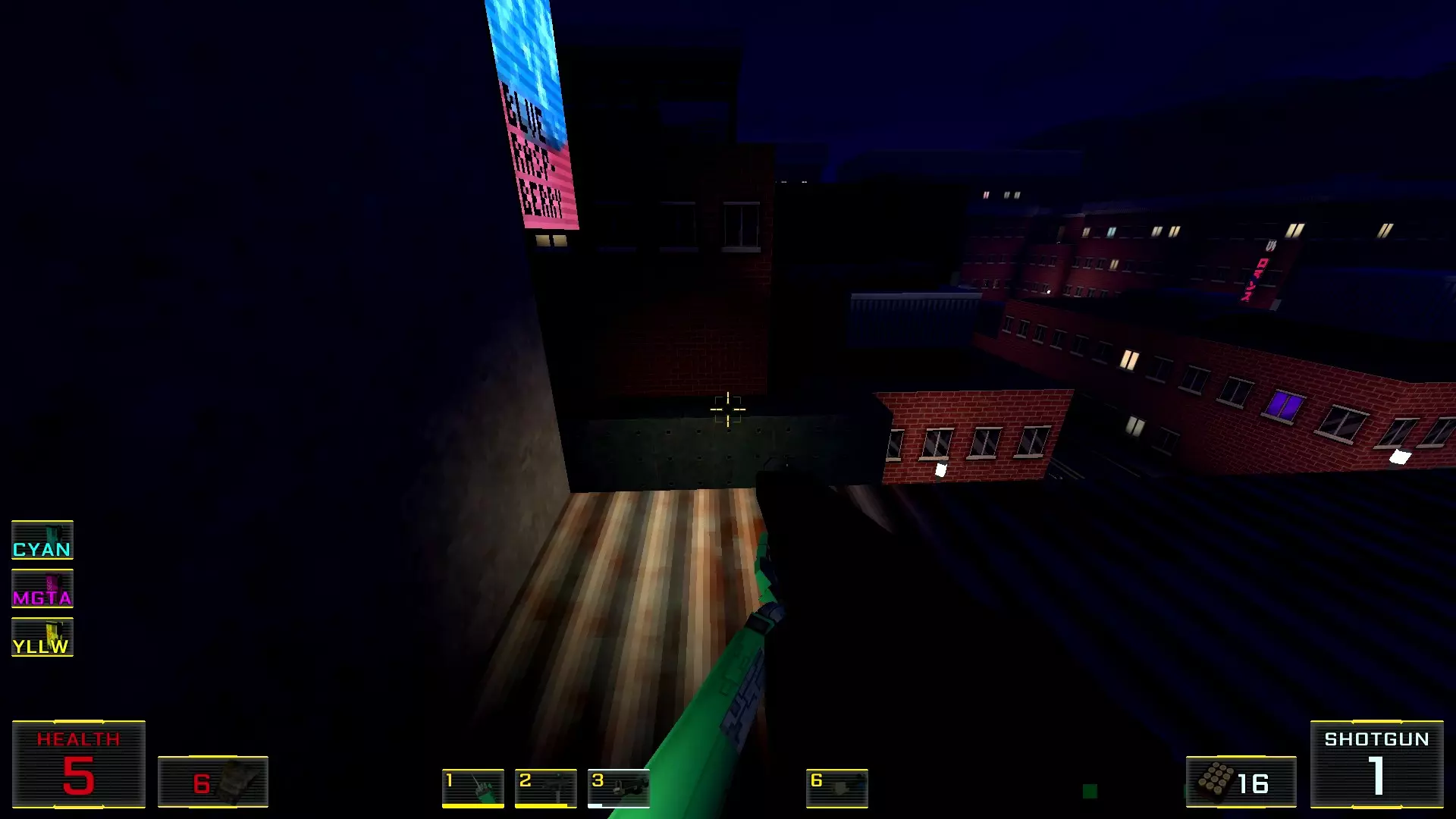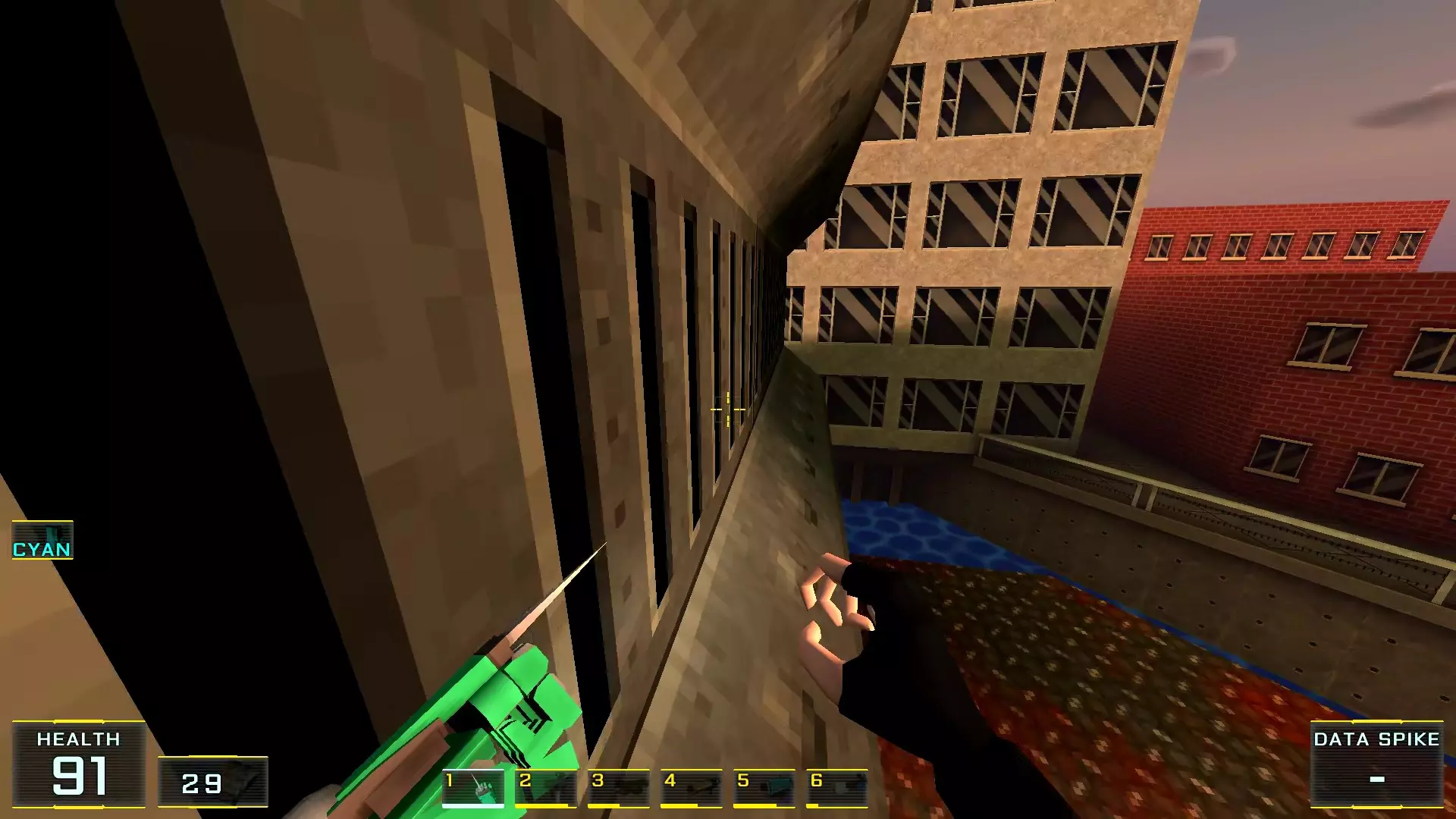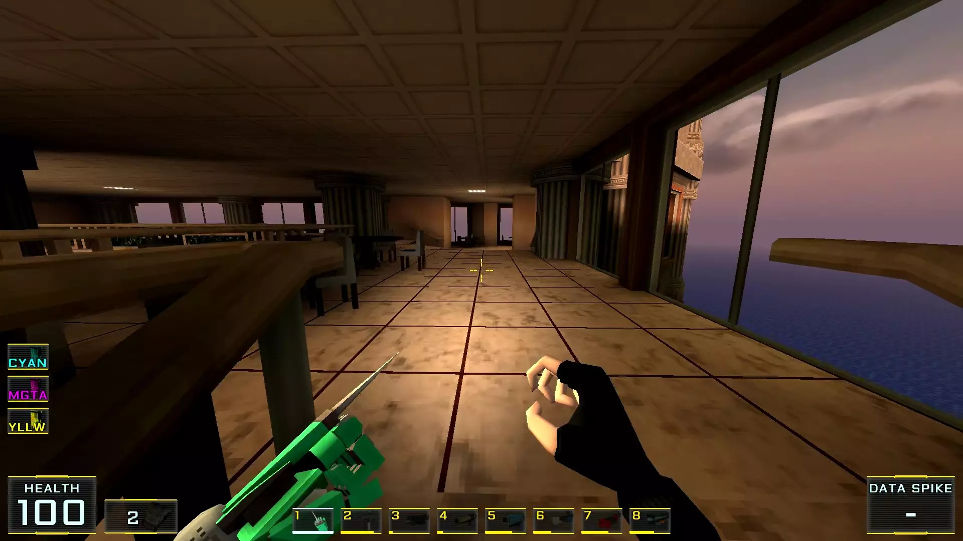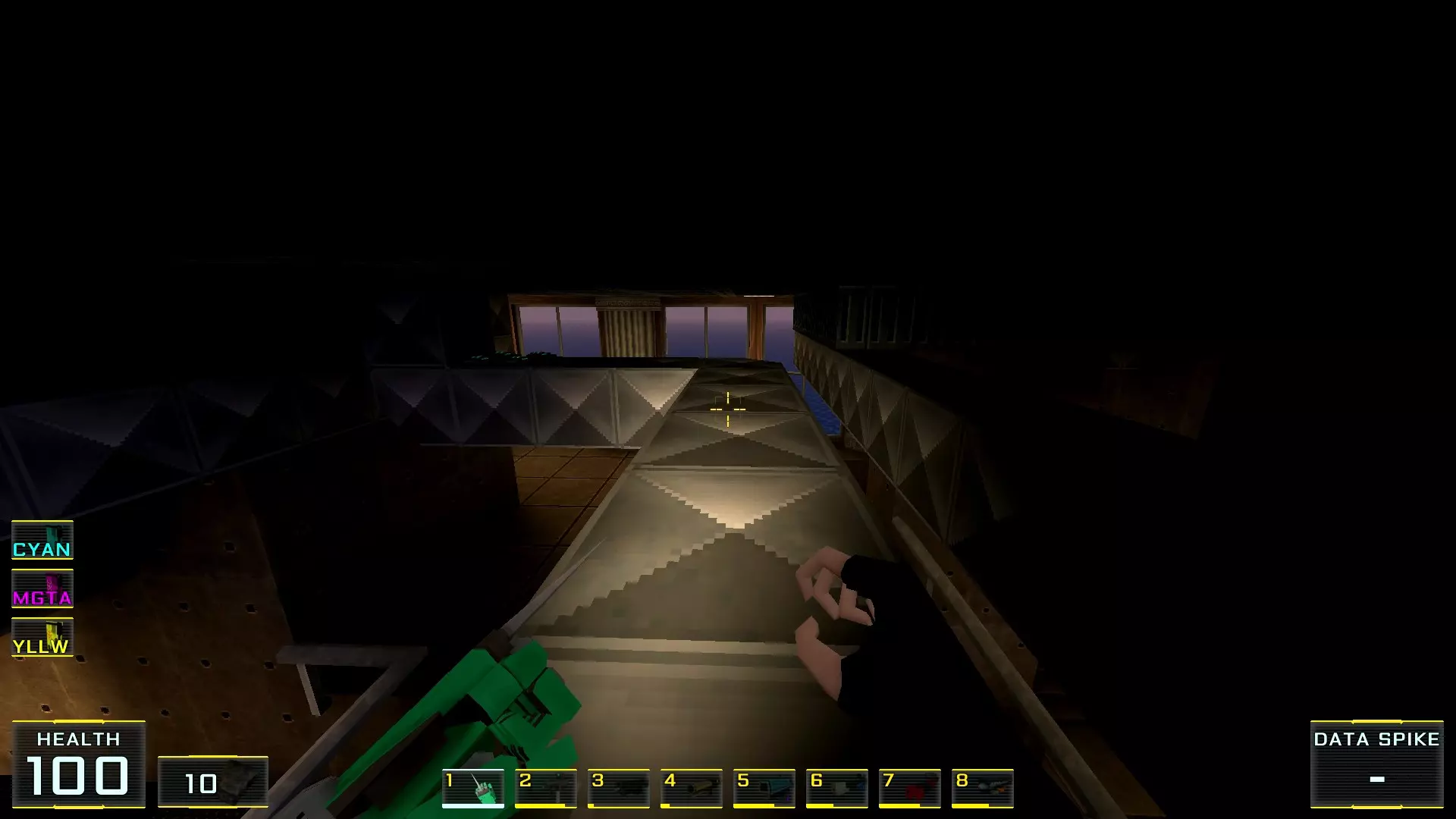 这里,假设是第四个秘密 秘密5. 最后一层窗外平台上的喷射枪弹药 1. 最后一层,蓝色门就在关卡结束面板正前方。在这里转身,向前走到最近的窗户
