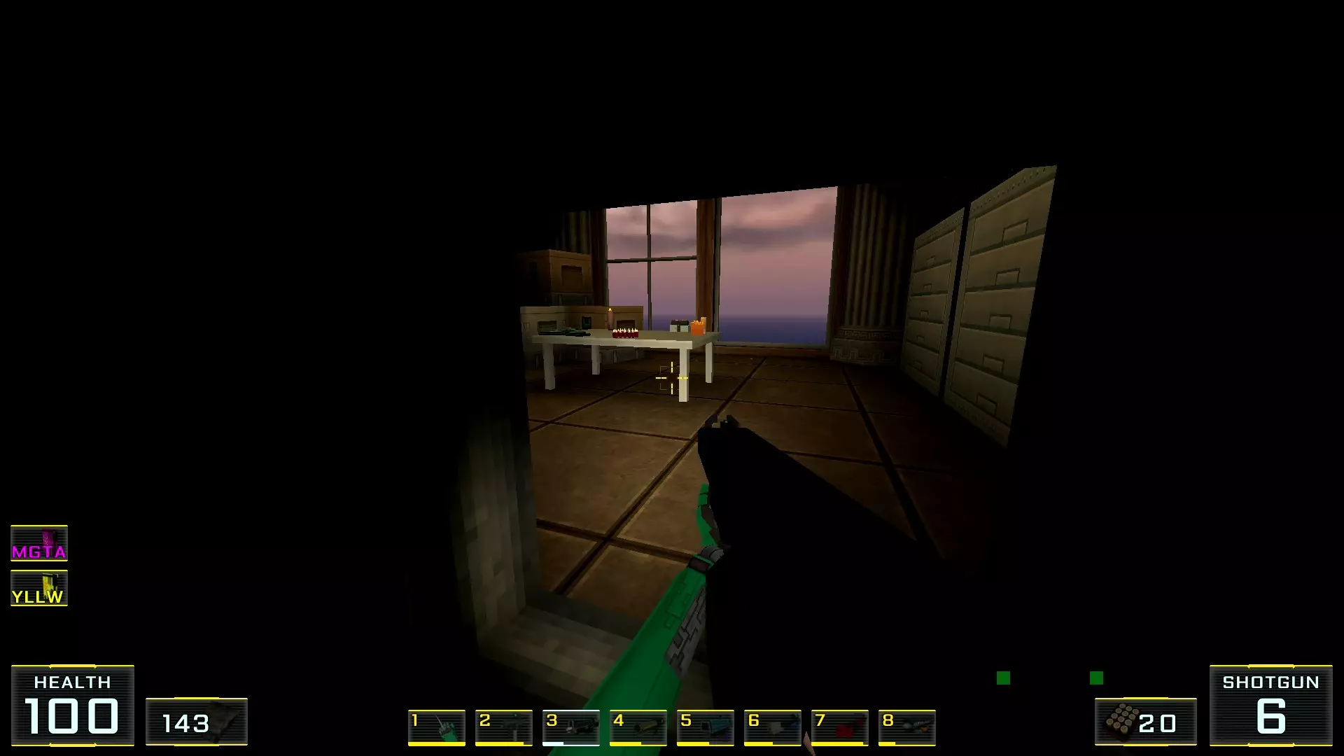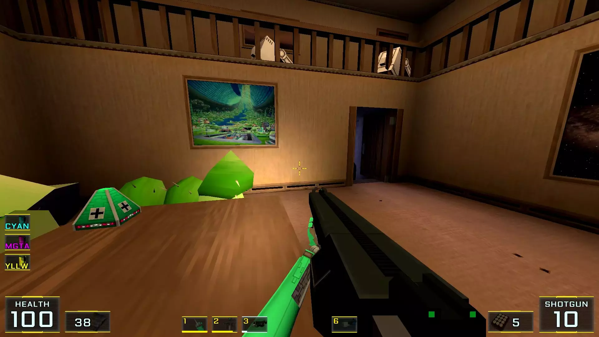 秘密2. 秘密房间架子上的霰弹枪 1. 不要离开秘密房间,径直走过去,拿起所有这些毛绒玩具后面架子上的自动霰弹枪。