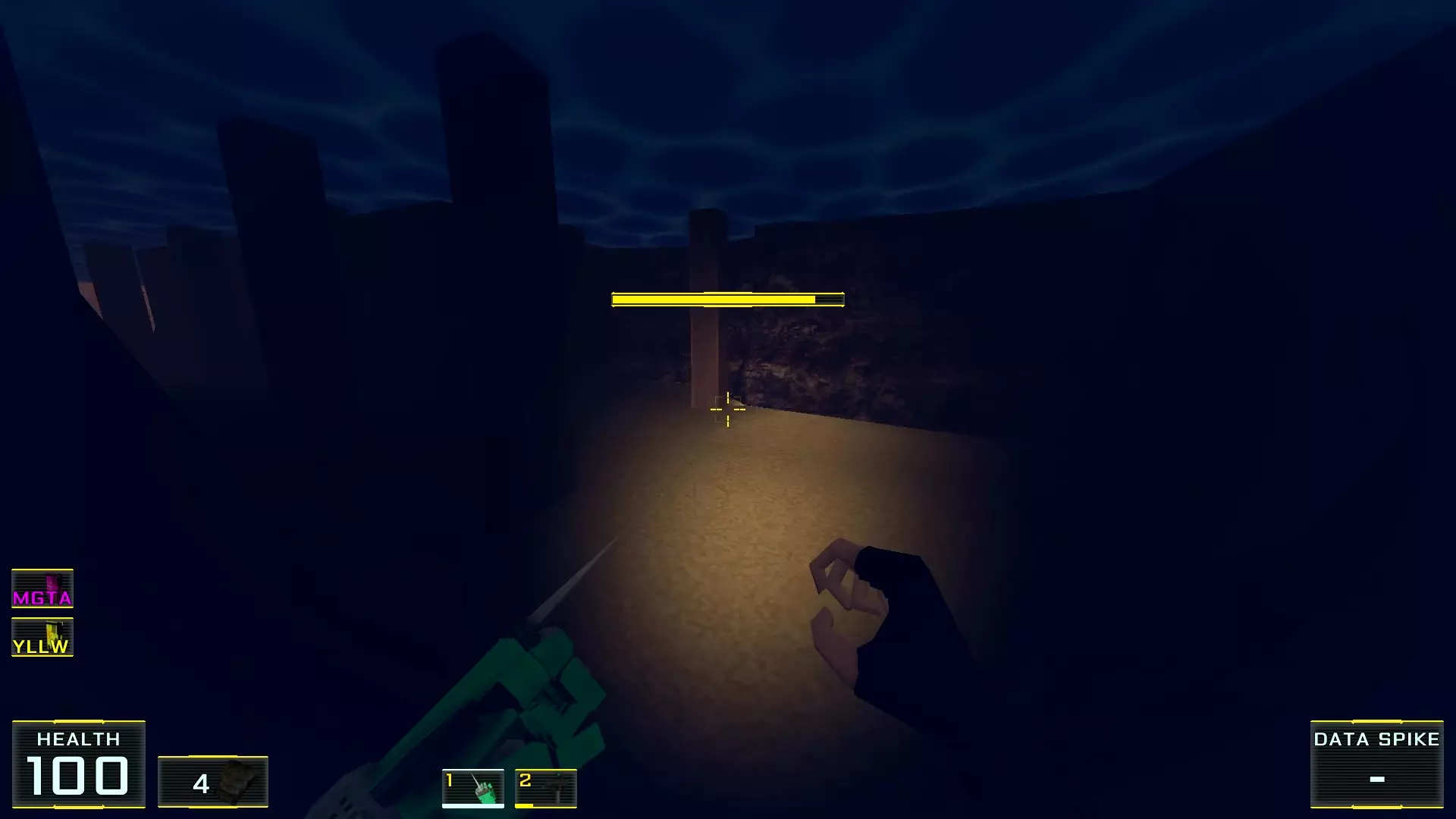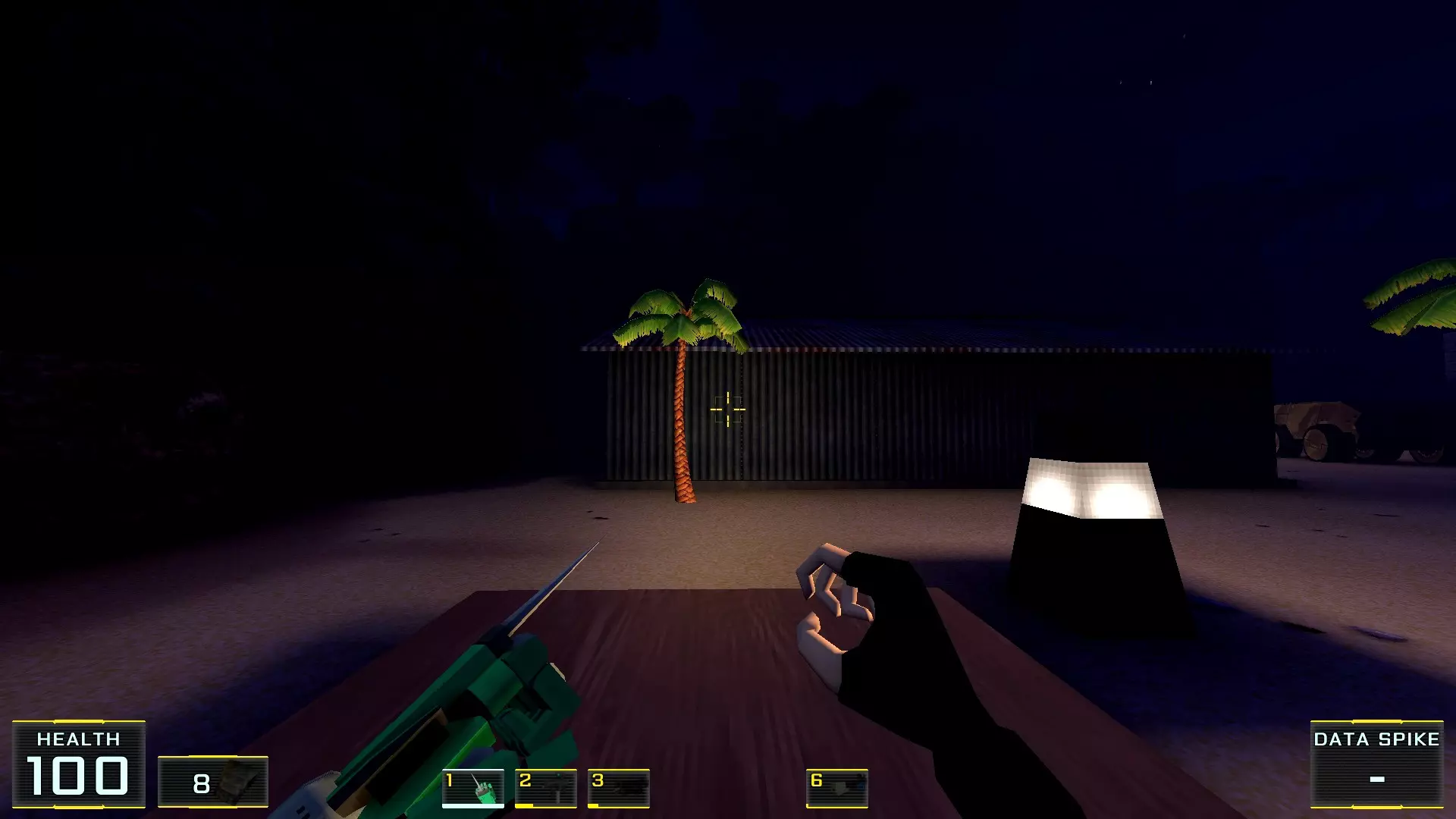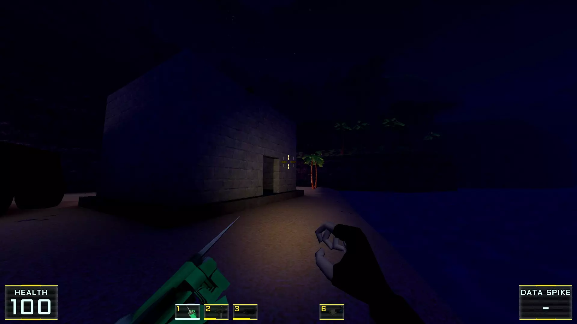 与“岛屿跳跃”关卡不同,这个关卡有相当多的小岔路、拐角和未照亮的地方。因此,我花了额外半小时四处游荡,还时不时有节奏地点击互动按钮对着墙壁“碰碰运气”,才找齐所有五个秘密。好在整个《Ctesiphon》里没有这种“把戏”!不过,这是通过经验才验证并证明的,真是可惜……不过,现在又出现了另一个问题,不过这次是Steam方面的。你知道吗,为了截图,我经常使用Steam客户端里一个相对较新的功能——后台录制游戏画面。这个功能非常方便:只需开启录制,回放到需要的地方,选择合适的画面或片段,然后直接保存成相应的格式就行了!只是出于某种原因,所有带有大量黑色的截图在亮度和对比度上都严重下降……可惜,我懒得去单独修改每一帧(这都要“归功”于启动器的过时设计),好让截图上的画面能稍微接近原始效果:没错,《Ctesiphon》里的夜晚是很黑,但还在可接受范围内,因为在游玩过程中一切都能看得很清楚!啊,这就是第一关,这里的秘密里可别指望有什么好东西:只有盔甲和未来(或者现在,如果你在“关卡选择”里把所有东西都搜刮了的话) heroine 武器库的补给。这又给我对游戏的不满添了一笔,因为我是从“新游戏”开始,老老实实通关的…… 现在我们直接来说说这一关的秘密! 秘密1. 海滩捷径1. 在关卡最开始,注意左边的突出部分