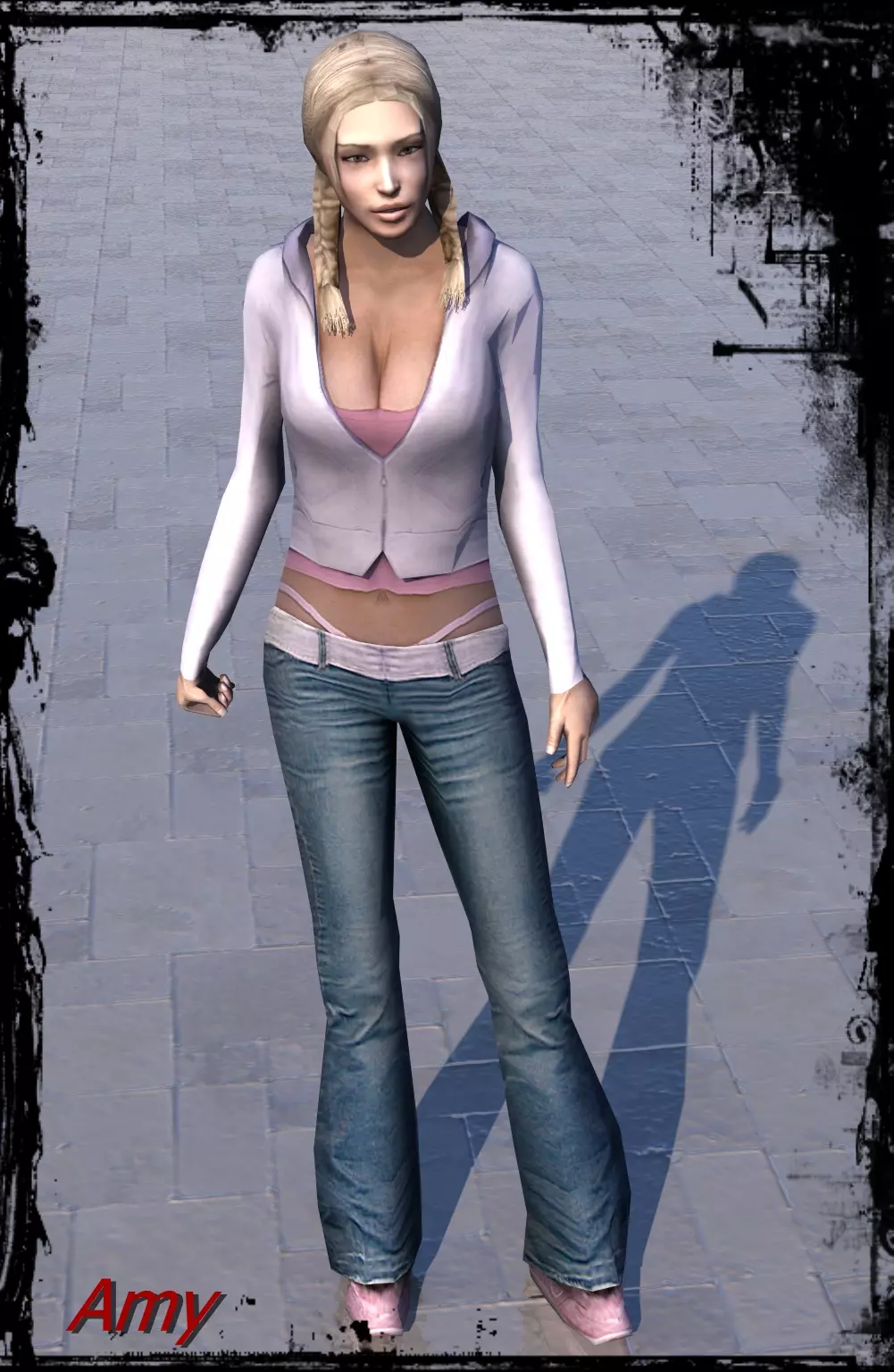 8. 艾米是一个年轻、聪明的金发女孩,她会利用自己的美貌,并且喜欢为了好玩而逗弄别人。她知道斯文和肯尼都对自己有好感,而她似乎对两人也都有兴趣。在游戏接近尾声时,揭示出她被变异形态的肯尼强暴,并怀上了他的变异孩子。她所乘坐的直升机在爆炸中被毁,她似乎也因此丧生。她暗中喜欢斯文,并在游戏过程中展现出浪漫的一面。艾米非常擅长解谜和猜谜,还能辨认出褪色的文件和图片。