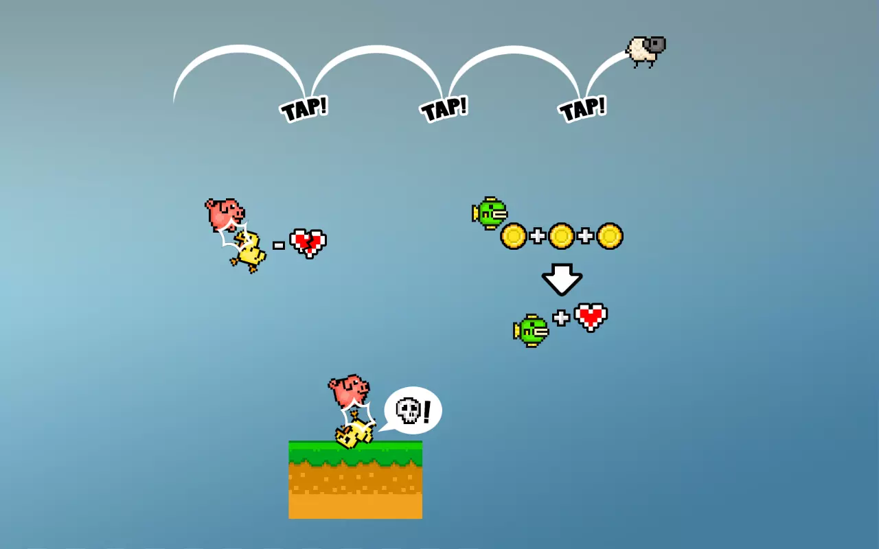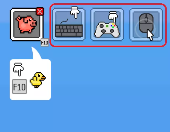 开始时会有两个空白的玩家框,这表示游戏中至少需要两名玩家。要激活玩家,只需按下键盘或游戏手柄上的按钮,再次按下该按钮即可切换玩家角色。点击玩家框上的叉号可以移除玩家。鼠标玩家可通过点击空白玩家框来激活。 游戏支持所有控制器进行操作,但并非所有控制器都能完美适配游戏。因此,其他控制器需要使用模拟程序,关于游戏手柄的设置,您可以在下方查看。 04. 操作 您在游戏中的角色只会执行一种功能,并且仅通过您选择的一个按钮来操作。您需要在空中坚持得比其他人更久,但这也会给您带来一些麻烦: