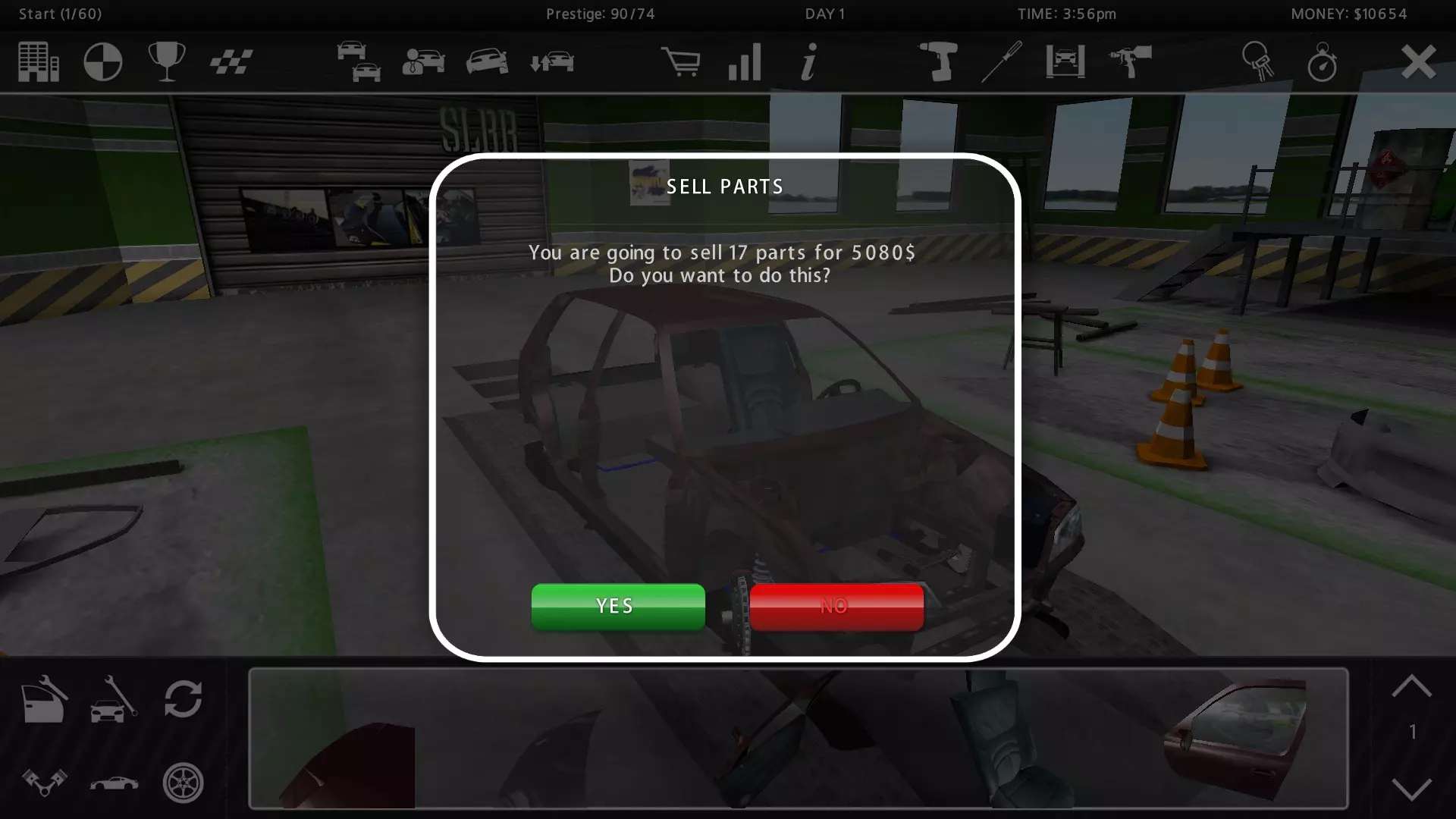 这辆车没有发动机,也没有右后轮,但它只卖13286美元。 拆解换钱 当你把车停进车库后,就可以开始拆解它了。拆除所有车身面板、车窗以及除驾驶座外的所有座椅。不要拆除任何车灯。同时也要拆下车轮。完成所有这些步骤后,你就可以卖掉库存里的所有东西了。