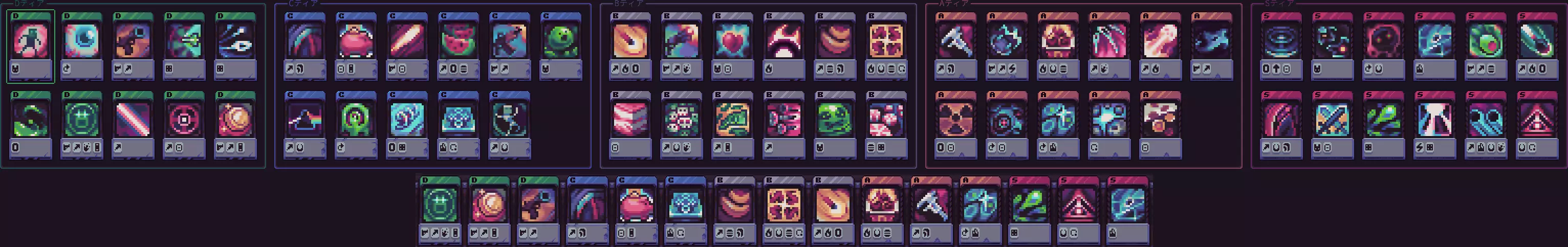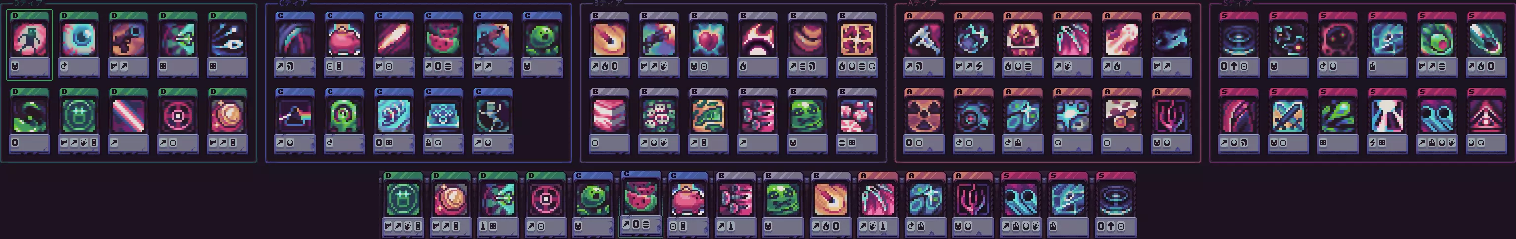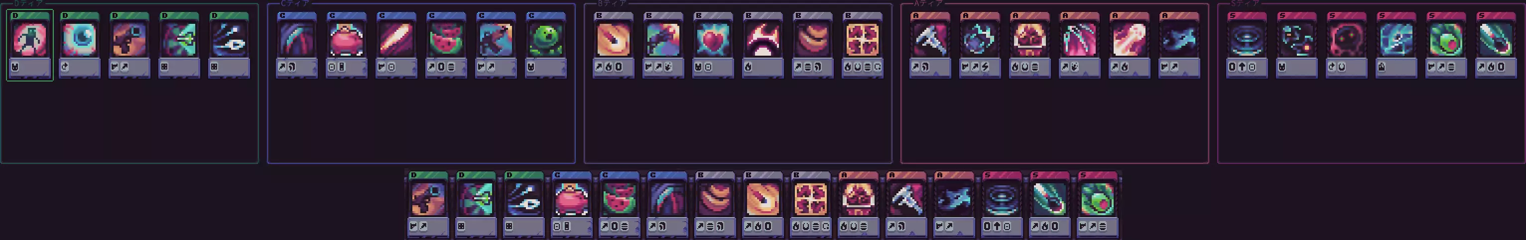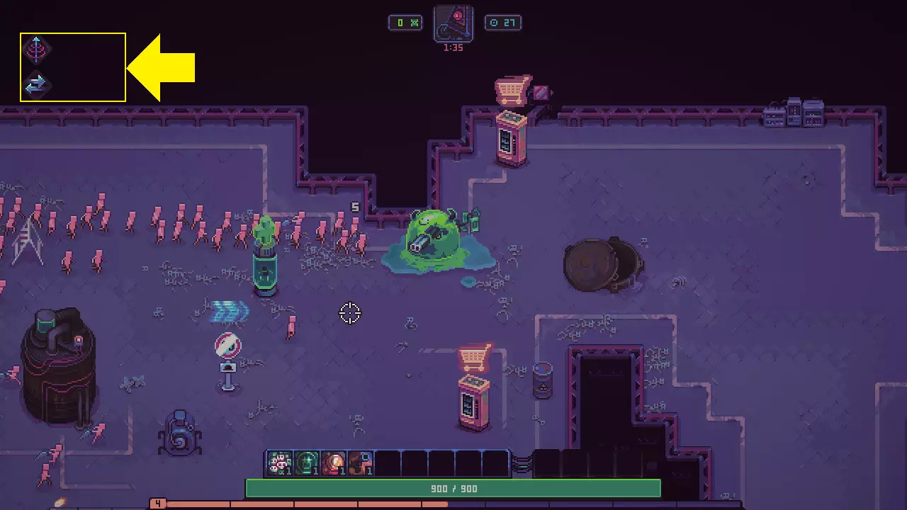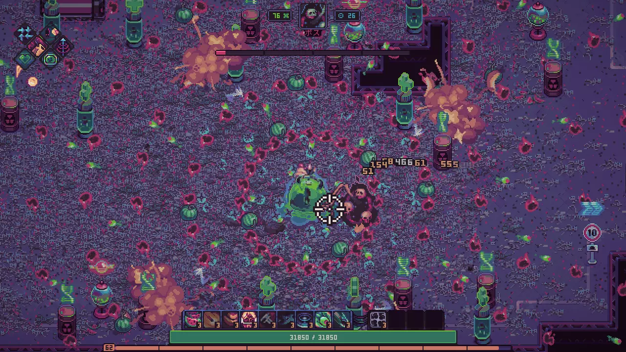 最大强化时发动的隐藏能力 四刀流、吸血、可燃性调和物、穿透、近战、额外生命值 即使史莱姆强化和能力不足也能构建。 通过击退效果让敌人无法靠近史莱姆(处理压力较大)。 击倒敌人越多,史莱姆恢复越多。 由于火力较低,可以留着 Boss 来歼灭杂兵。 补充卡组的话,会变得更强。 ★放置型(玩家应追求的达成目标)