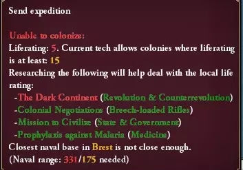 设置外交优先级后,你的影响力将开始提升,该数值最高可升至100。若你将影响力保持在100,会逐渐将其他国家的影响力降至0。但要将某国纳入势力范围,你需要在与该国保持友好关系的同时拥有100点影响力。你与某国初始关系为中立,每积累50点影响力,可将其对你的态度提升至亲切,最终达到友好。若存在激烈竞争,最稳妥的势力范围扩张方式是:先将自身影响力最大化至100,并将其他所有国家的影响力降至0,然后再提升该国对你的好感度。此外,还有其他可影响他国的选项可供选择。诋毁会降低影响力的积累速度,禁止使馆会在约一年内阻止该国获得影响力,驱逐顾问则会将其影响力重置为零。其中唯一重要的是禁止使馆,因为其他国家会不断试图控制你的势力范围来烦扰你,除此之外,另外两项都是对影响力的浪费。 殖民: