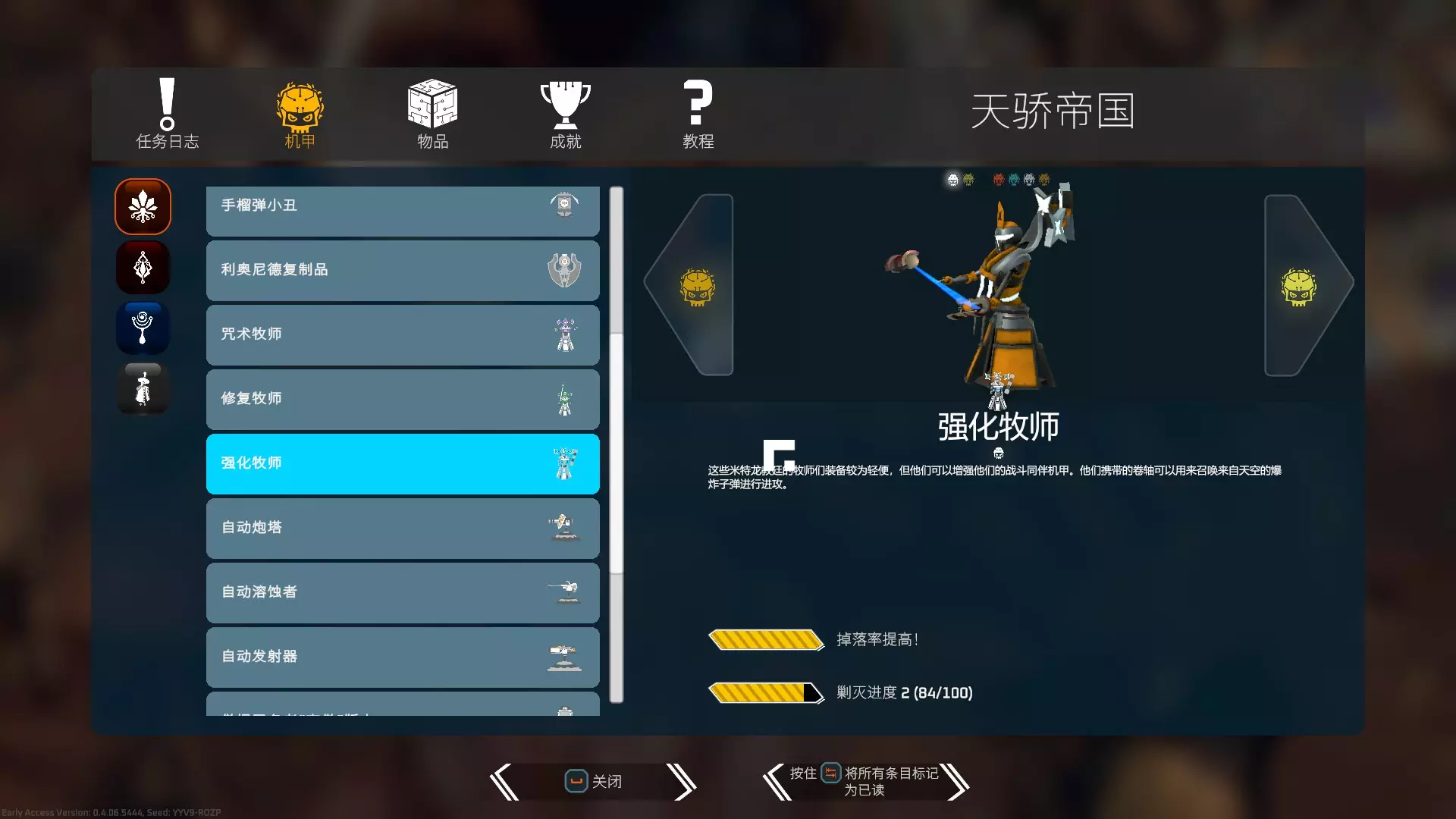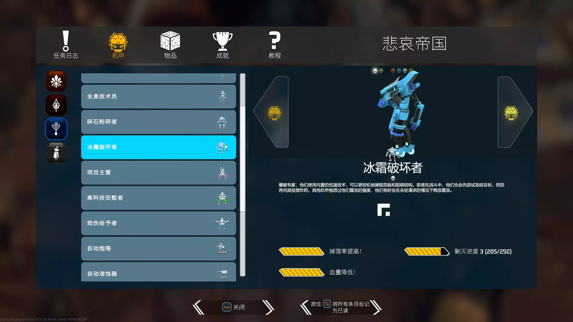 牧师这种敌人会主动与你拉开距离,而且有些会召唤追踪你的弹幕,弹幕持续时间很长;有些会在头顶召唤弹幕;有些还会给敌方机甲回血,因此需要在移动中逐渐靠近并尽快击破。 寂静废墟——冰霜破坏者 该敌人会释放冰墙对你造成减速效果,在狭长细窄的房间中战斗会非常棘手。